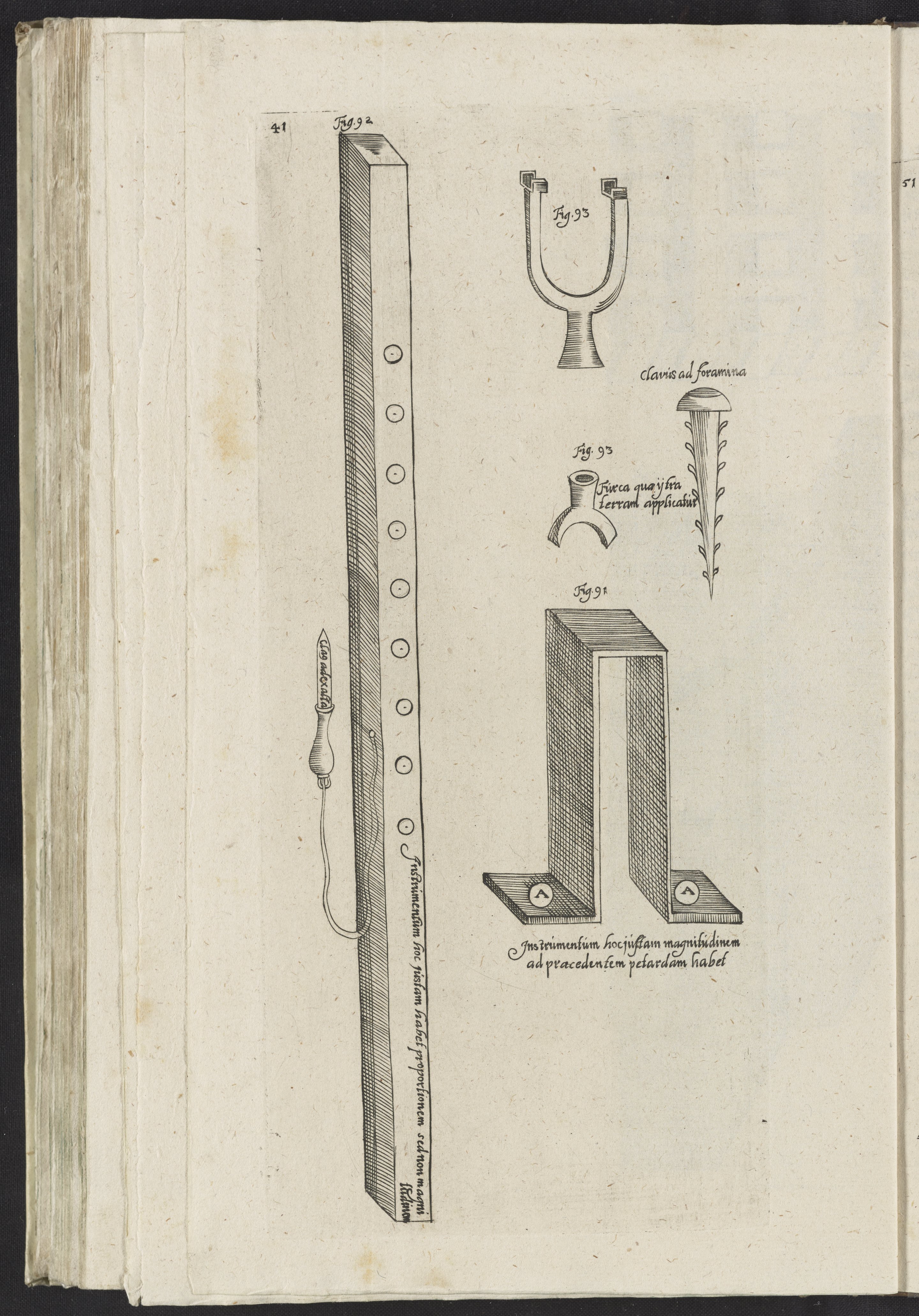 Brawe, Hermann. “Plate 41: Parts to Assemble and Mount a Petard.” In Vollenkommene Unterweisung, Wie Raketen, Feuer- Wasser- Sturm-Kugeln, Granaten, Pech-Sturm-Kräntze, Und Allerhand Lust Und Ernsthaffte Feuer-Wercke Zubereiten. Osnabrück, Germany: Johann Georg Schwänder, 1660. https://digital.sciencehistory.org/works/t148fh13t.