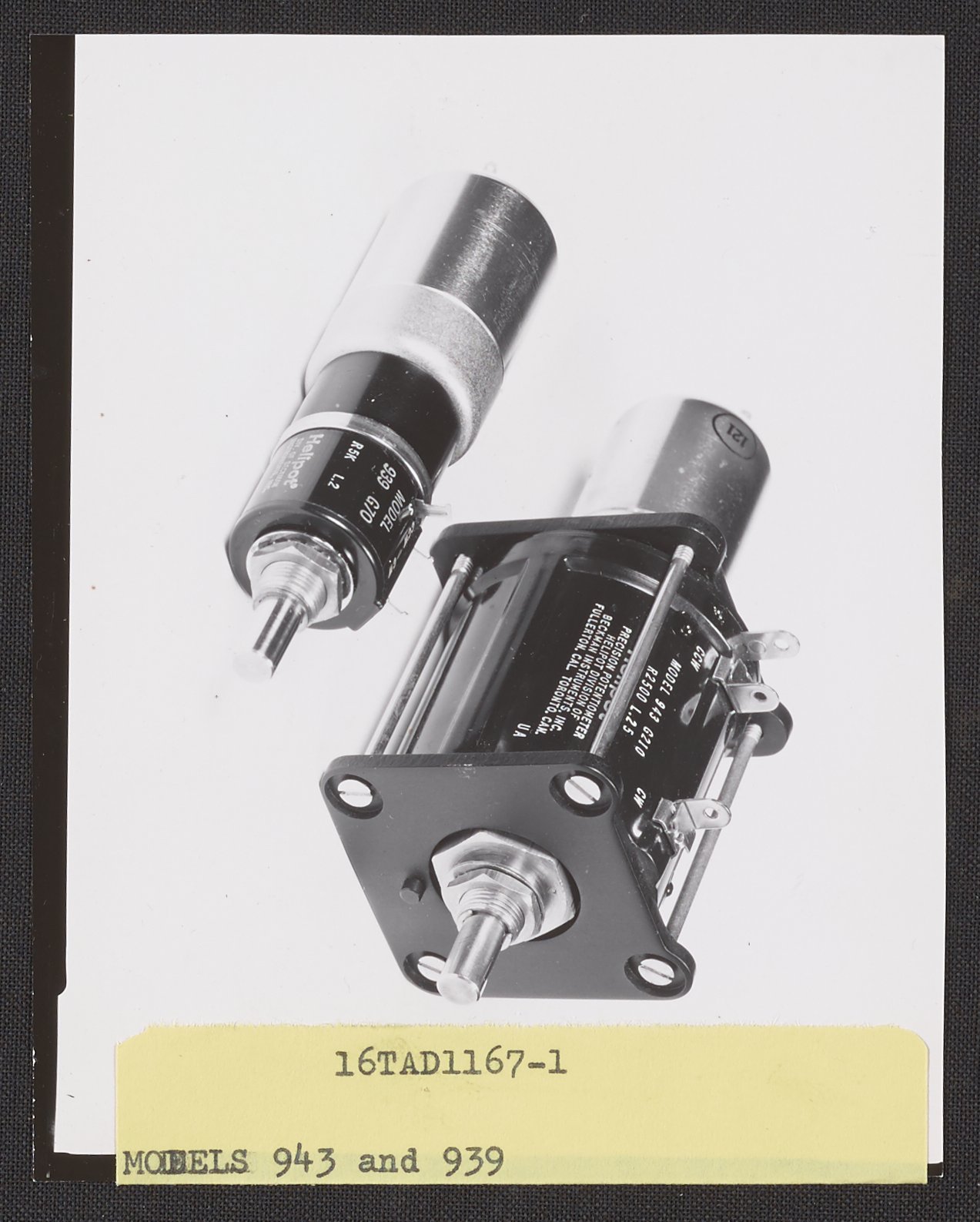 Dietrich, T. A. “Helipot Model 943 and 939 Potentiometers,” 1950–1969. Beckman Historical Collection, Box 85. Science History Institute. Philadelphia. https://digital.sciencehistory.org/works/t435gd55k.