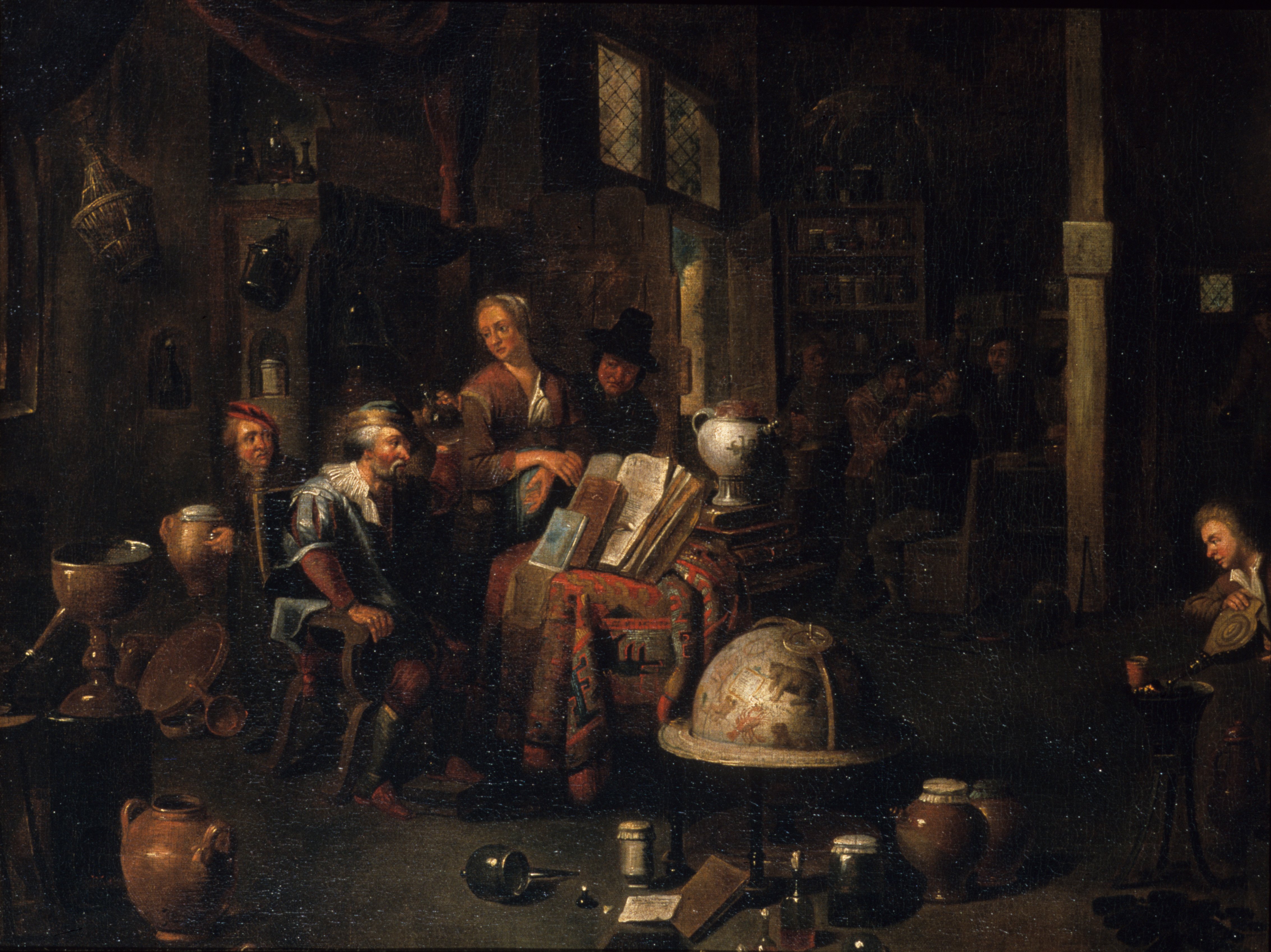 Bossche, Balthasar van den. The Alchemist in His Workshop. Oil paint (paint), canvas (textile material), n.d. Science History Institute. Philadelphia. https://digital.sciencehistory.org/works/t722h880z.