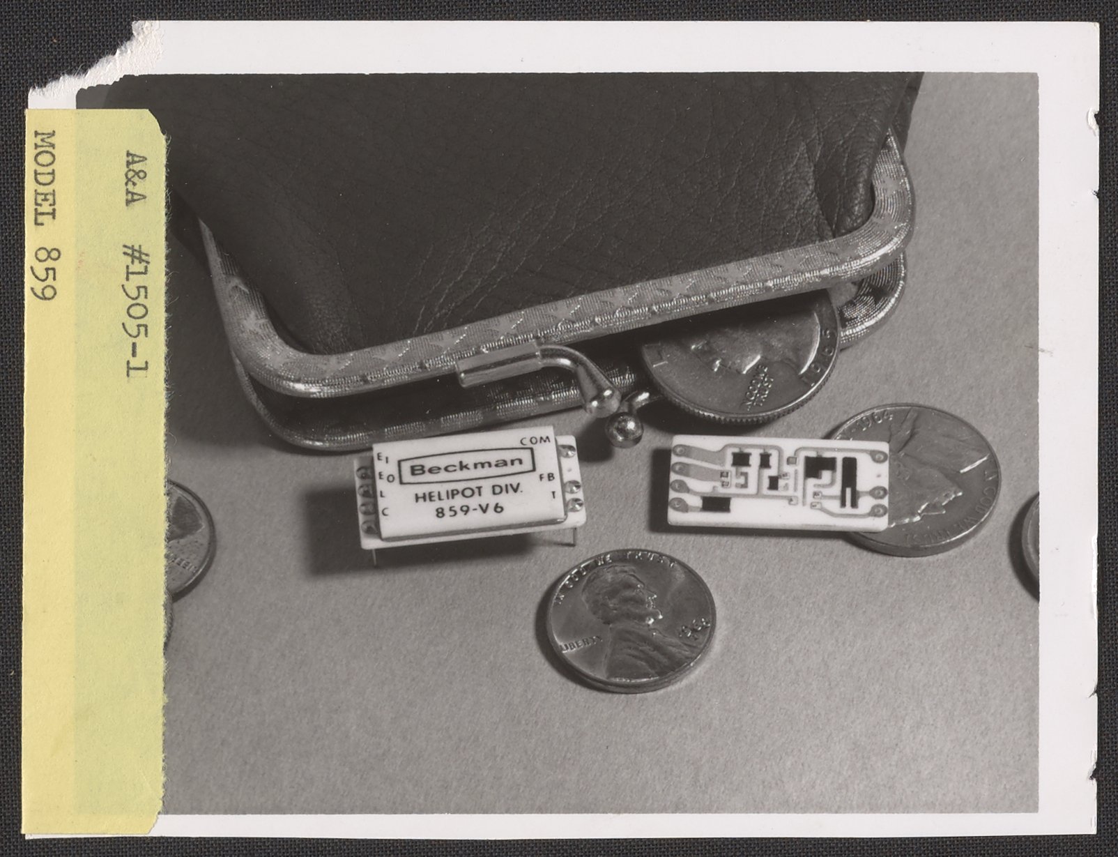 Armstrong & Hess. “Beckman Model 859 Voltage Regulator with Change Purse and Coins,” 1950–1969. Beckman Historical Collection, Box 85. Science History Institute. Philadelphia. https://digital.sciencehistory.org/works/t722h9139.