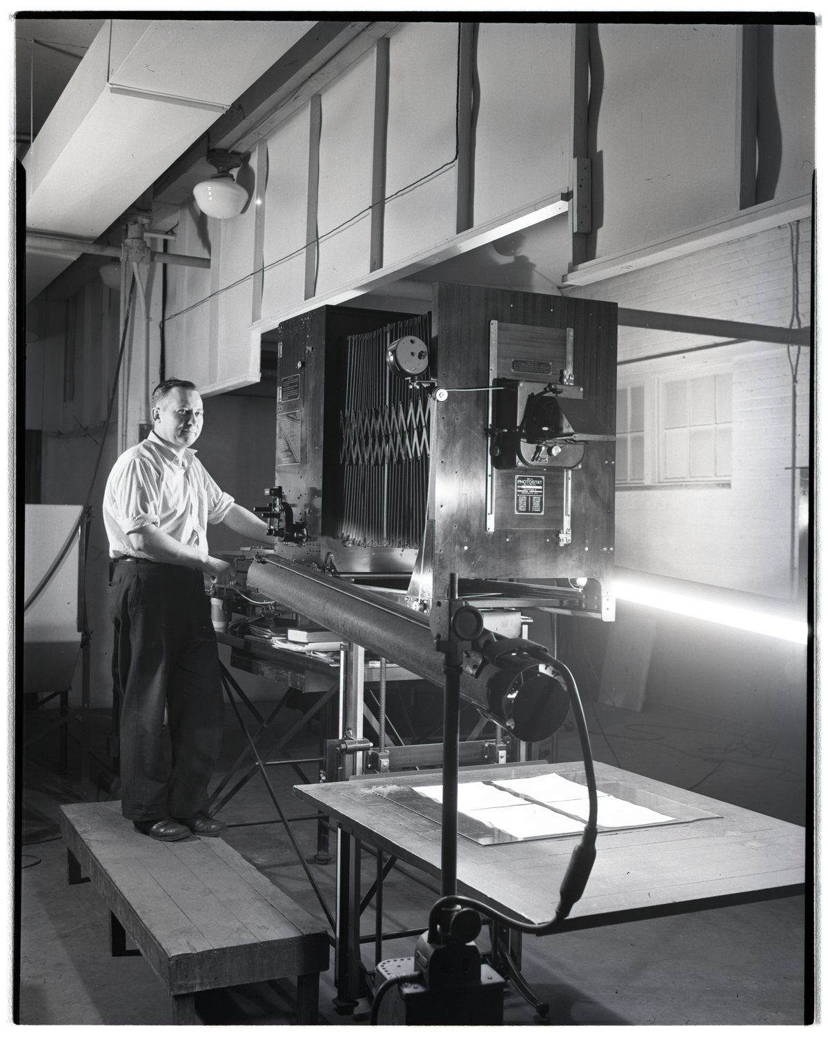 Russ Johnson operating photostat machine in Dow Photographic Laboratory