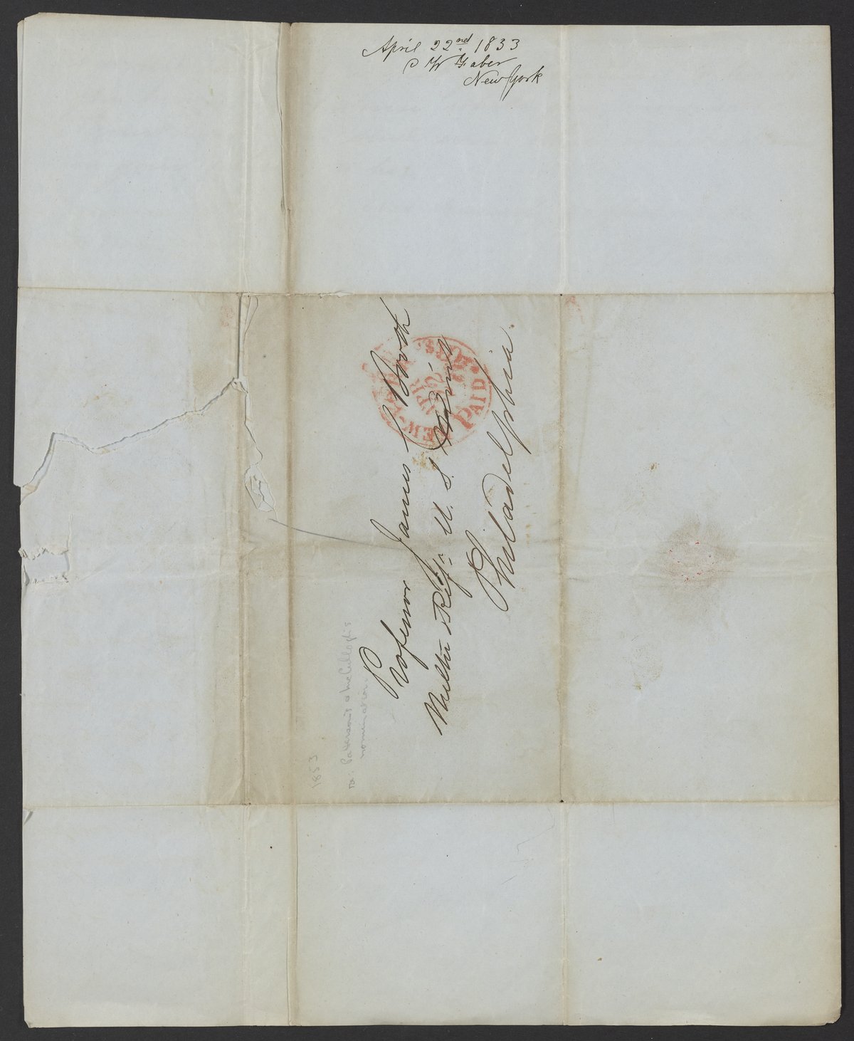 Letter from Conrad William Faber to James Curtis Booth, April 22, 1853