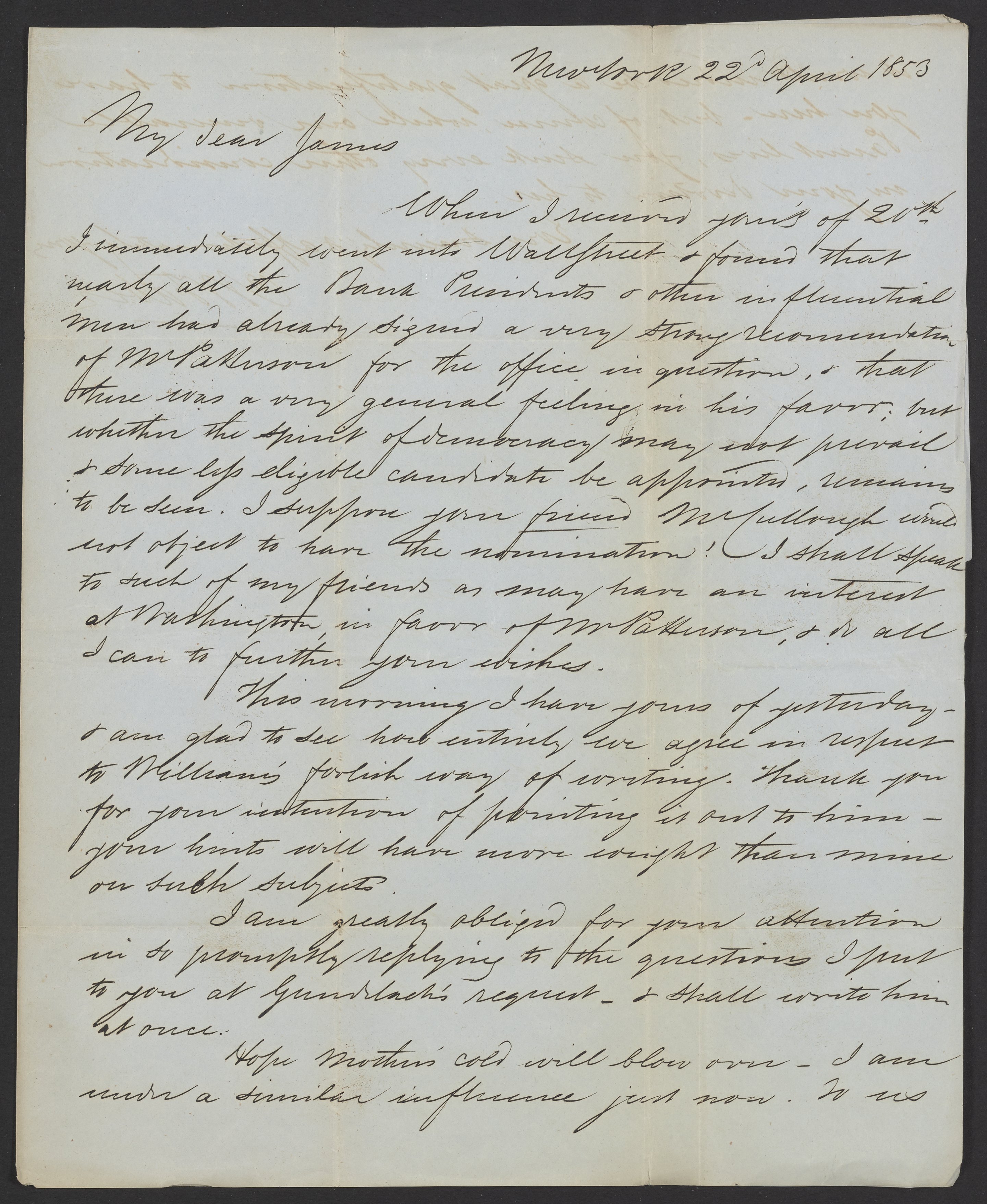 Small JPG1200 x 1463px — 325 KBLarge JPG2880 x 3511px — 1.4 MBFull-sized JPG3740 x 4559px — 2.2 MBOriginal fileTIFF — 3740 x 4559px — 48.8 MBConcerns the chances of a one Mr. Patterson to obtain a certain position.