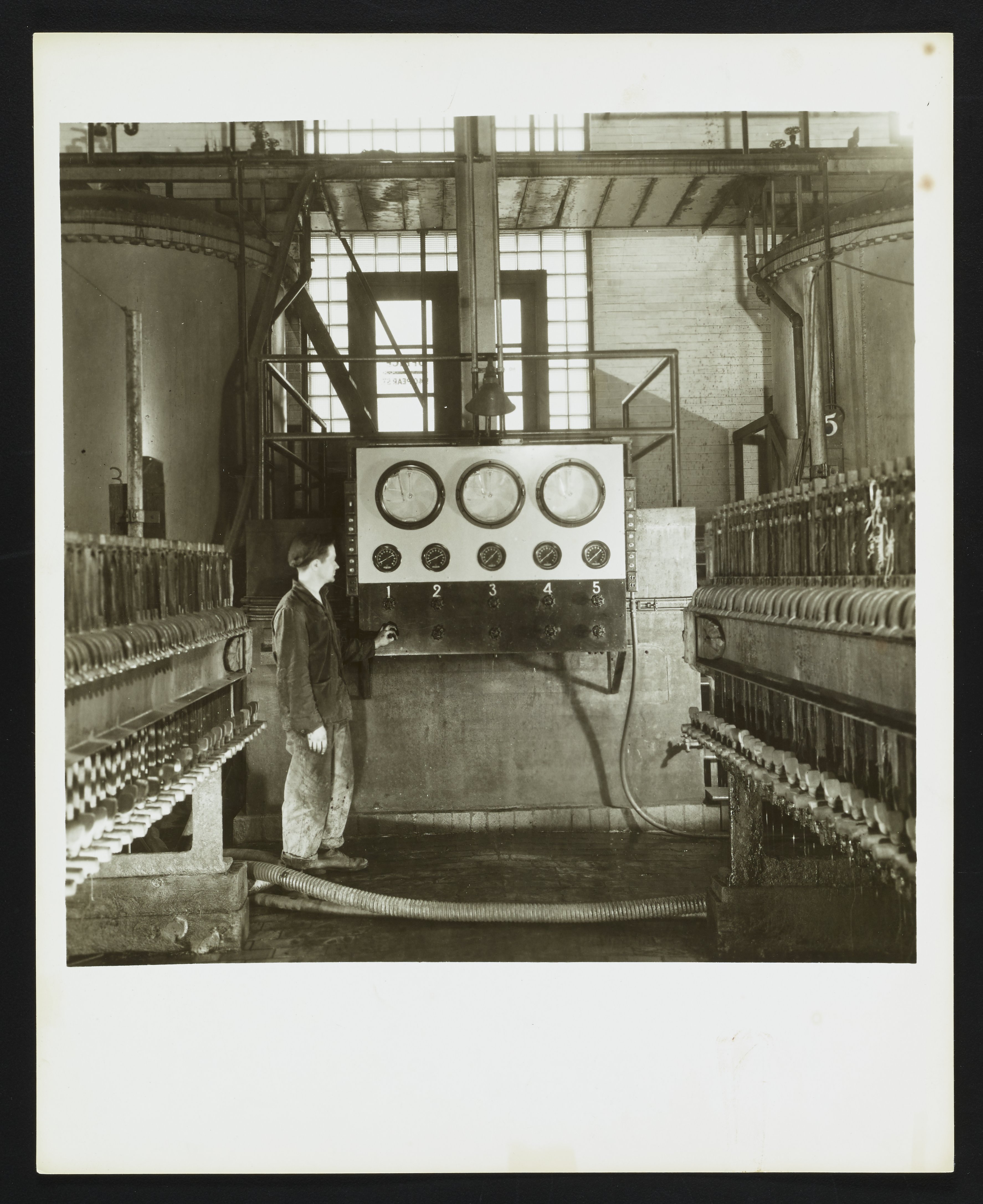 “Control Panel at the Althouse Chemical Company Plant,” 1946. Photographs from the Records of the Althouse, Bates, and Crompton Chemical Companies, Box 1. Science History Institute. Philadelphia. https://digital.sciencehistory.org/works/tb09j565c.