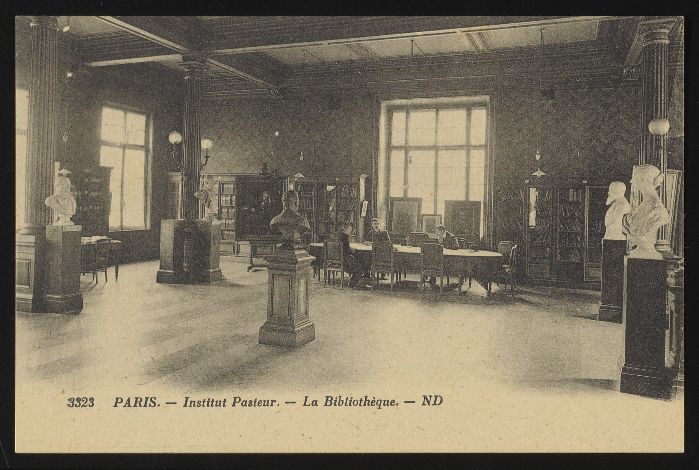 Lévy et Neurdein réunis. “Postcard - Institut Pasteur - La Bibliotheque.” Paris, France, circa 1920. Fisher-Pasteur Memorial Collection, Box 1, Folder 24. Science History Institute. Philadelphia. https://digital.sciencehistory.org/works/tb09j574b.