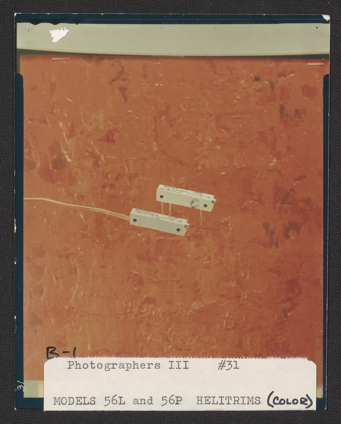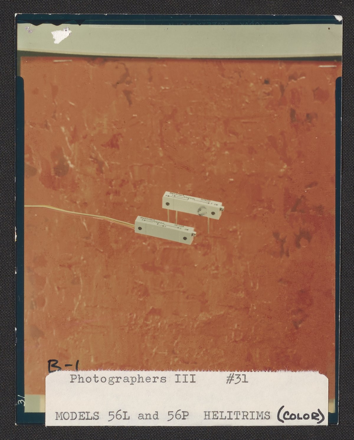 Photographers III. “Helitrim Models 56L and 56P Trimming Potentiometers on an Orange Background,” 1960–1979. Beckman Historical Collection, Box 85. Science History Institute. Philadelphia. https://digital.sciencehistory.org/works/tb09j600r.