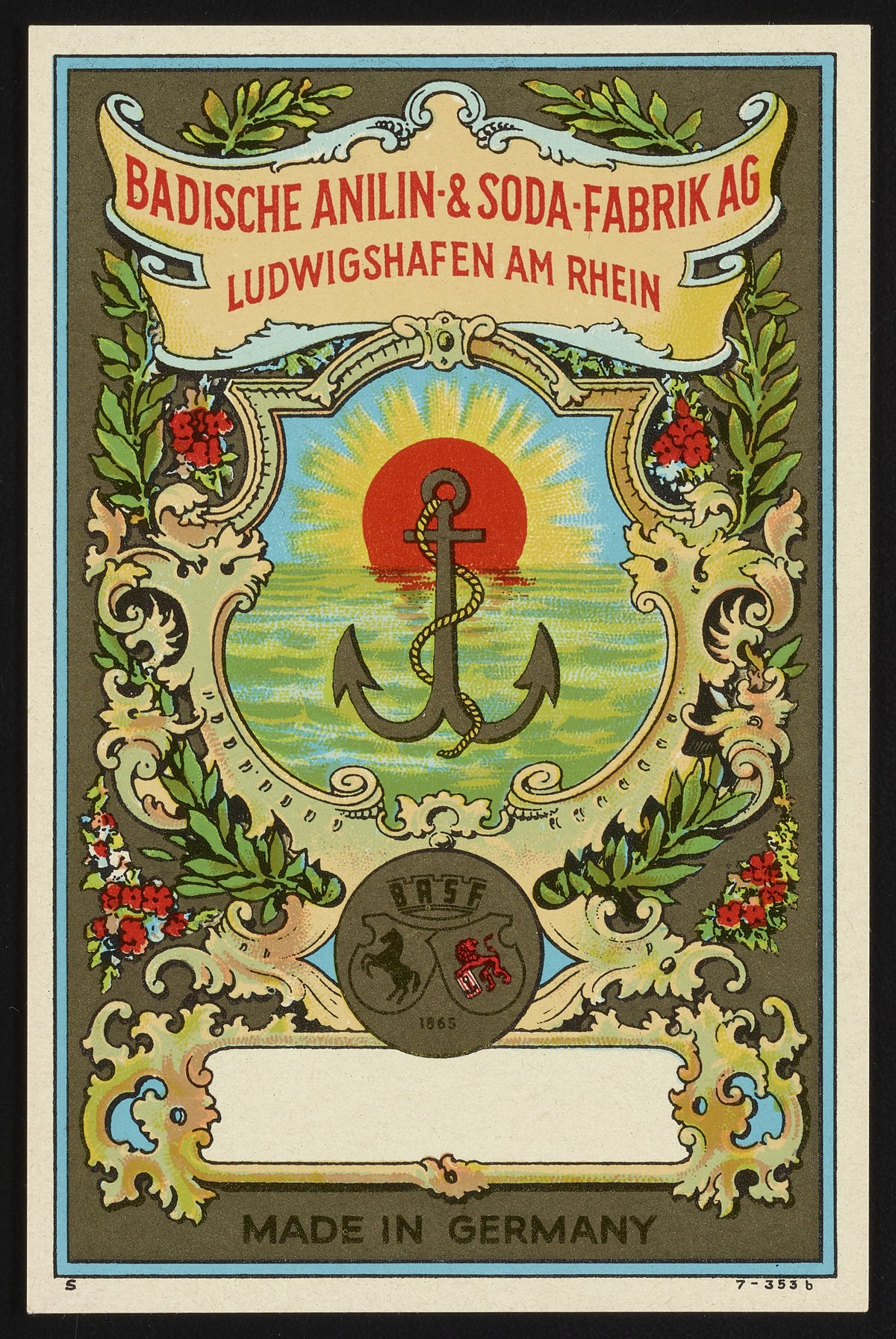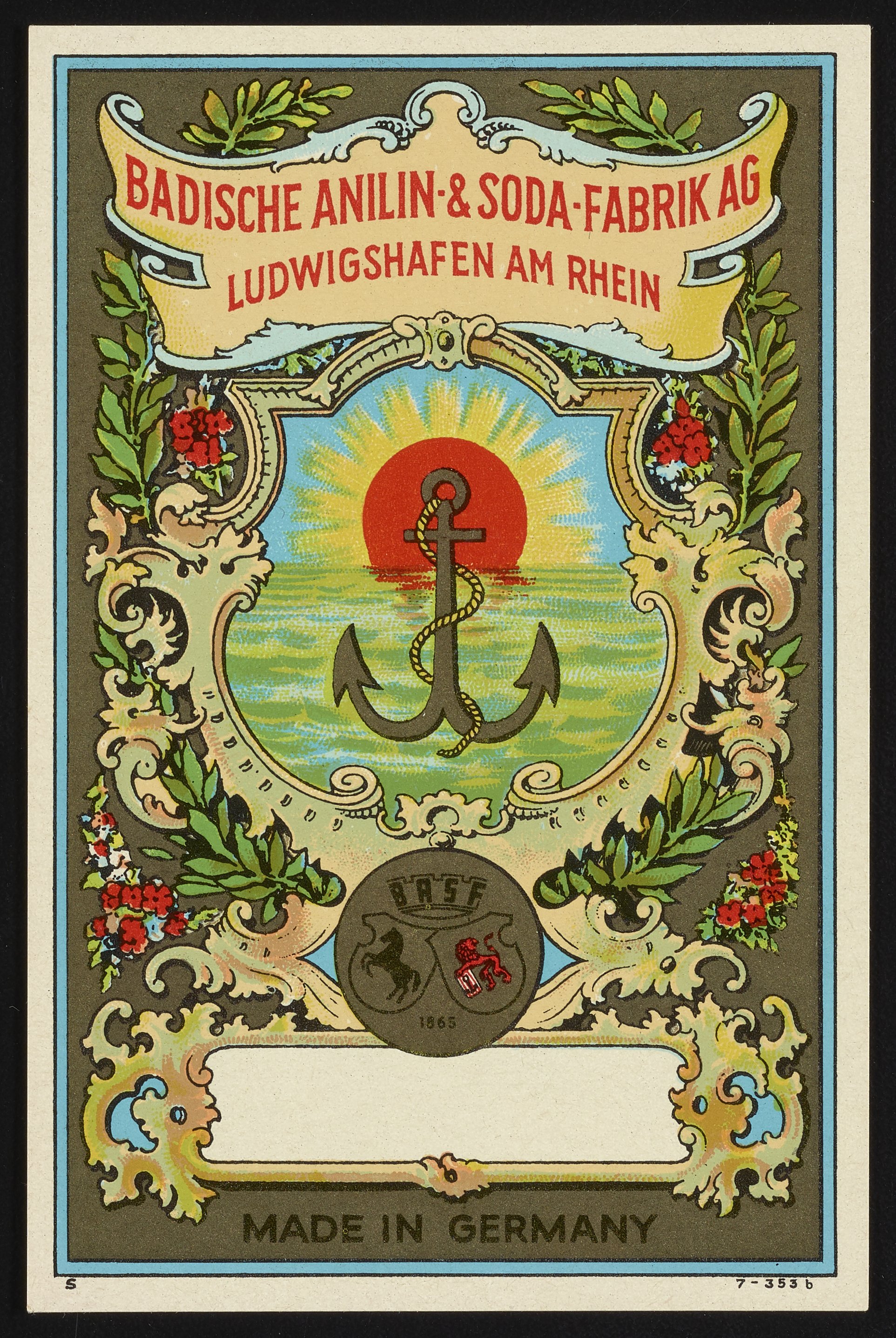 Badische Anilin & Soda-Fabrik dye label with anchor