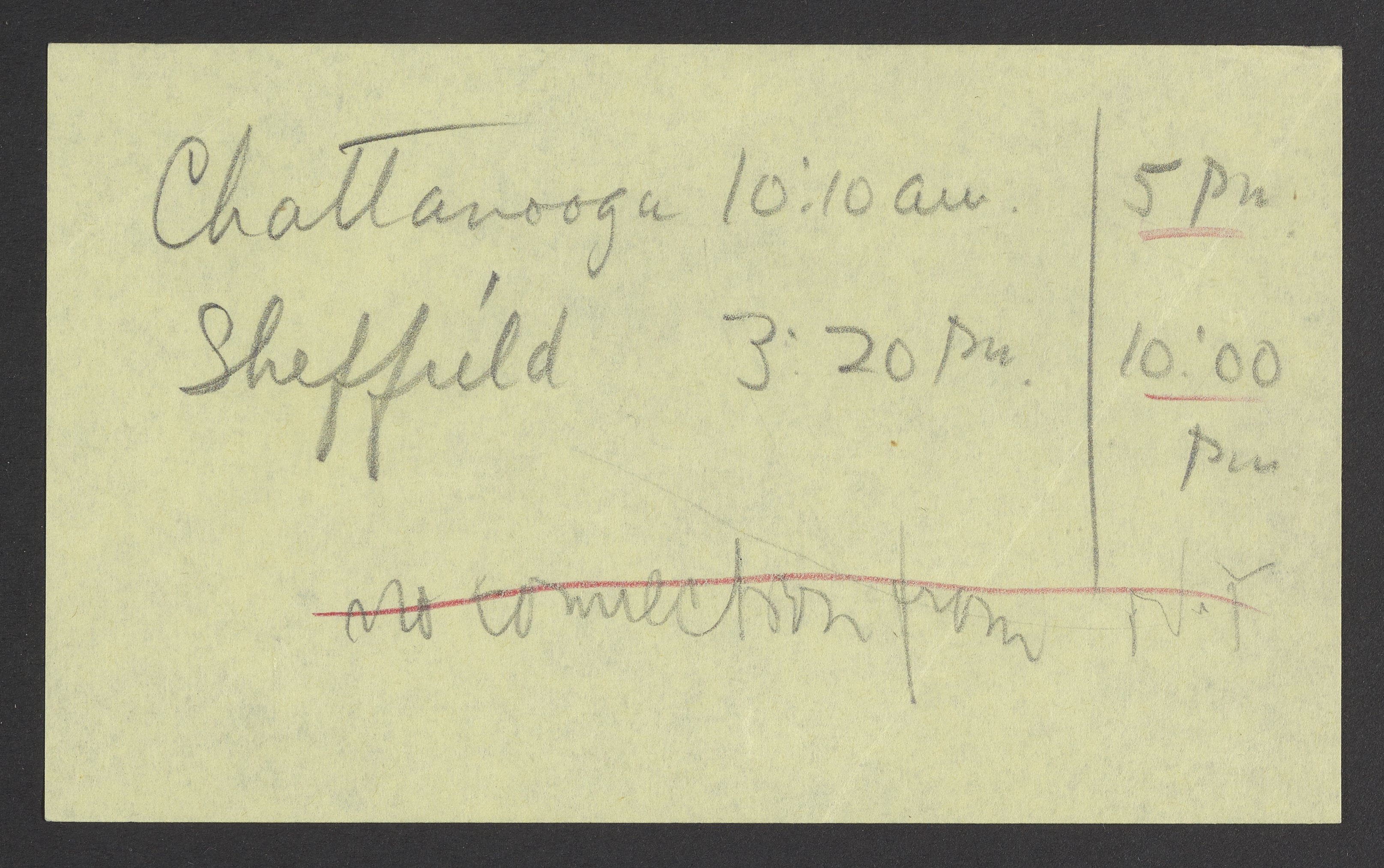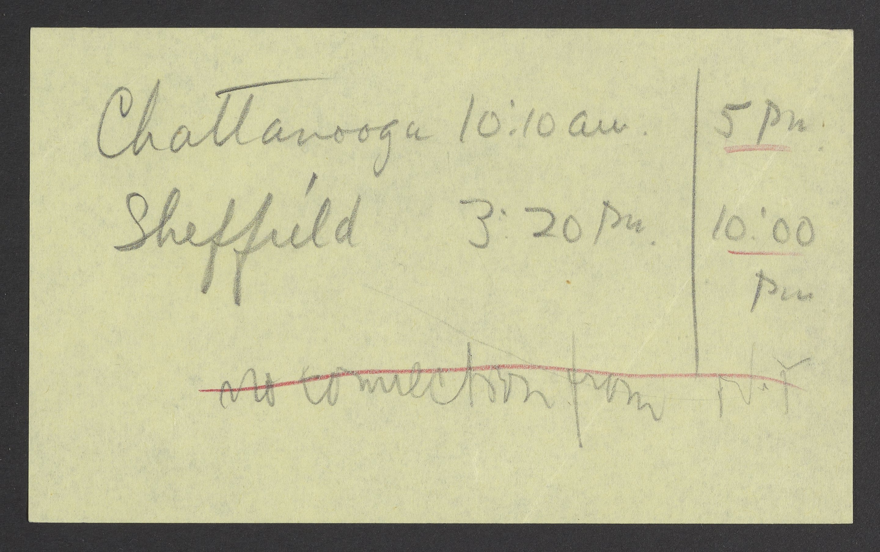 Small JPG1200 x 753px — 132 KBLarge JPG2880 x 1807px — 837 KBFull-sized JPG3231 x 2027px — 1.0 MBOriginal fileTIFF — 3231 x 2027px — 18.8 MBTravel notes relating to Max Albert Bredig's (1902-1977) move to Oak Ridge, Tennessee.