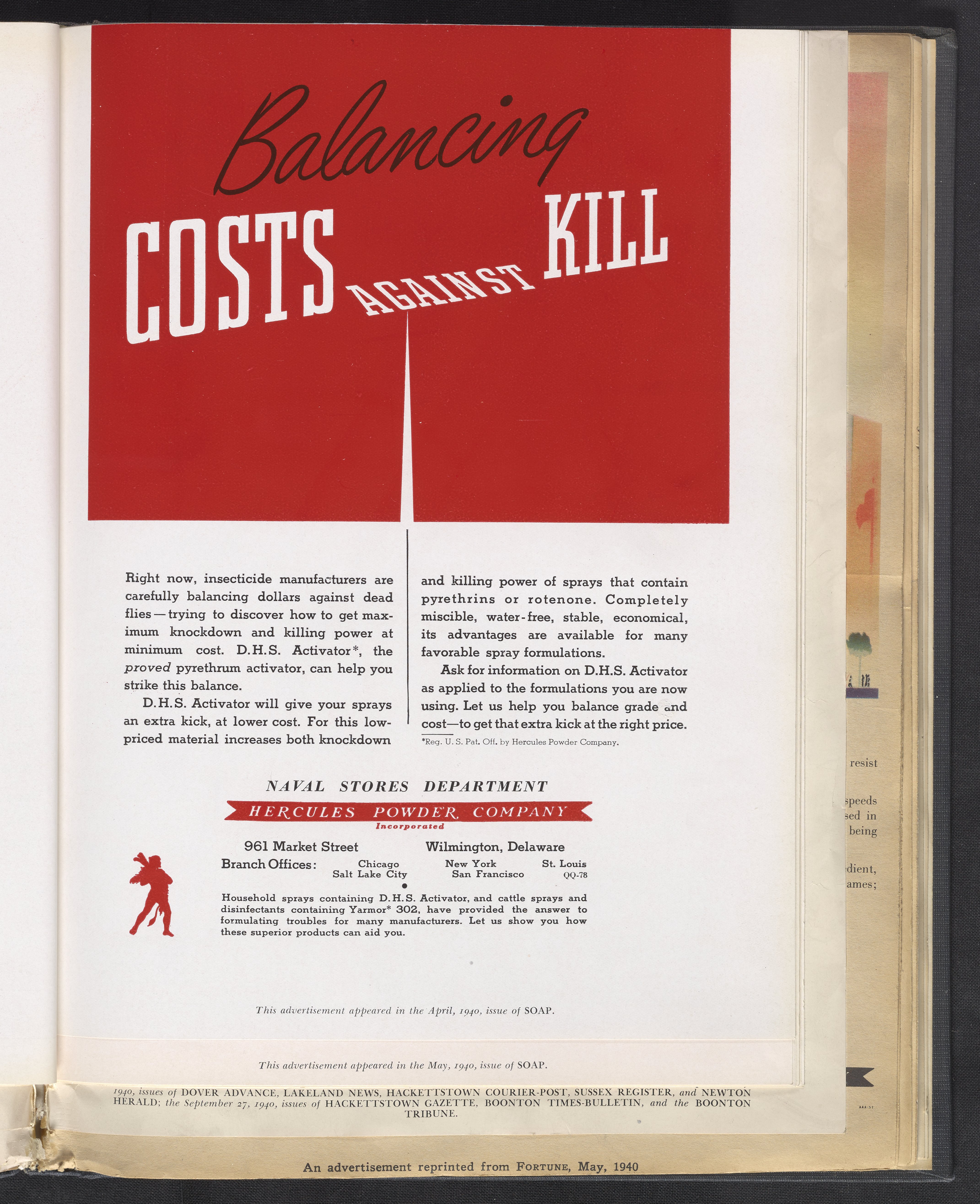 Hercules Incorporated. “Balancing Costs Against Kill.” 1940 Hercules Advertisements, 1940. Records of Hercules Incorporated, Volume 1940. Science History Institute. Philadelphia. https://digital.sciencehistory.org/works/td96k343r.