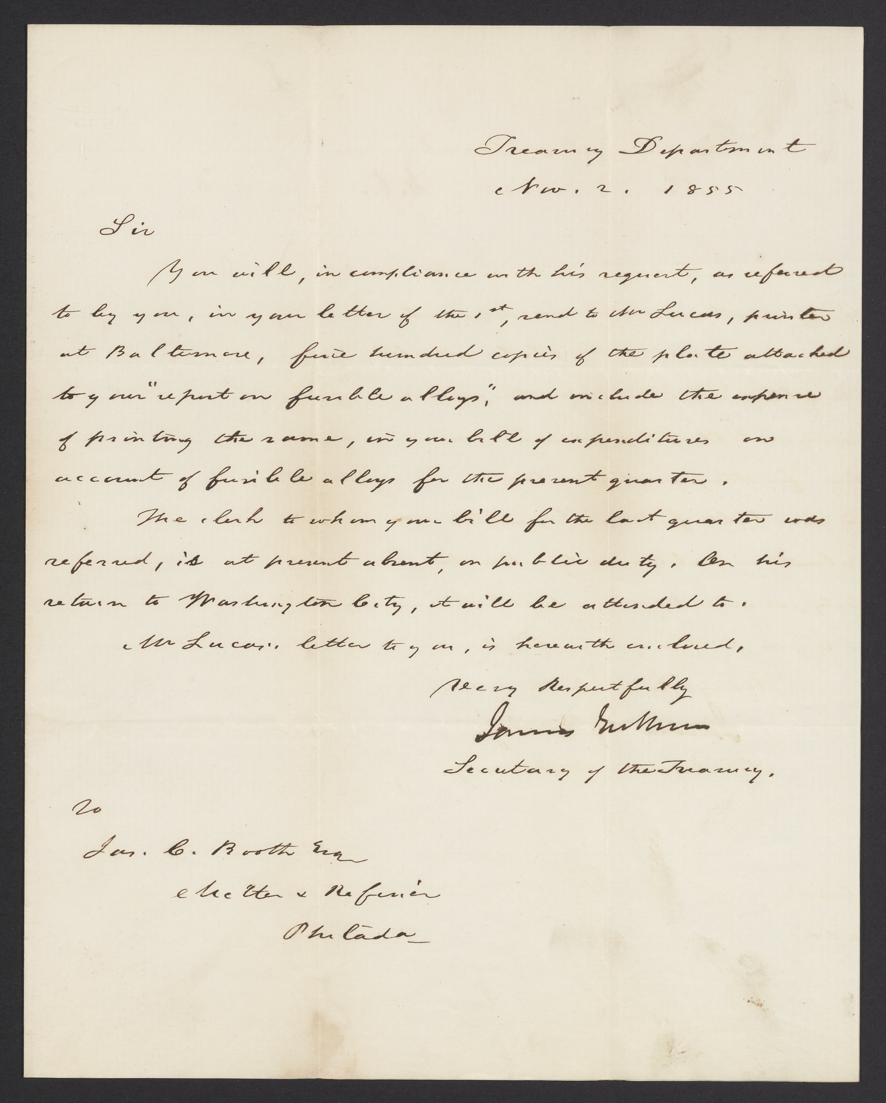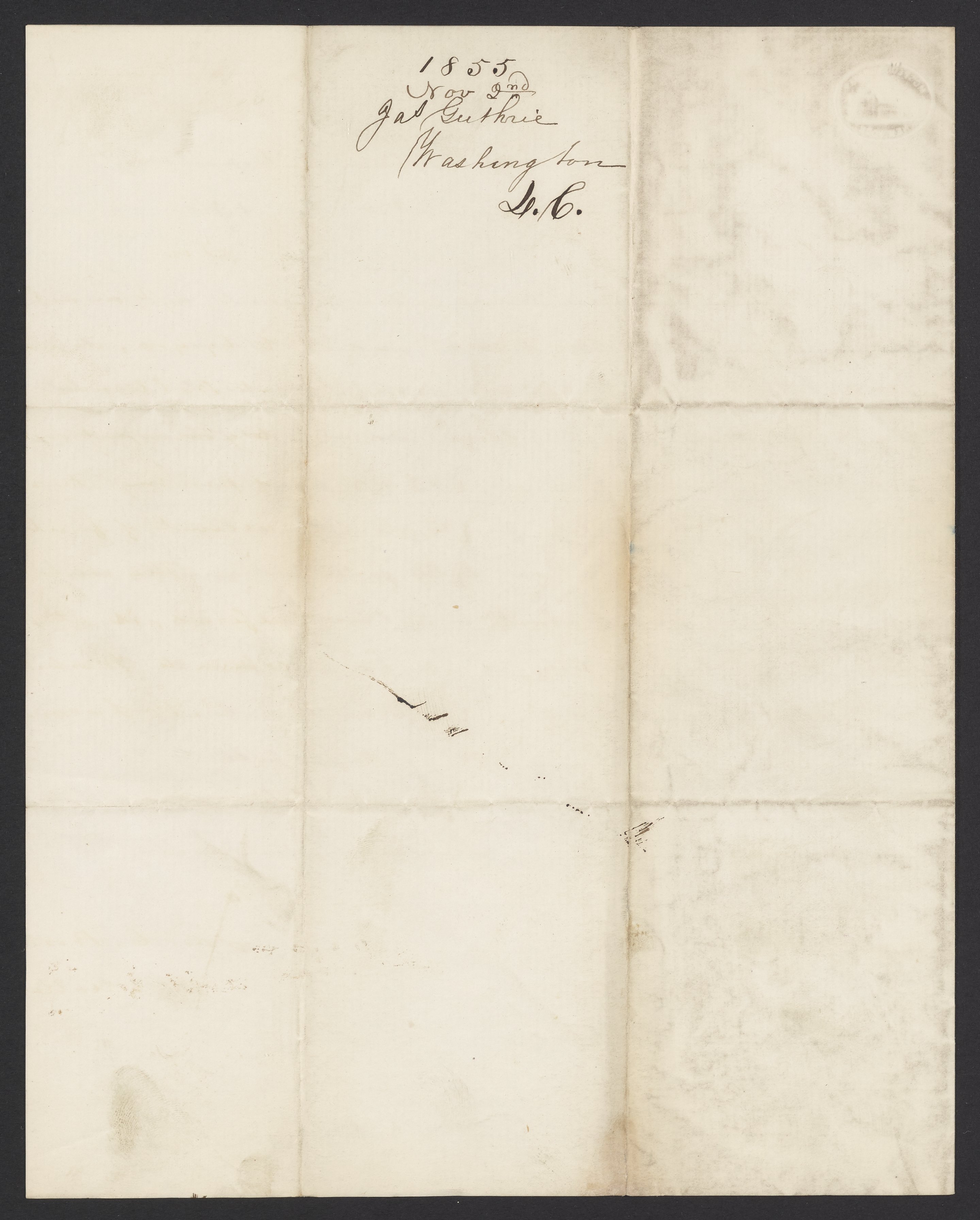 Letter from James B. Guthrie to James Curtis Booth, November 2, 1855