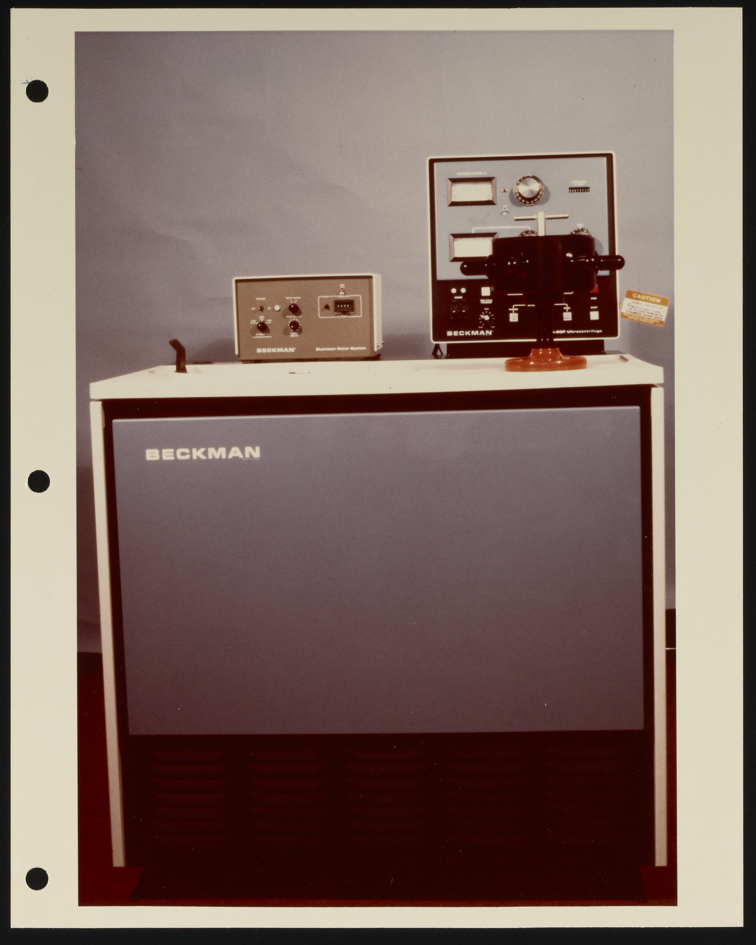 “Spinco Model L5-50P Ultracentrifuge,” 1973–1982. Beckman Historical Collection, Box 59, Folder 71. Science History Institute. Philadelphia. https://digital.sciencehistory.org/works/th83kz43m.