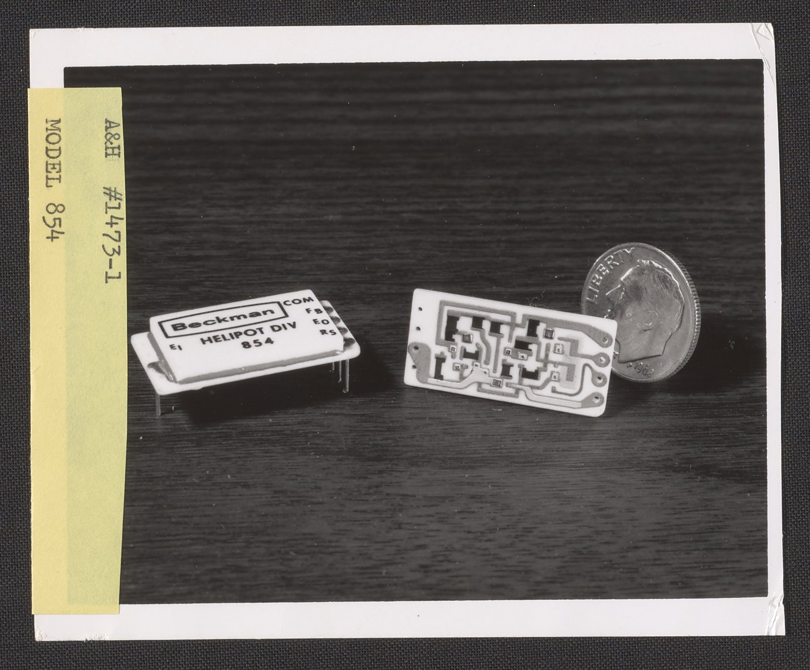 Armstrong & Hess. “Helipot Model 854 Voltage Regulators with Dime,” 1950–1969. Beckman Historical Collection, Box 85. Science History Institute. Philadelphia. https://digital.sciencehistory.org/works/th83kz73b.