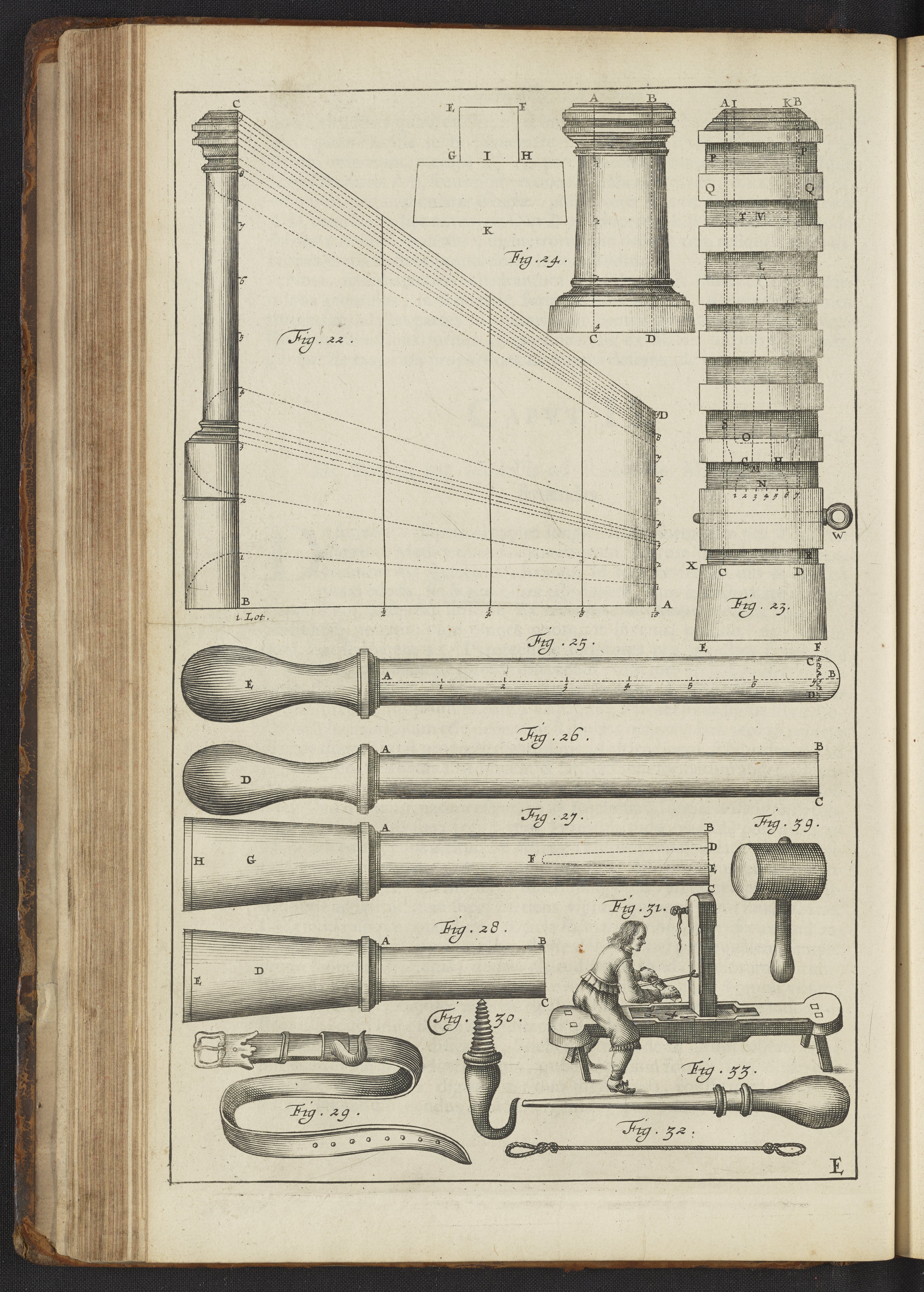 Plate E: Rocket and cracker molds; instruments for charging rocket cases; tools and techniques for choking rocket cases