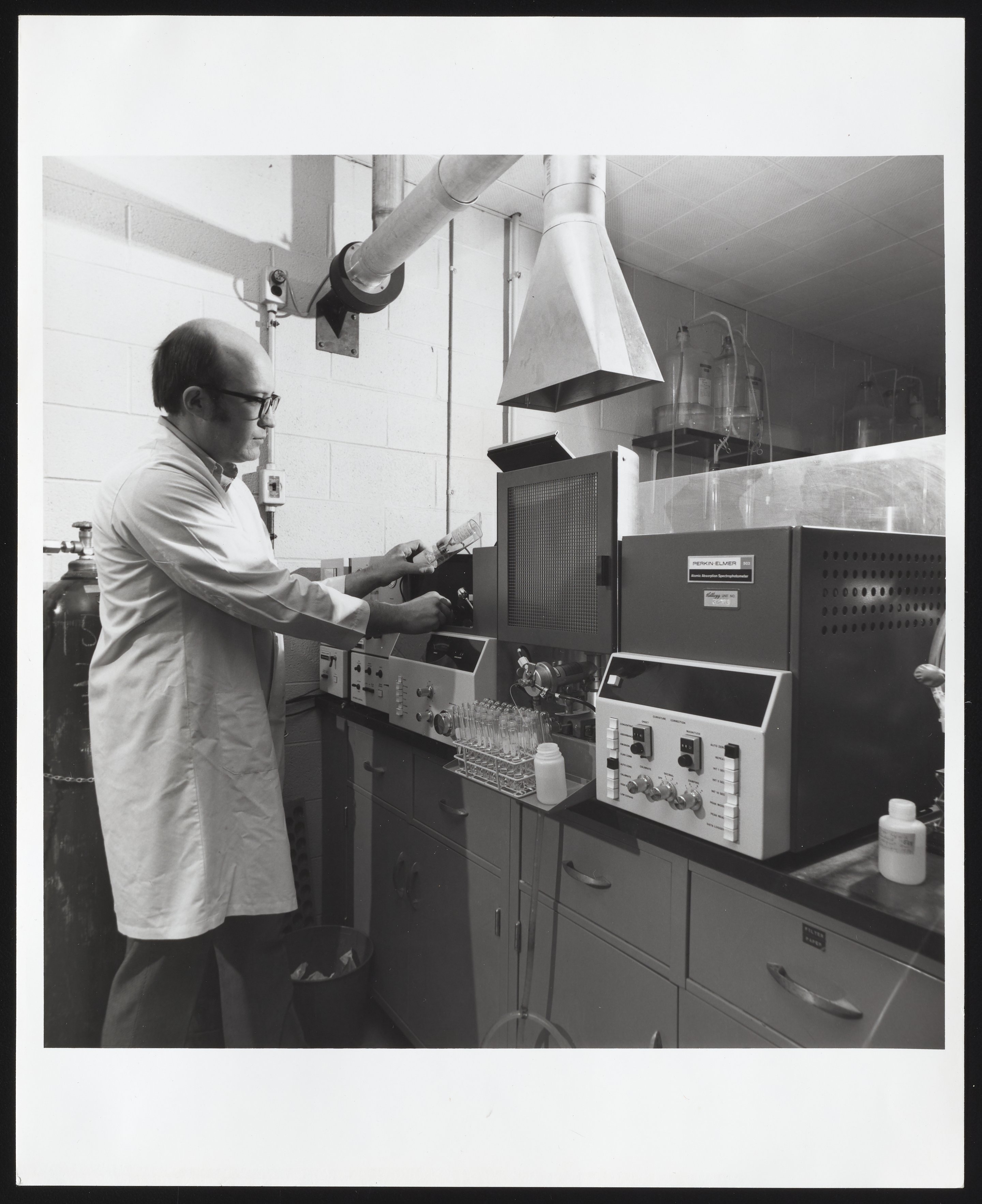 Perkin-Elmer Corporation. “Perkin-Elmer Atomic Absorption Spectrophotometer in Use at Kellogg's Laboratory,” circa 1975. Photographs from the Perkin-Elmer-Applera Collection, Box 4. Science History Institute. Philadelphia. https://digital.sciencehistory.org/works/tm70mv94b.