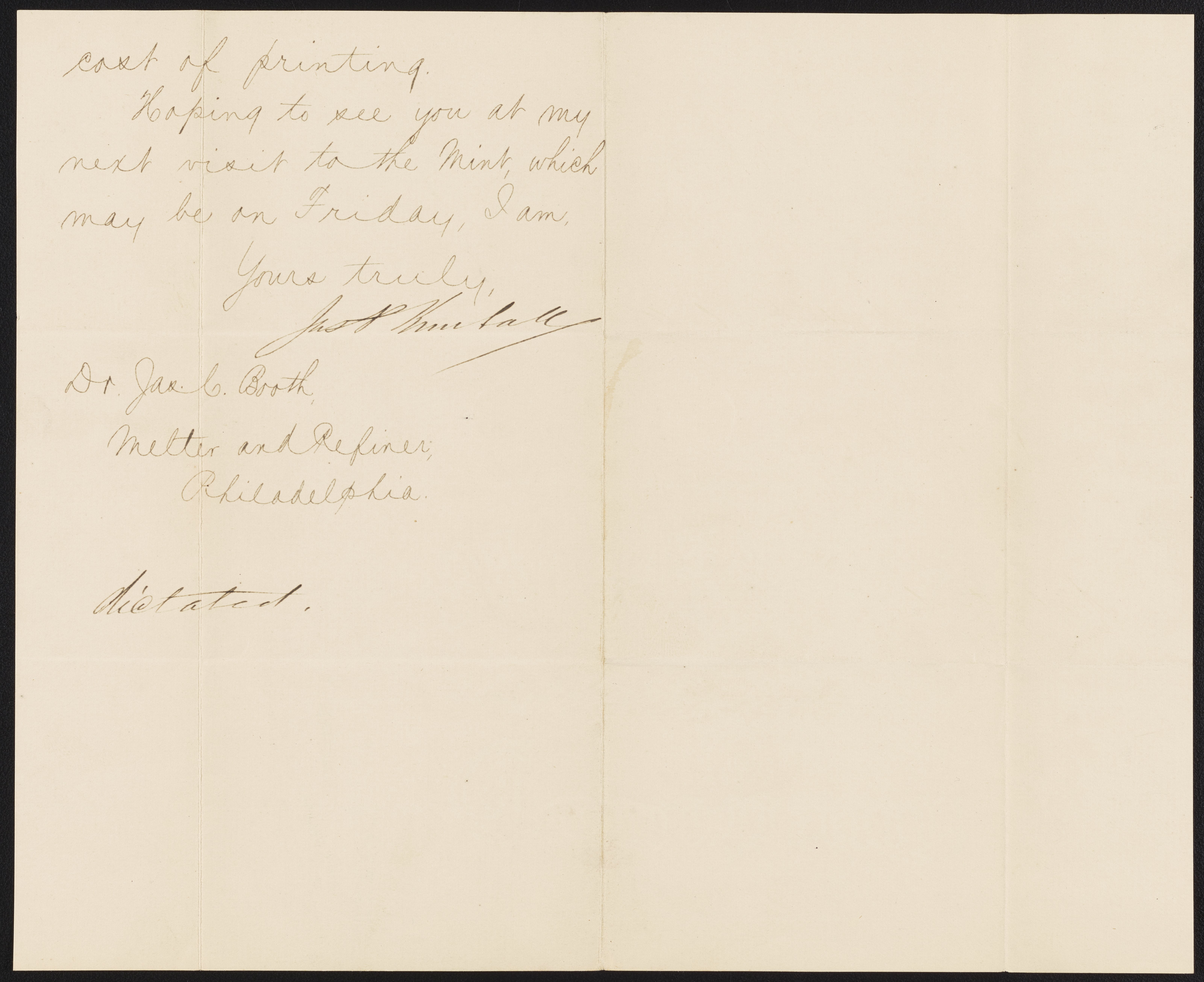 Letter from James P. Kimball to James Curtis Booth, August 12, 1885