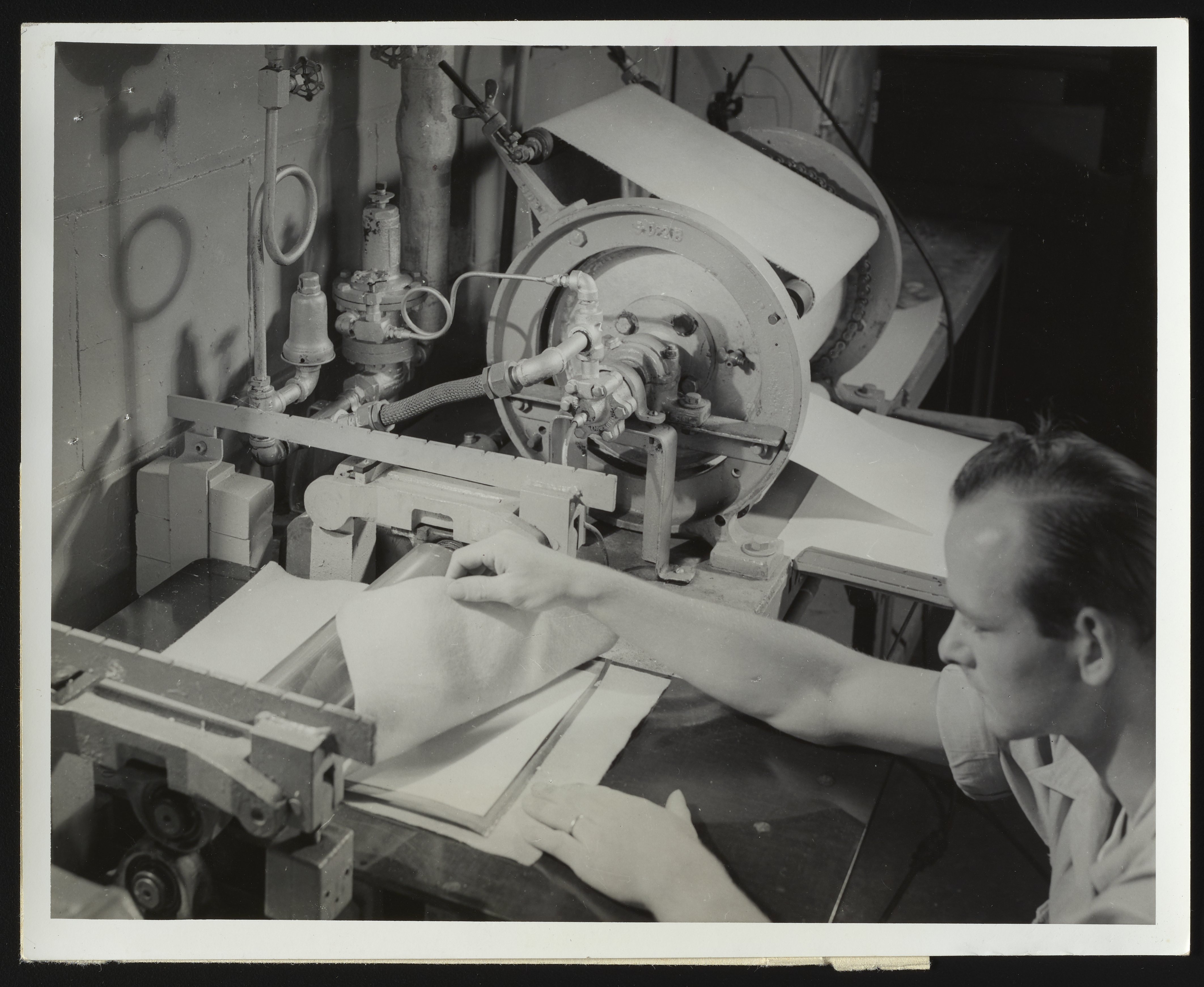 Donald Stevens operating sheet-making equipment at Hercules Hopewell plant
