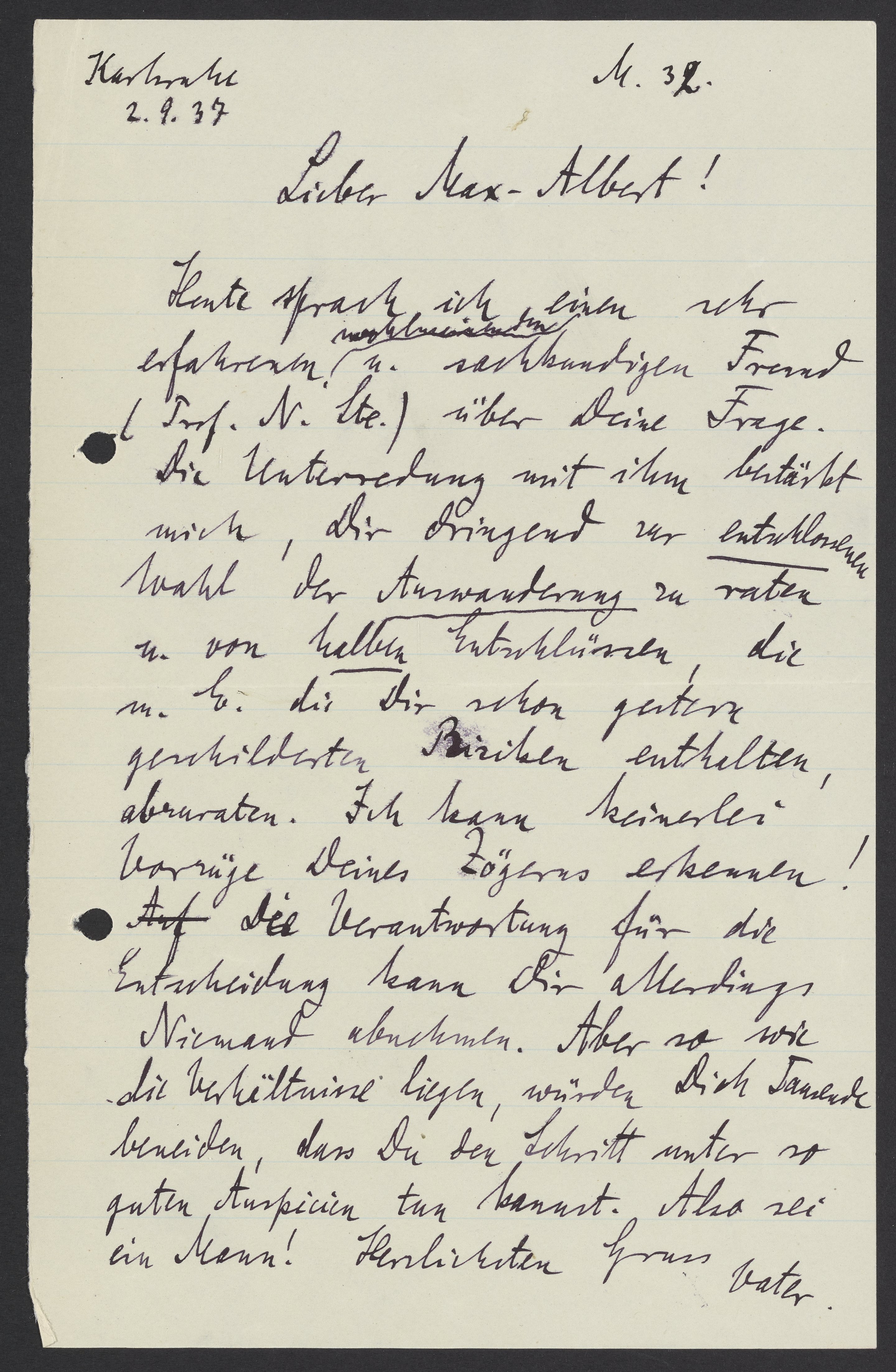 Letter from Georg Bredig to Max Bredig, September 2, 1937