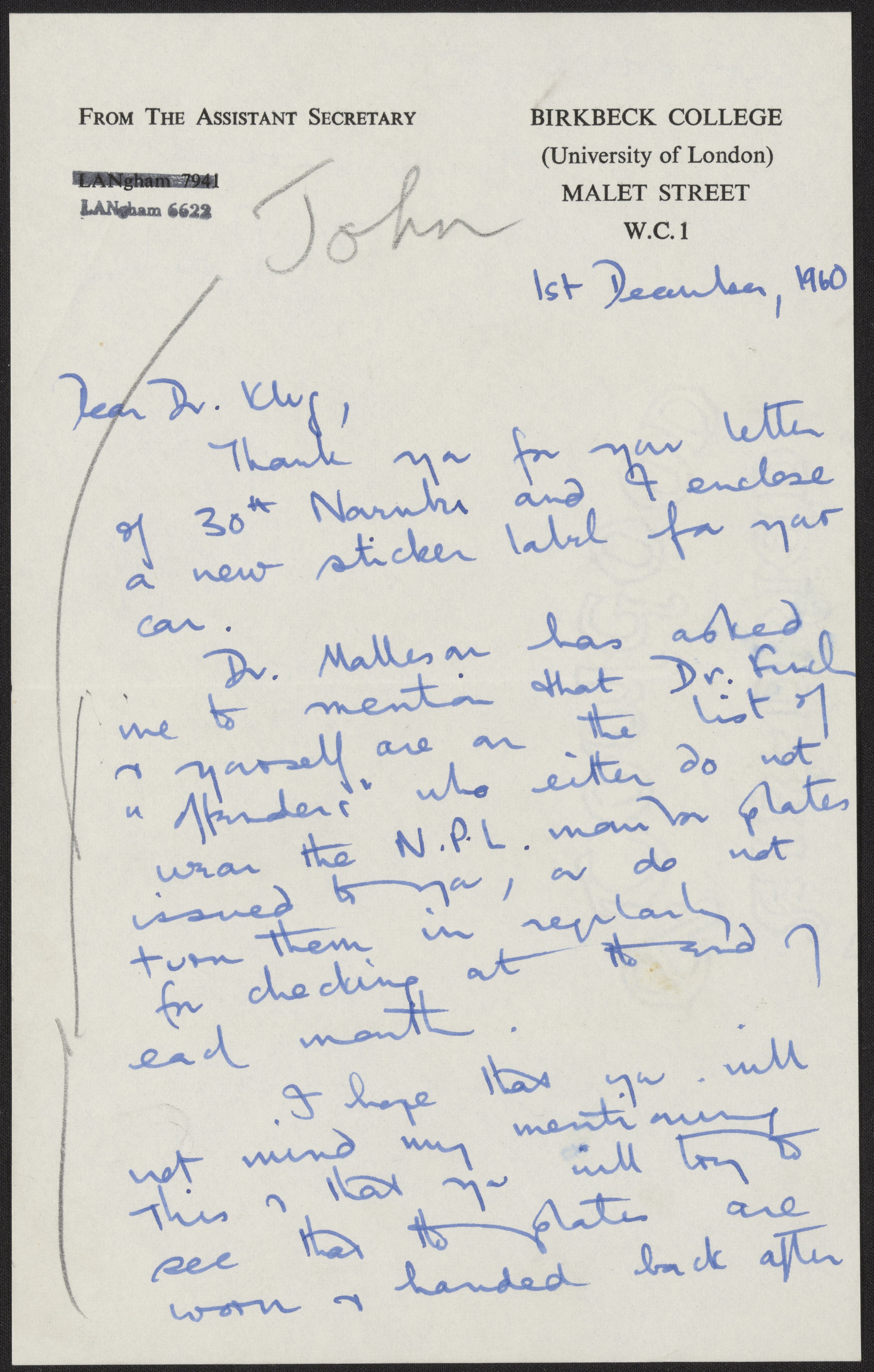 “Letter to Aaron Klug, December 1, 1960,” December 1, 1960. History of Molecular Biology Collection, Box 17, Folder 12. Science History Institute. Philadelphia. https://digital.sciencehistory.org/works/txtphy5.