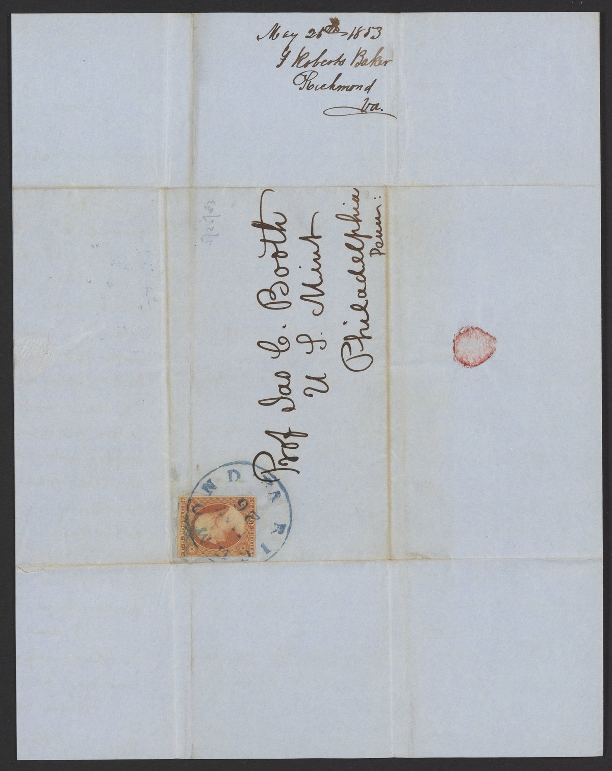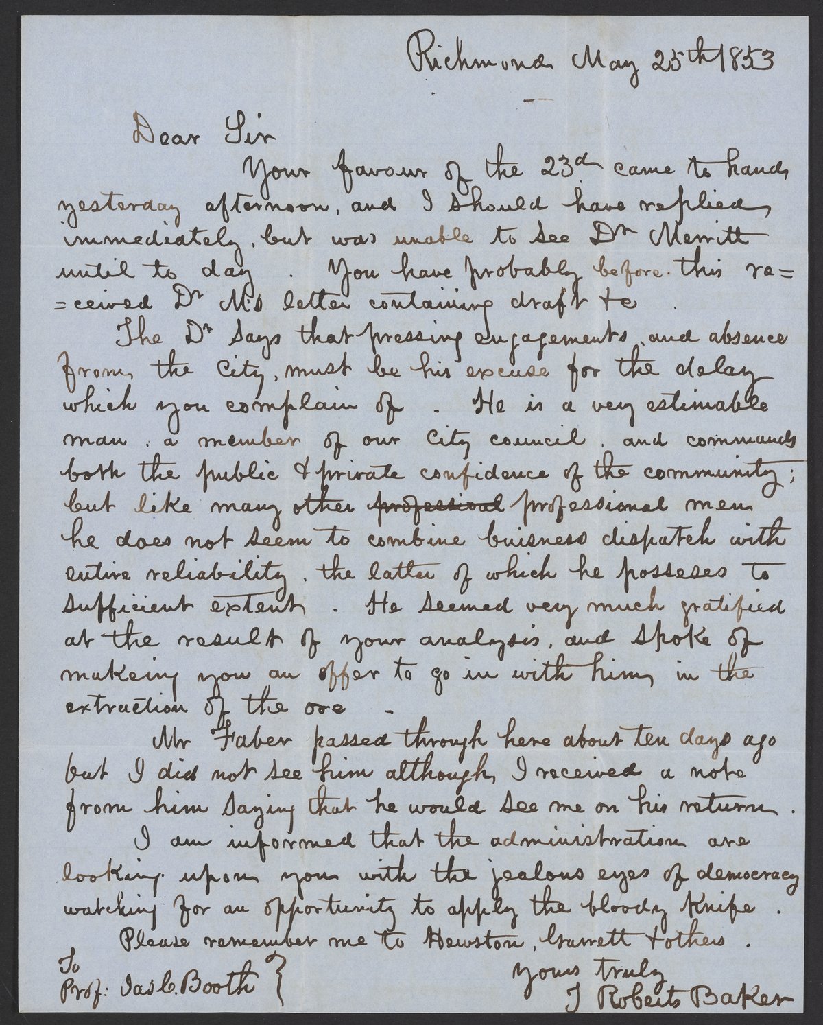Letter from T. Roberts Baker to James Curtis Booth, May 25, 1853