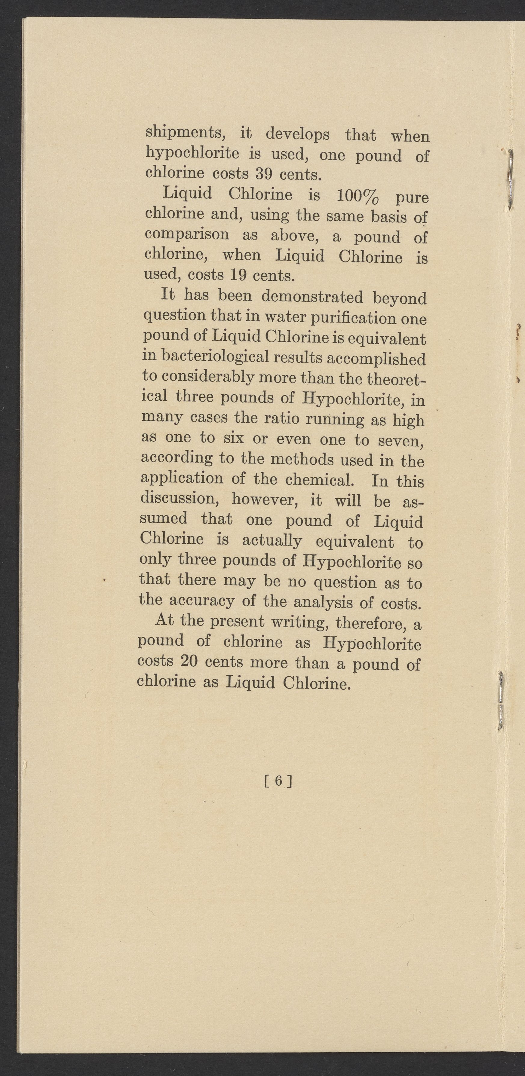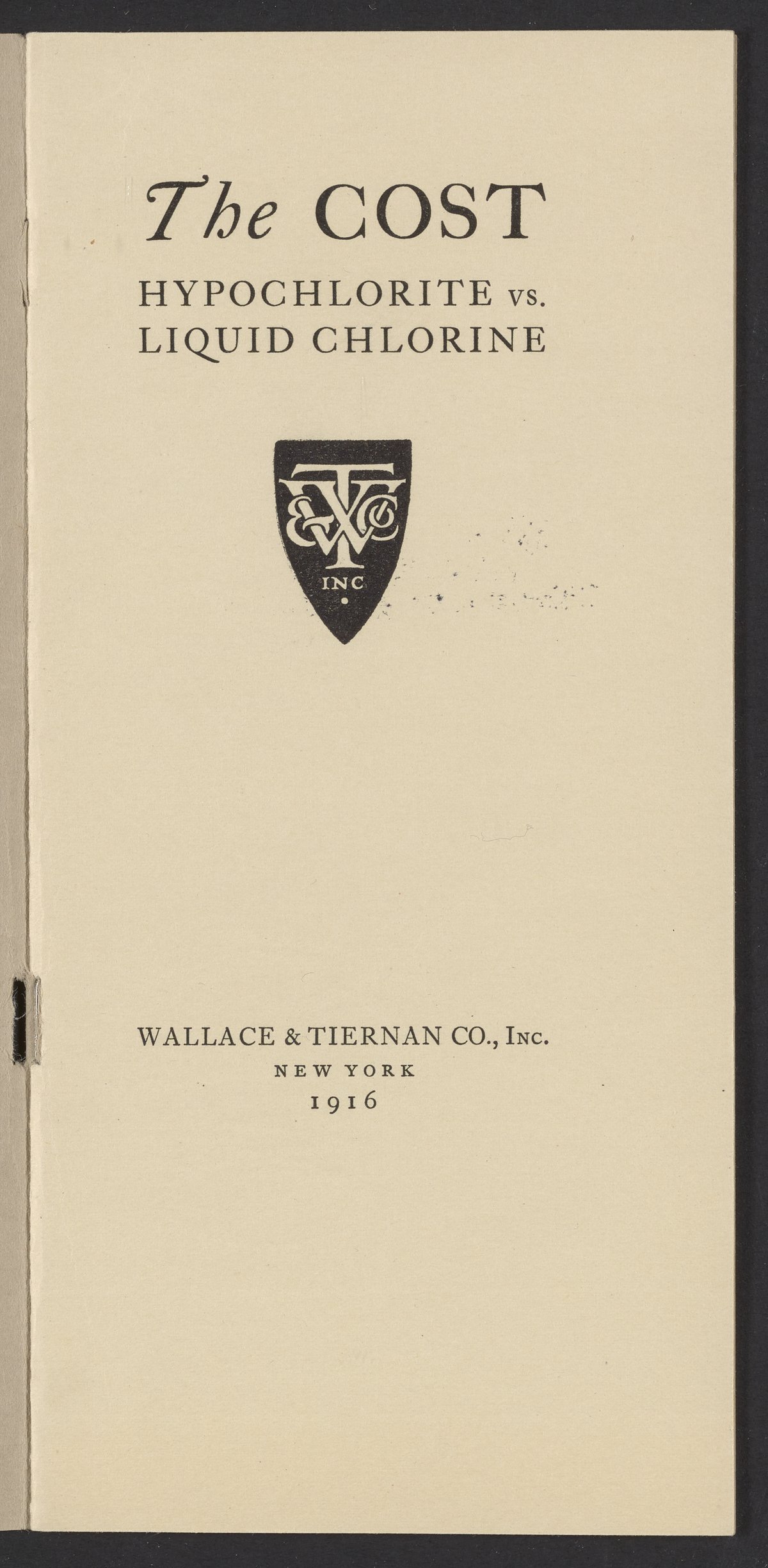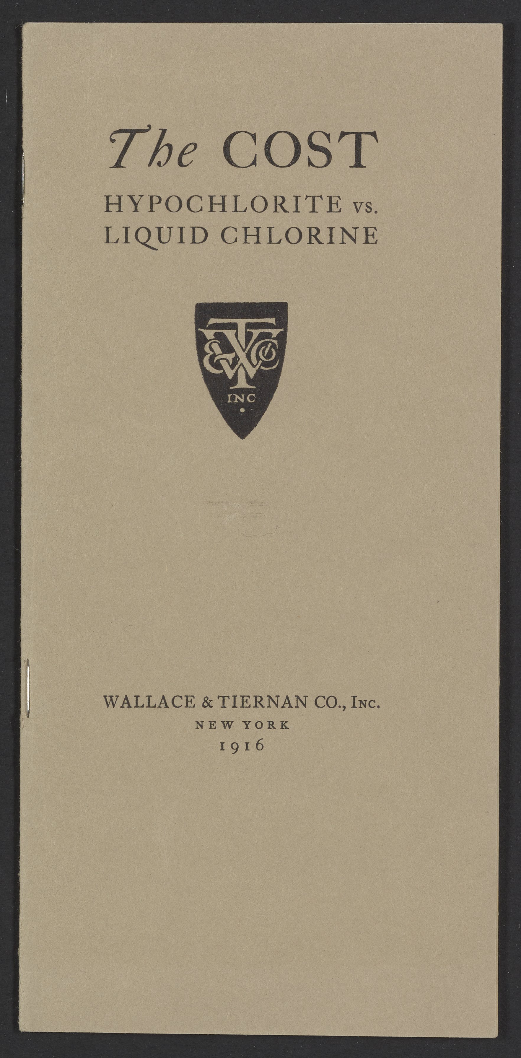Wallace & Tiernan Company. “The Cost : Hypochlorite vs. Liquid Chlorine.” New York (State): Wallace & Tiernan Company, 1916. TP245.C5 W35 1916. Science History Institute. Philadelphia. https://digital.sciencehistory.org/works/up43yt7.