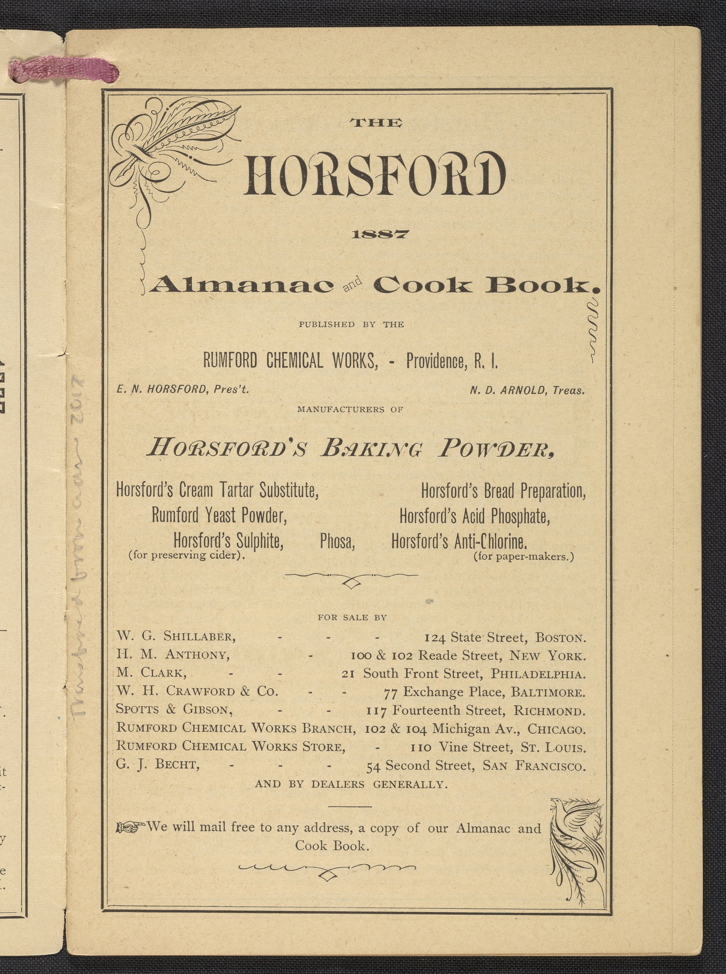 “The Horsford 1887 Almanac and Cook Book.” Providence, Rhode Island: Rumford Chemical Works, 1887. https://digital.sciencehistory.org/works/uqo4l02.