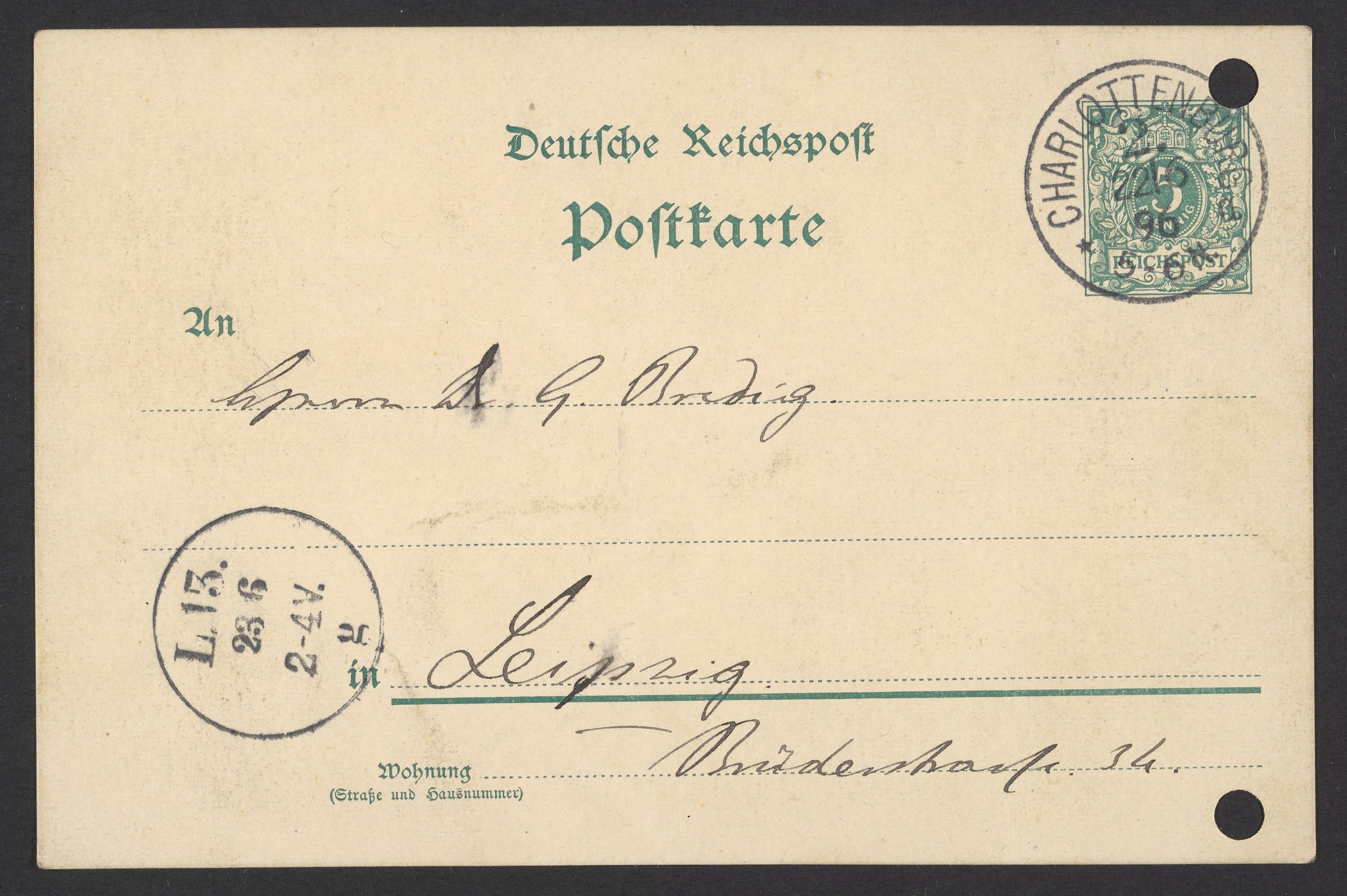 Postcard from Jacobus H. van 't Hoff to Georg Bredig, June 1896