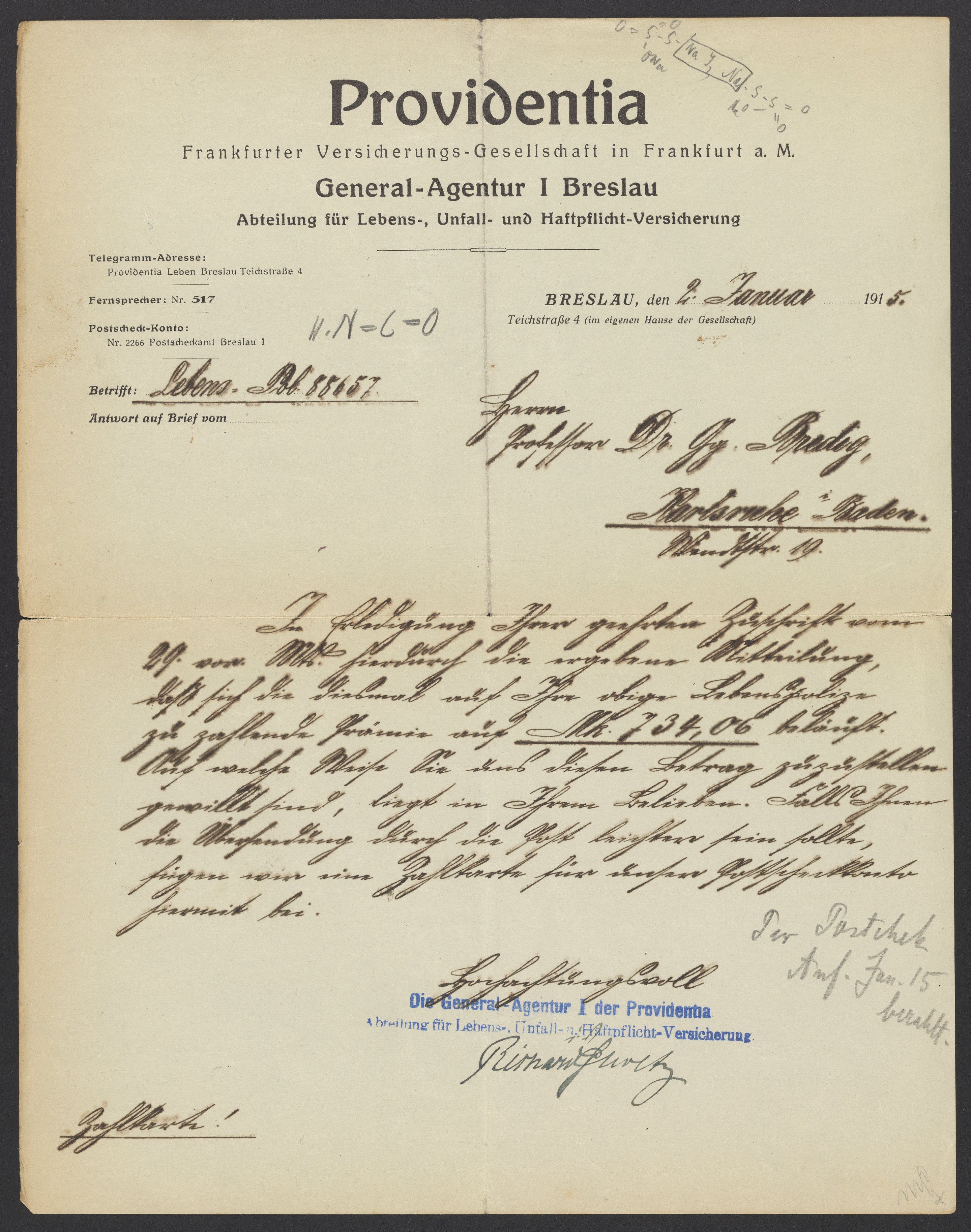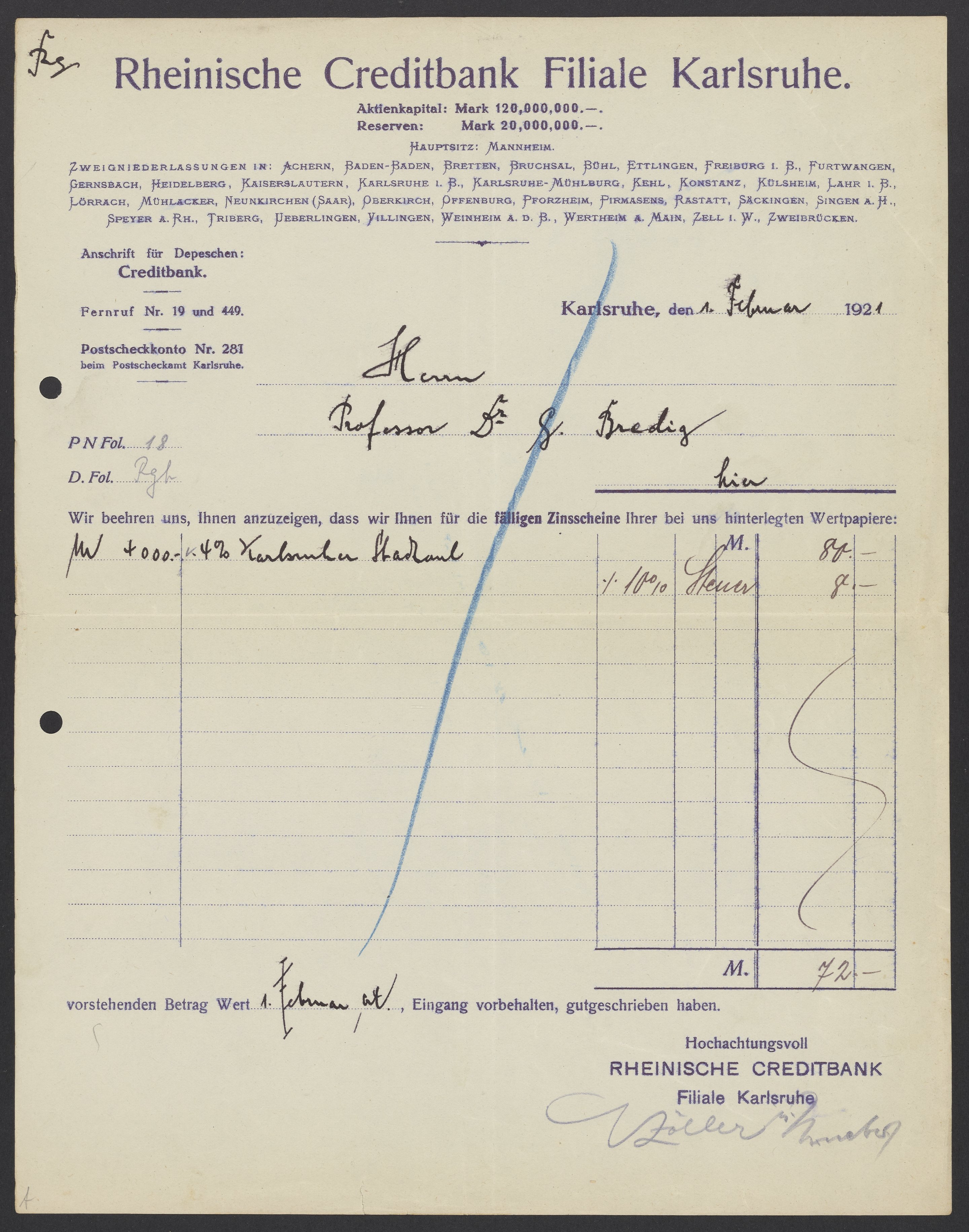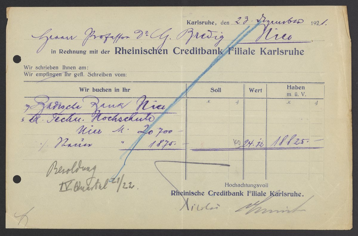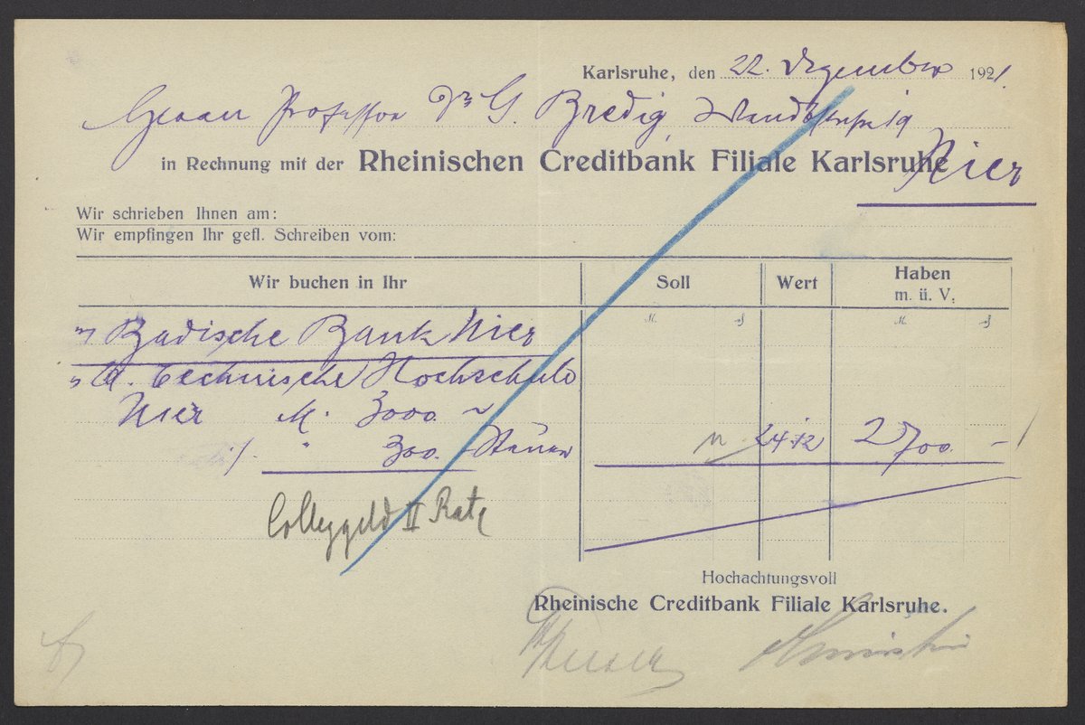 Bredig, Georg. “Bank Statements with Scientific Notes, 1912-1922,” 1912–1922. Papers of Georg and Max Bredig, Box 4, Folder 7. Science History Institute. Philadelphia. https://digital.sciencehistory.org/works/urdieg8.