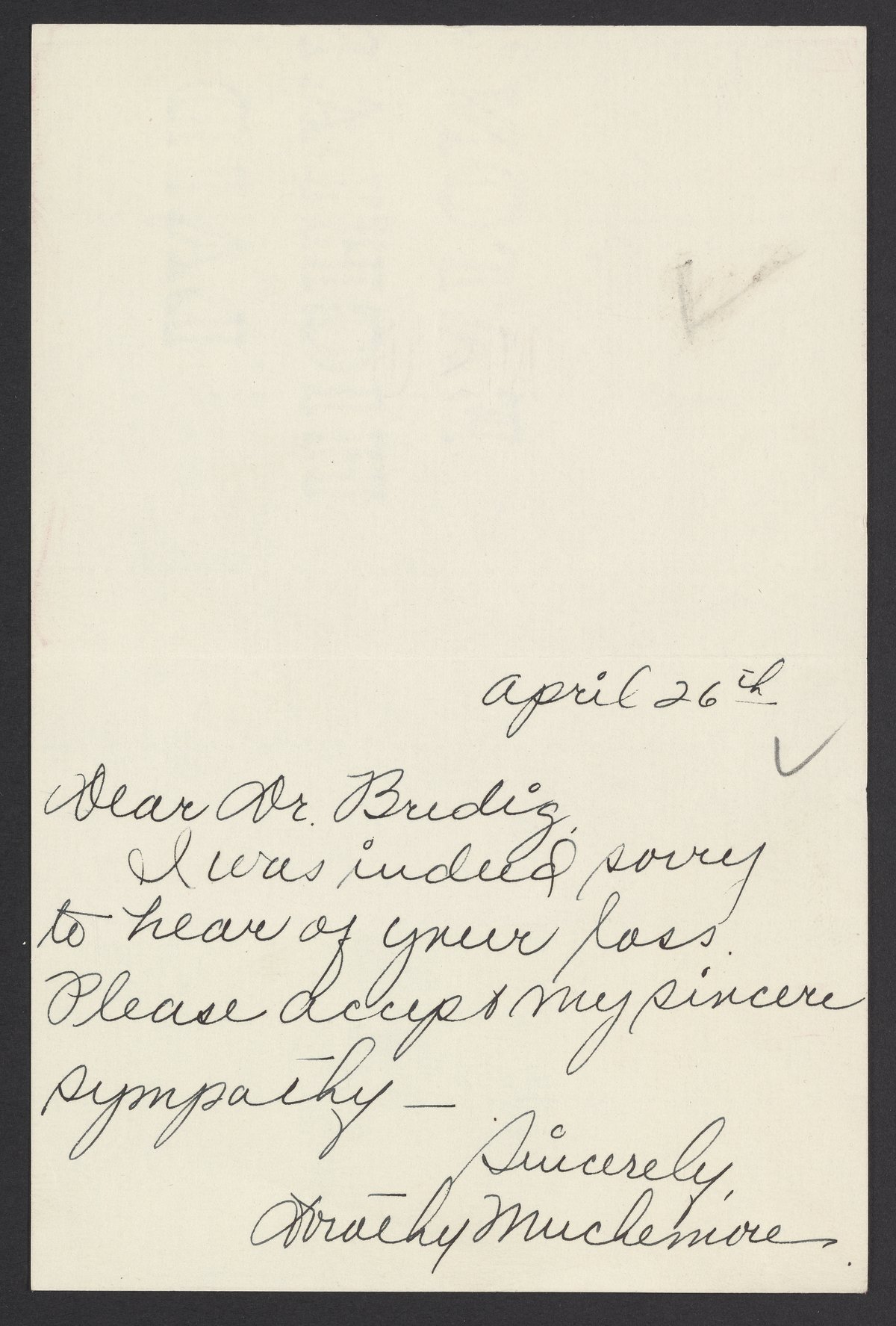 Letter of condolence to Max Bredig, April 26, 1944