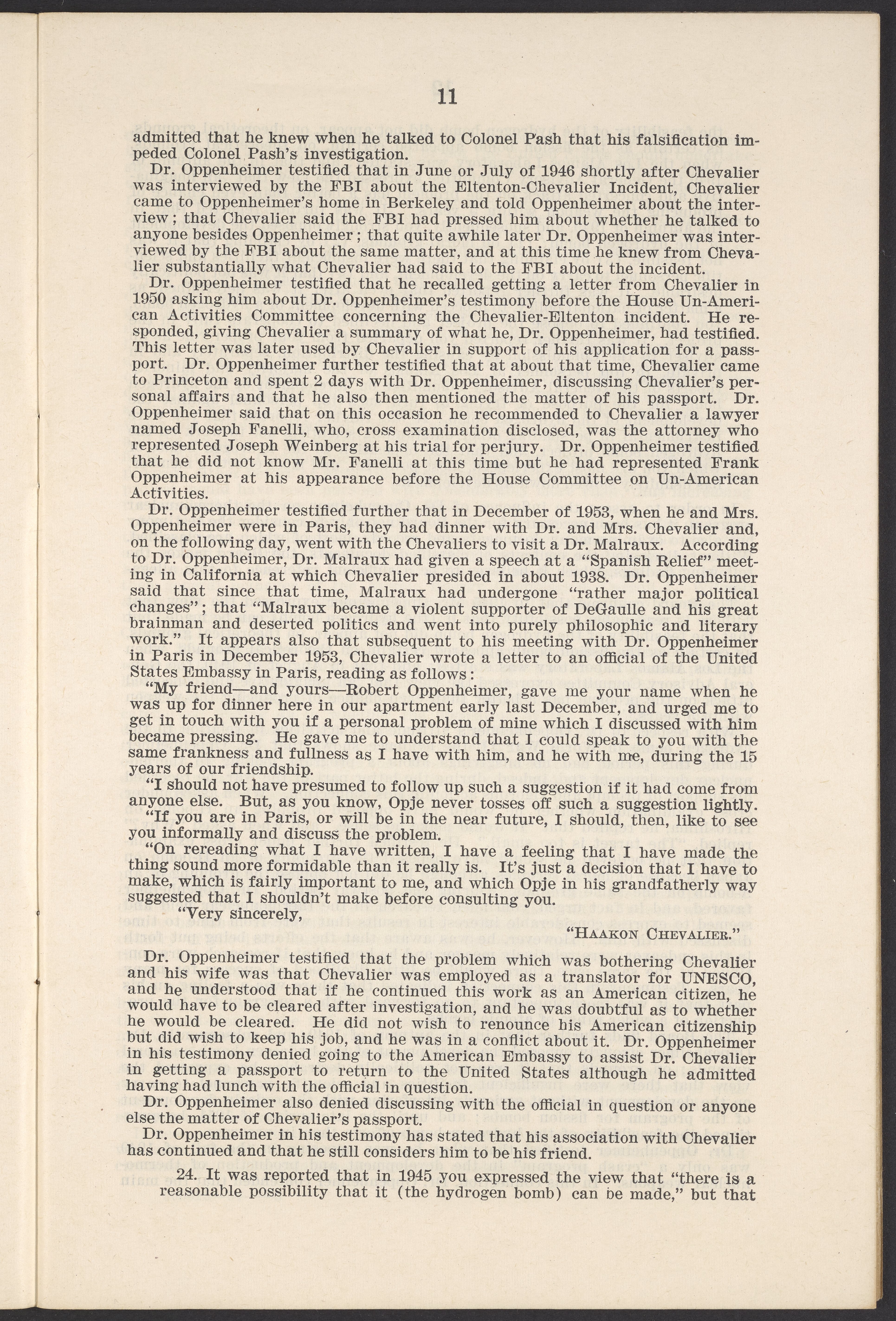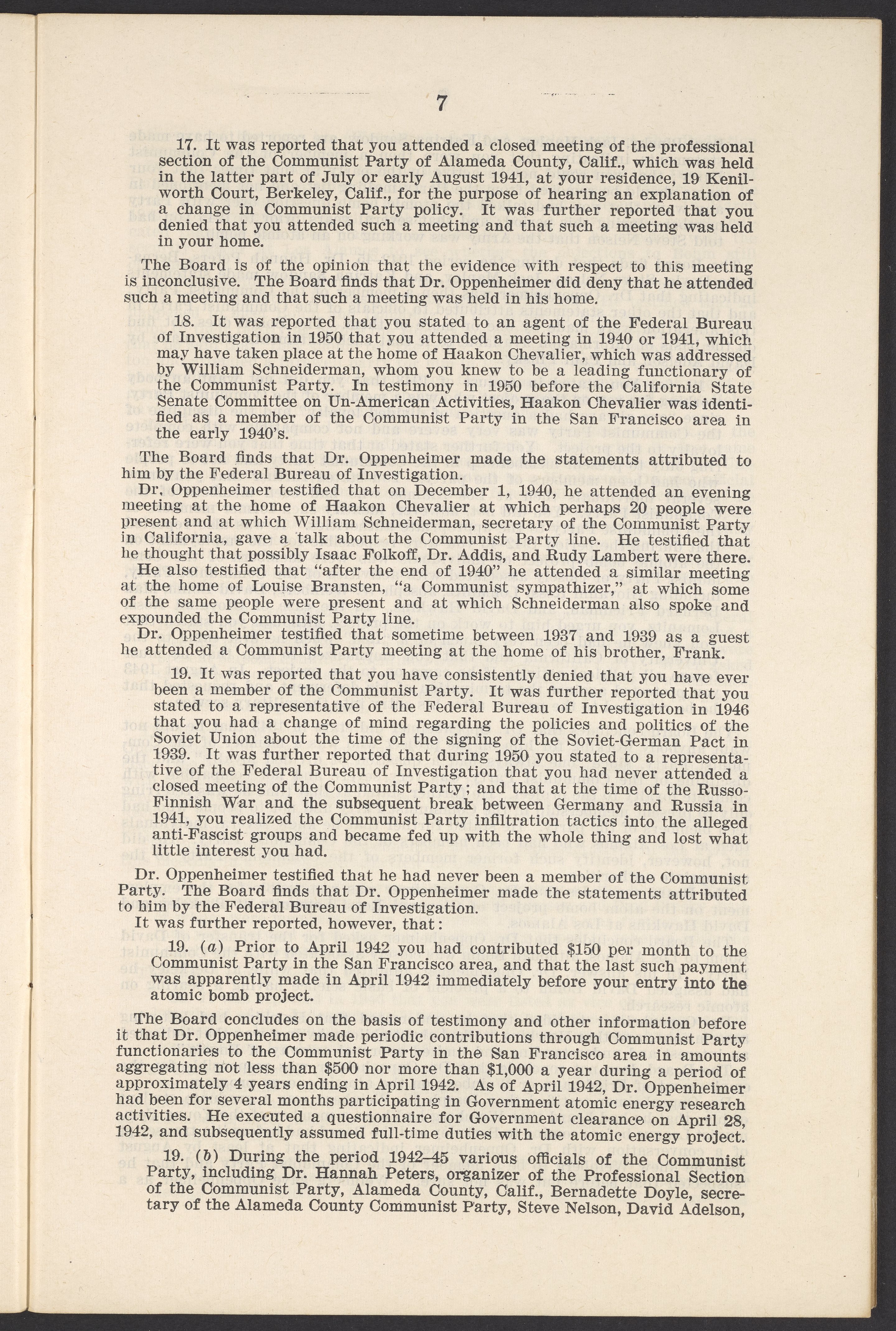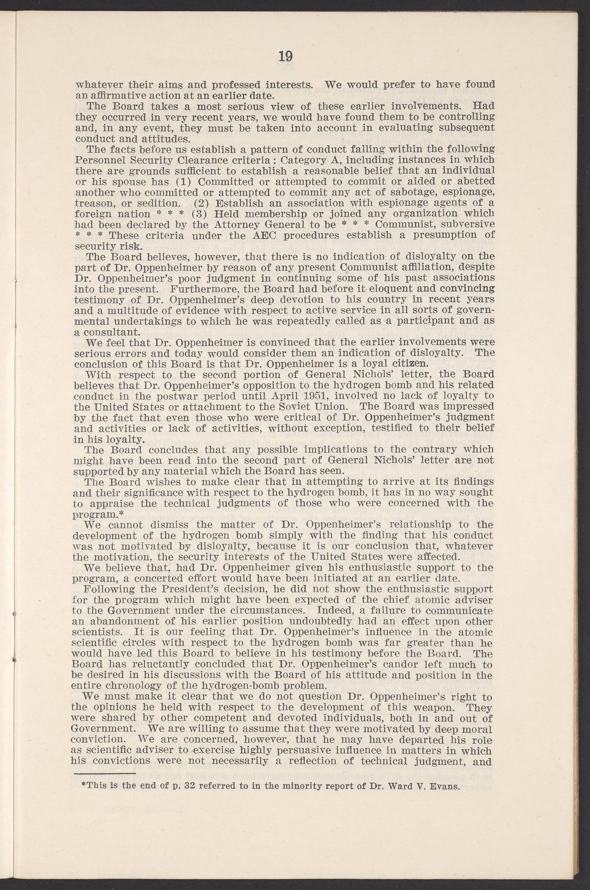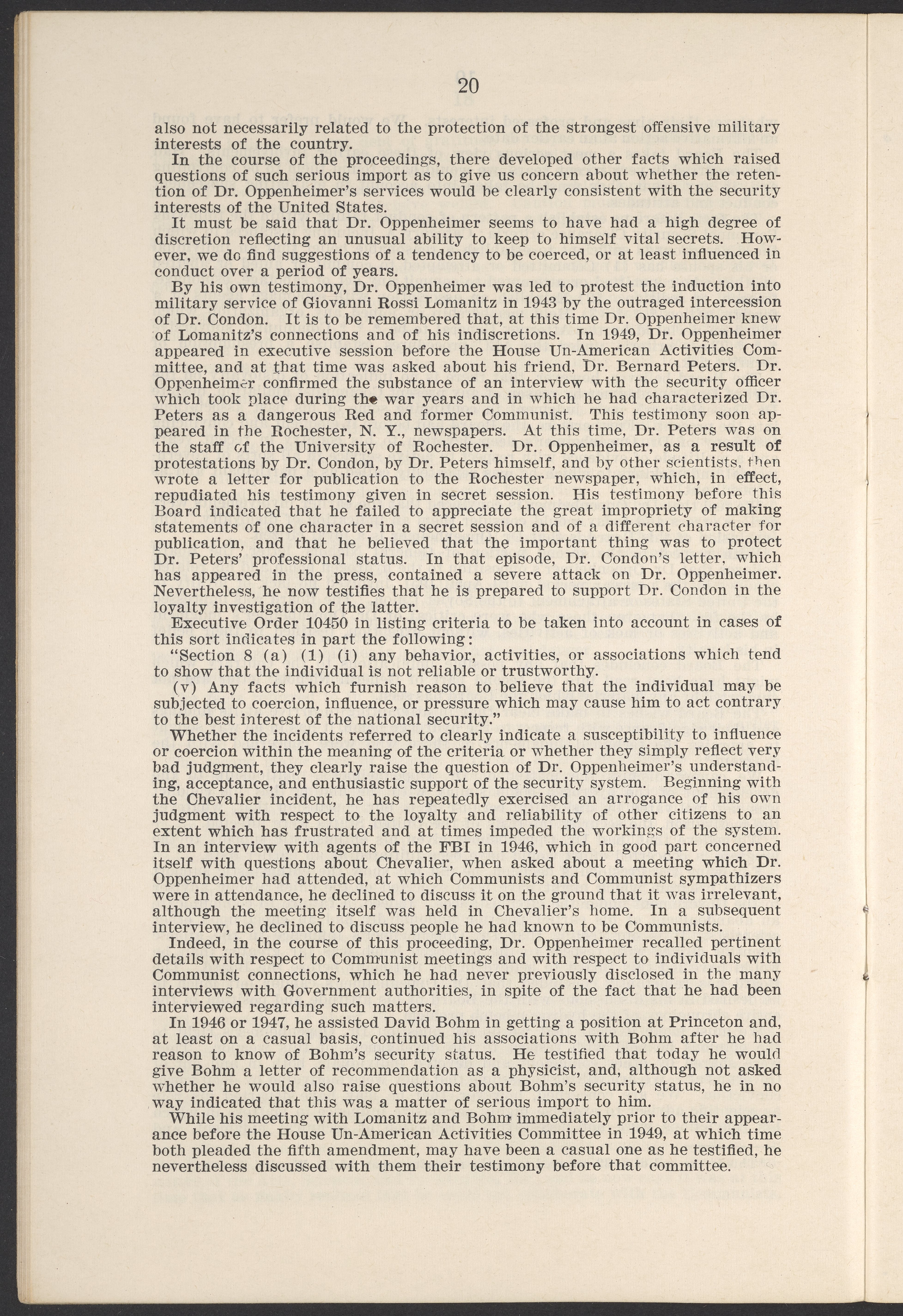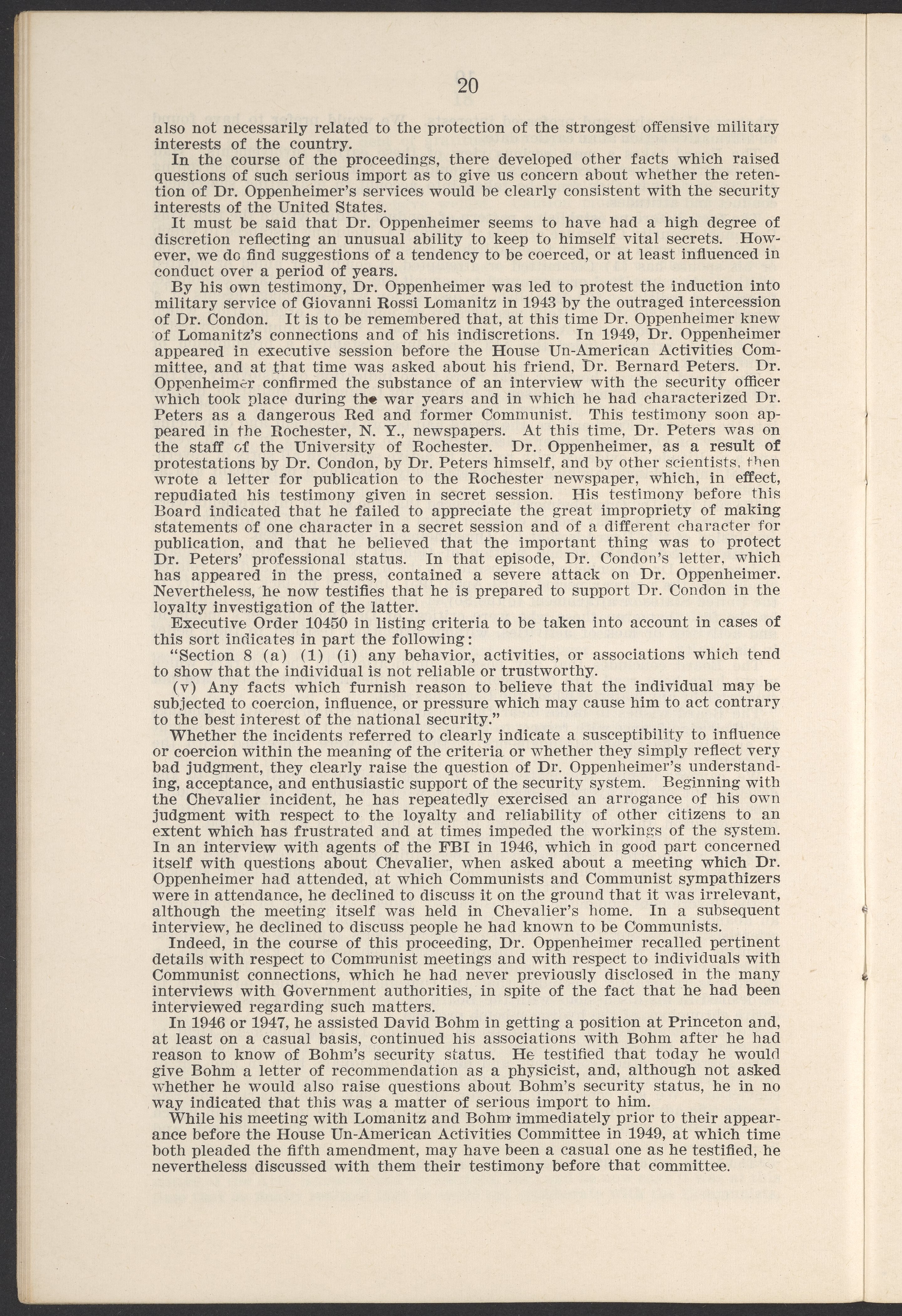 Small JPG1200 x 1811px — 385 KBLarge JPG2880 x 4347px — 2.6 MBFull-sized JPG3770 x 5690px — 4.4 MBOriginal fileTIFF — 3770 x 5690px — 61.4 MBThis booklet details the security clearance hearing of J. Robert Oppenheimer (1904-1967), a pivotal figure in the development of nuclear physics and the atomic bomb, conducted between April and May 1954. The documentation provides an overview of the hearing, including key letters, recommendations, and findings that led to the revocation of Oppenheimer's security clearance before its expiration. This decision stemmed from worries about his past affiliations and doubts over his trustworthiness despite his acknowledgement of his loyalty to the U.S.