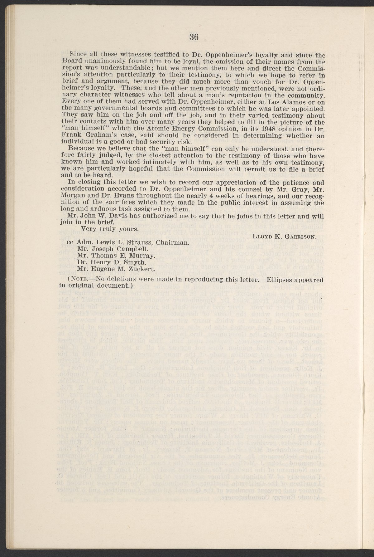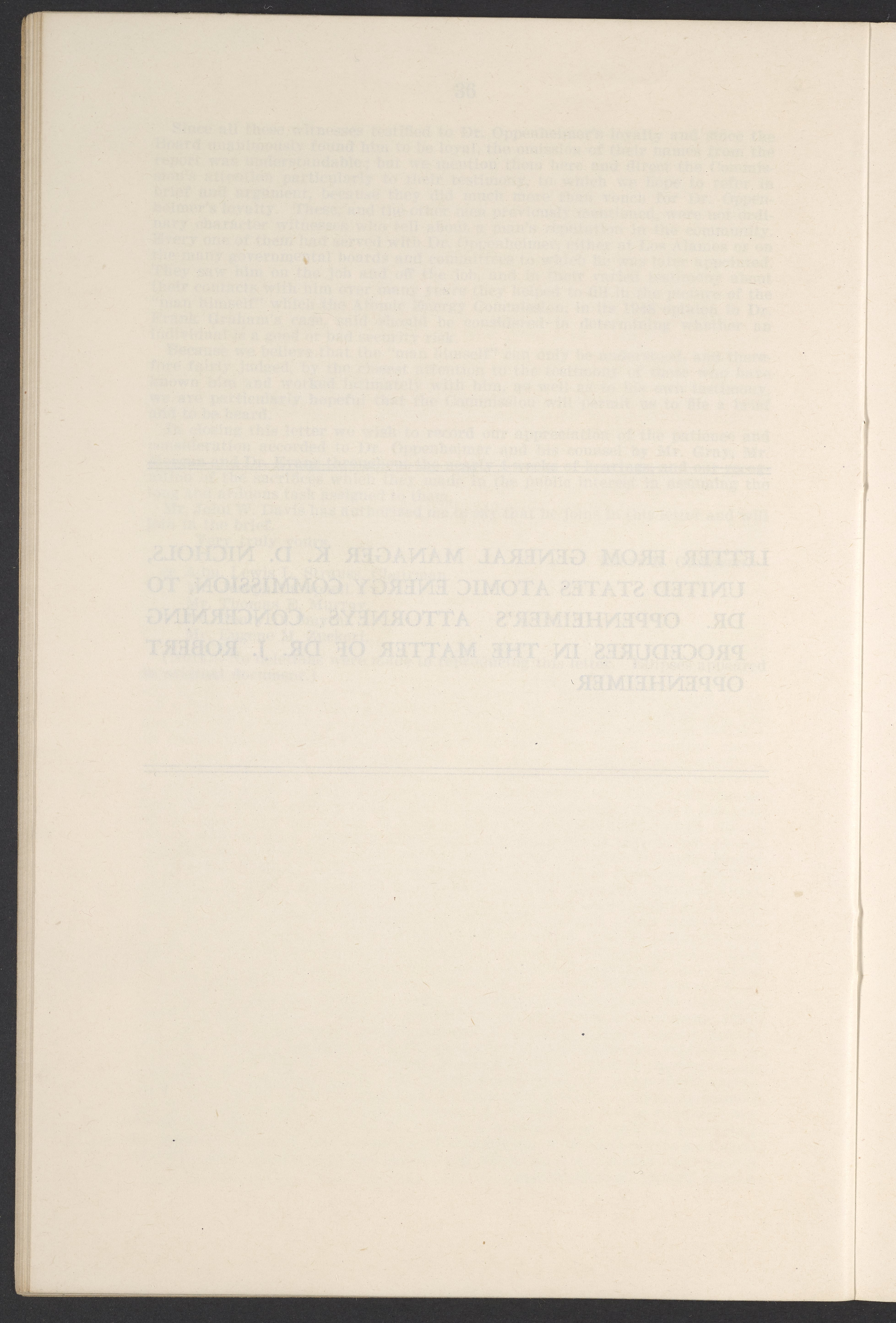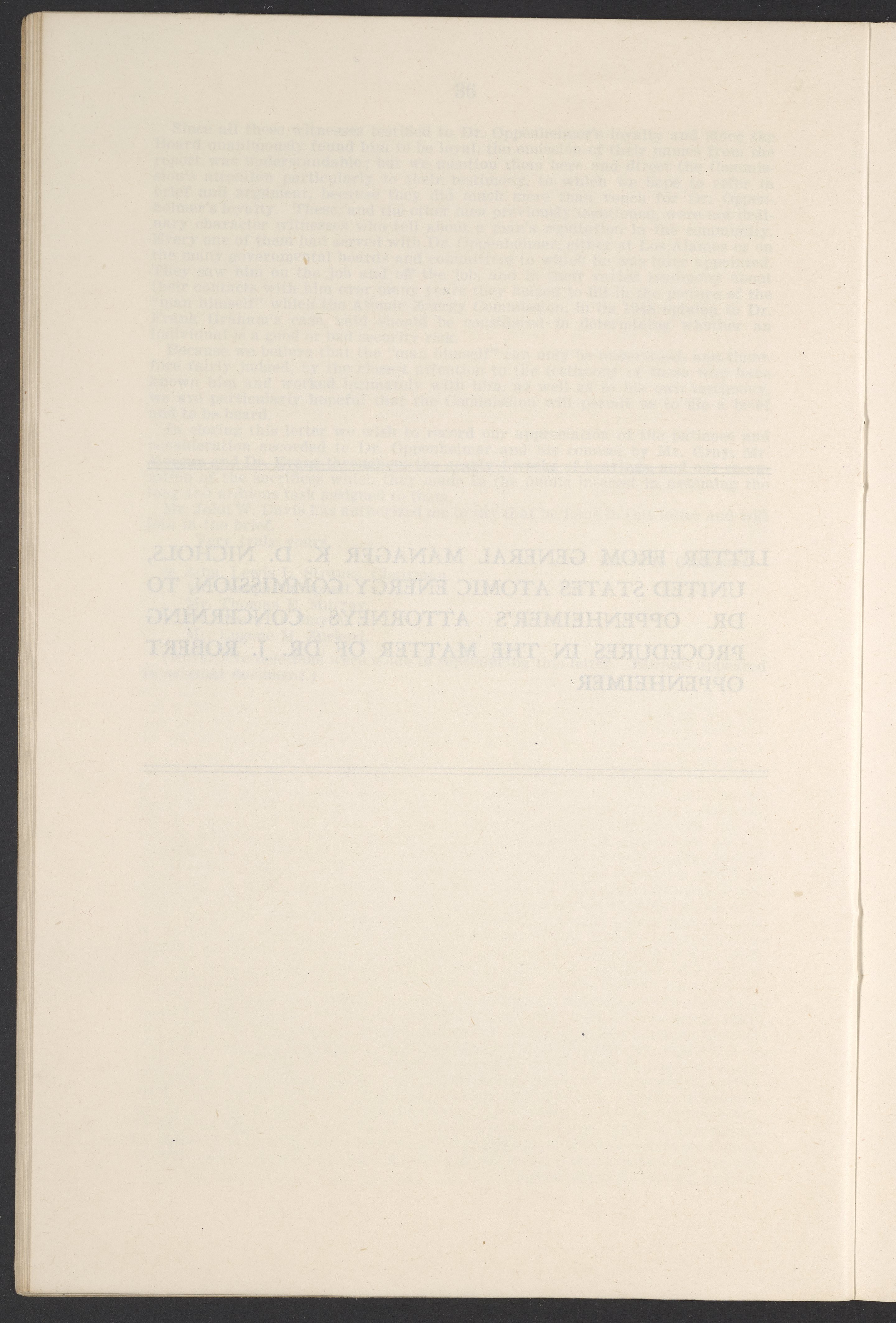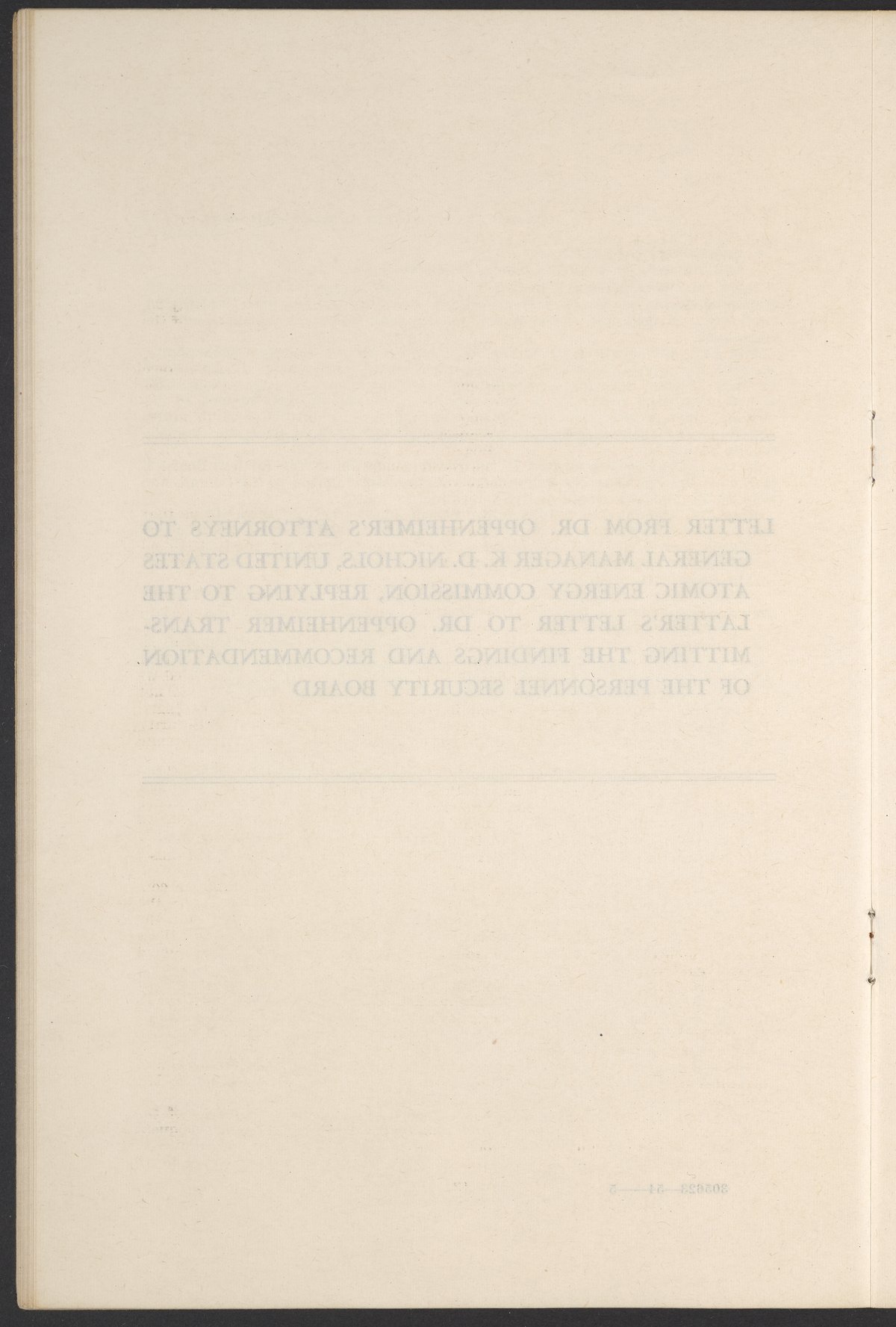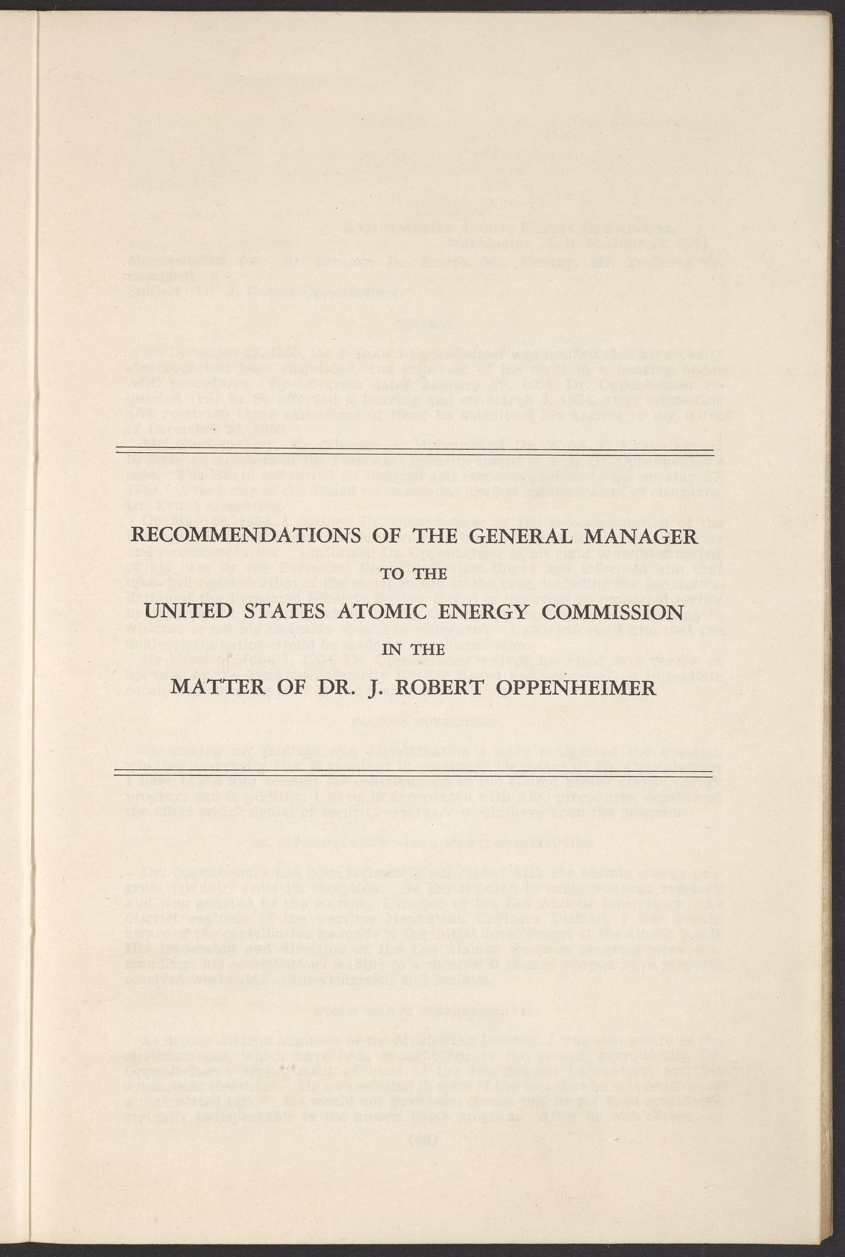 U.S. Atomic Energy Commission. “In the Matter of J. Robert Oppenheimer: Texts of Principal Documents and Letters of Personnel Security Board General Manager Commissioners.” Washington (D.C.): United States. Government Printing Office, 1954. Papers of Max Bredig, Box 8, Folder 42. Science History Institute. Philadelphia. https://digital.sciencehistory.org/works/uxuymyg.