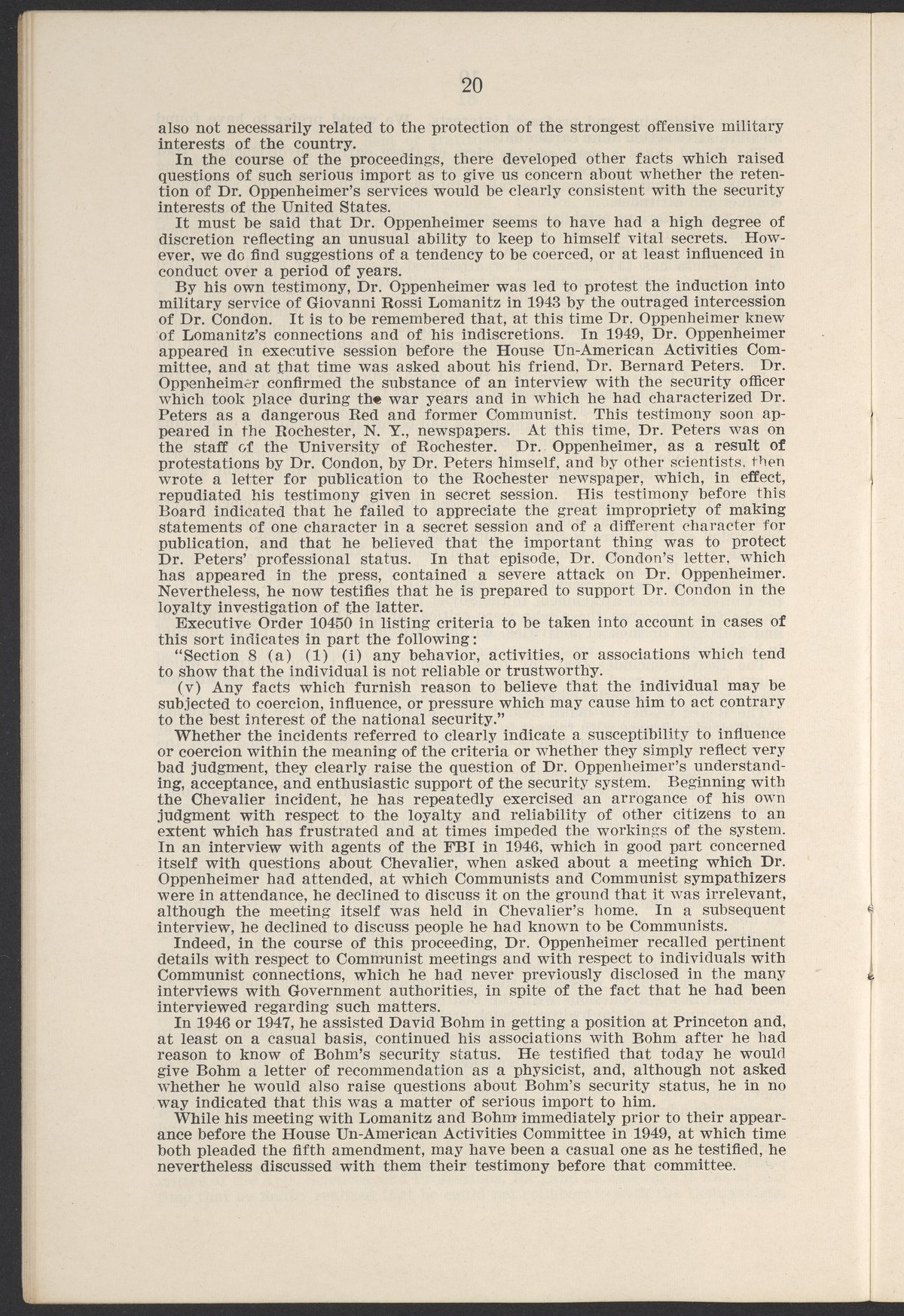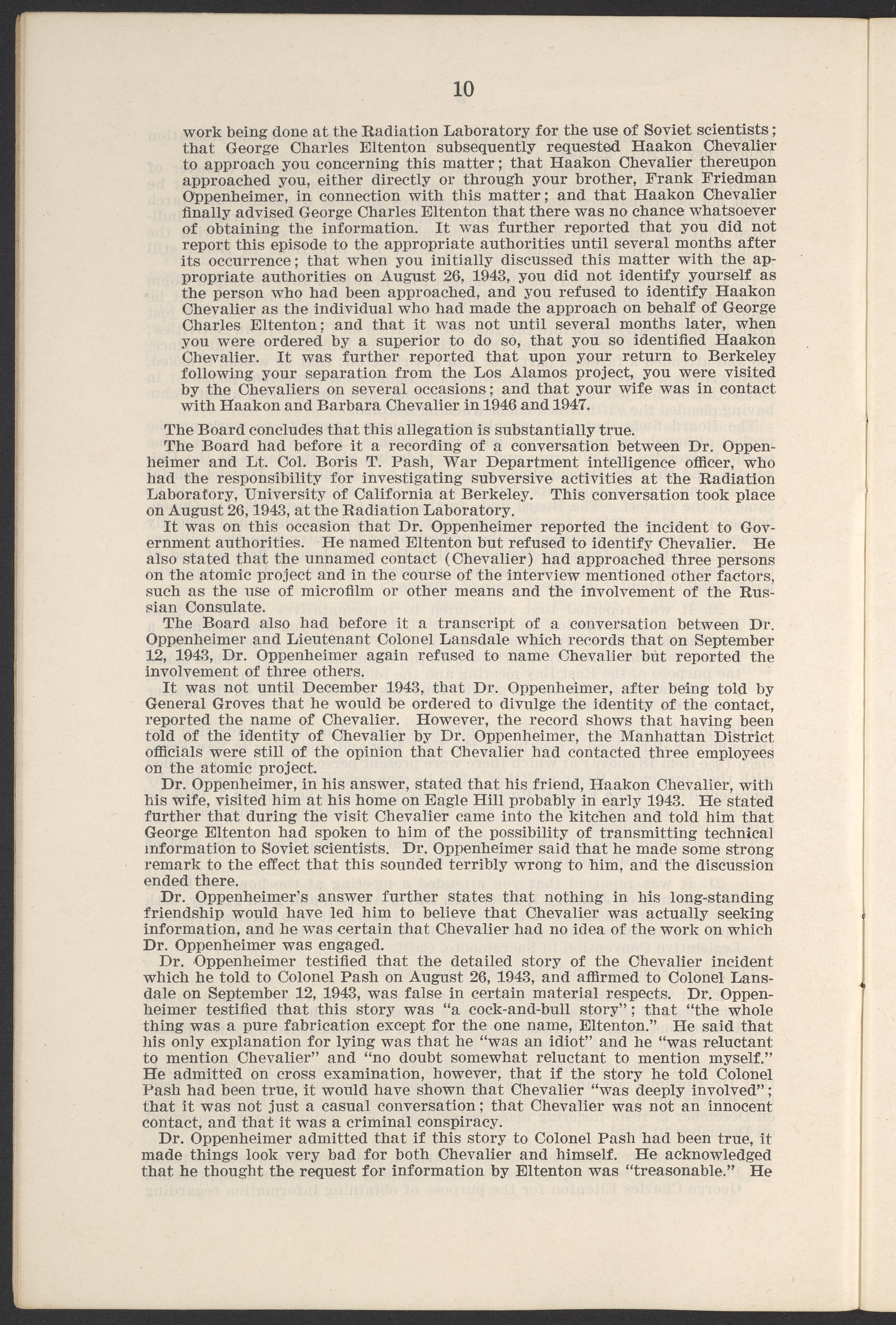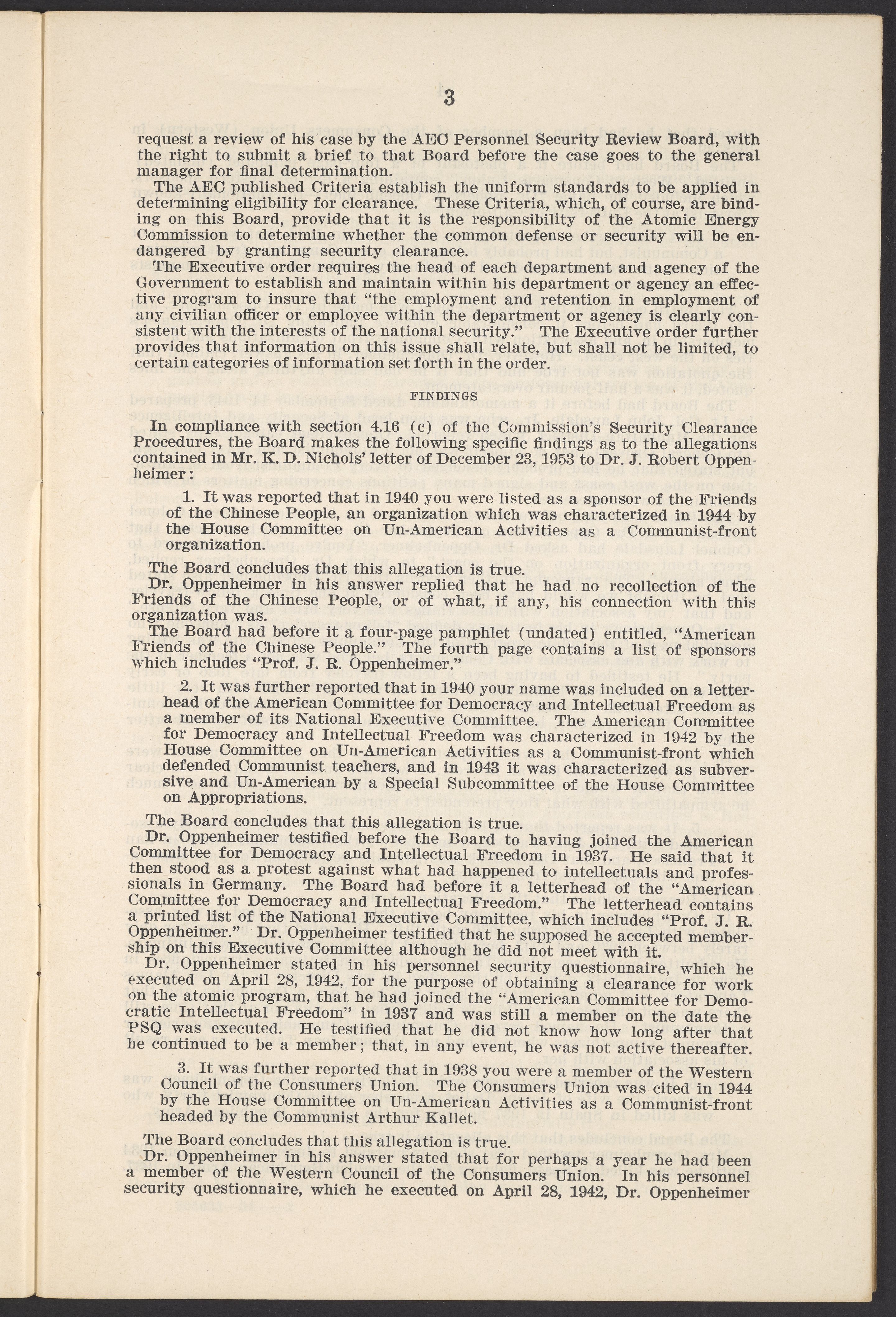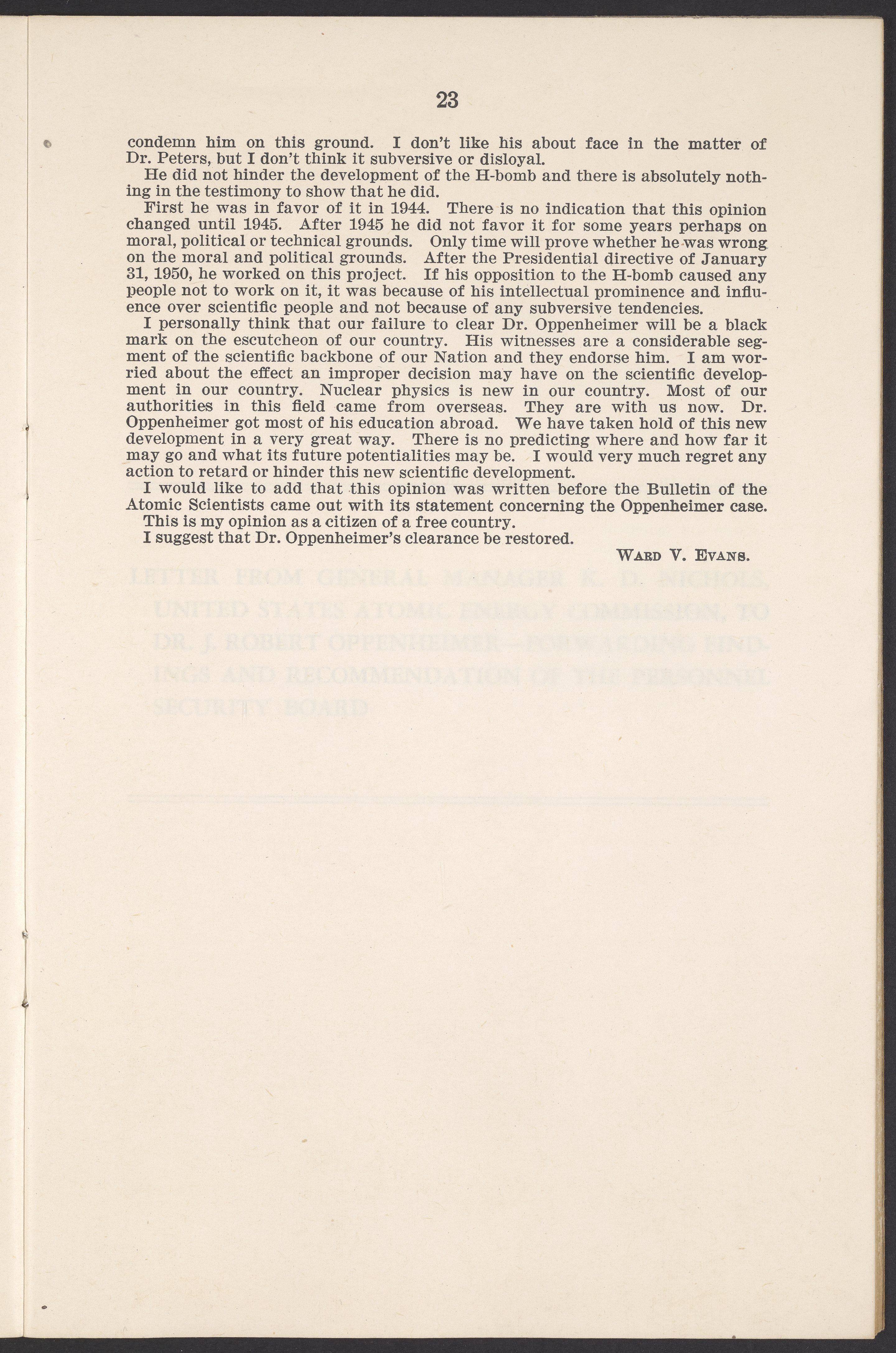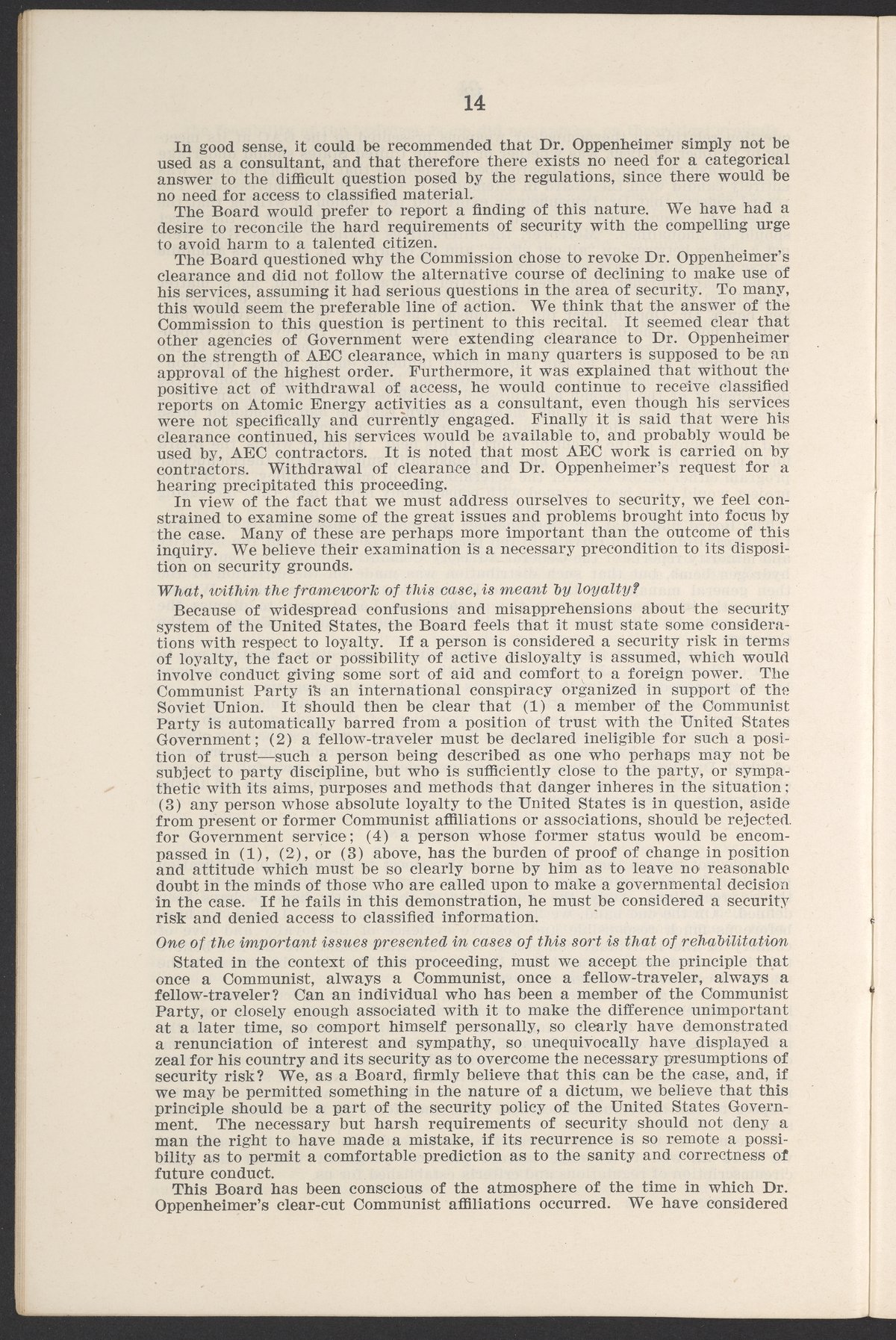 U.S. Atomic Energy Commission. “In the Matter of J. Robert Oppenheimer: Texts of Principal Documents and Letters of Personnel Security Board General Manager Commissioners.” Washington (D.C.): United States. Government Printing Office, 1954. Papers of Max Bredig, Box 8, Folder 42. Science History Institute. Philadelphia. https://digital.sciencehistory.org/works/uxuymyg.