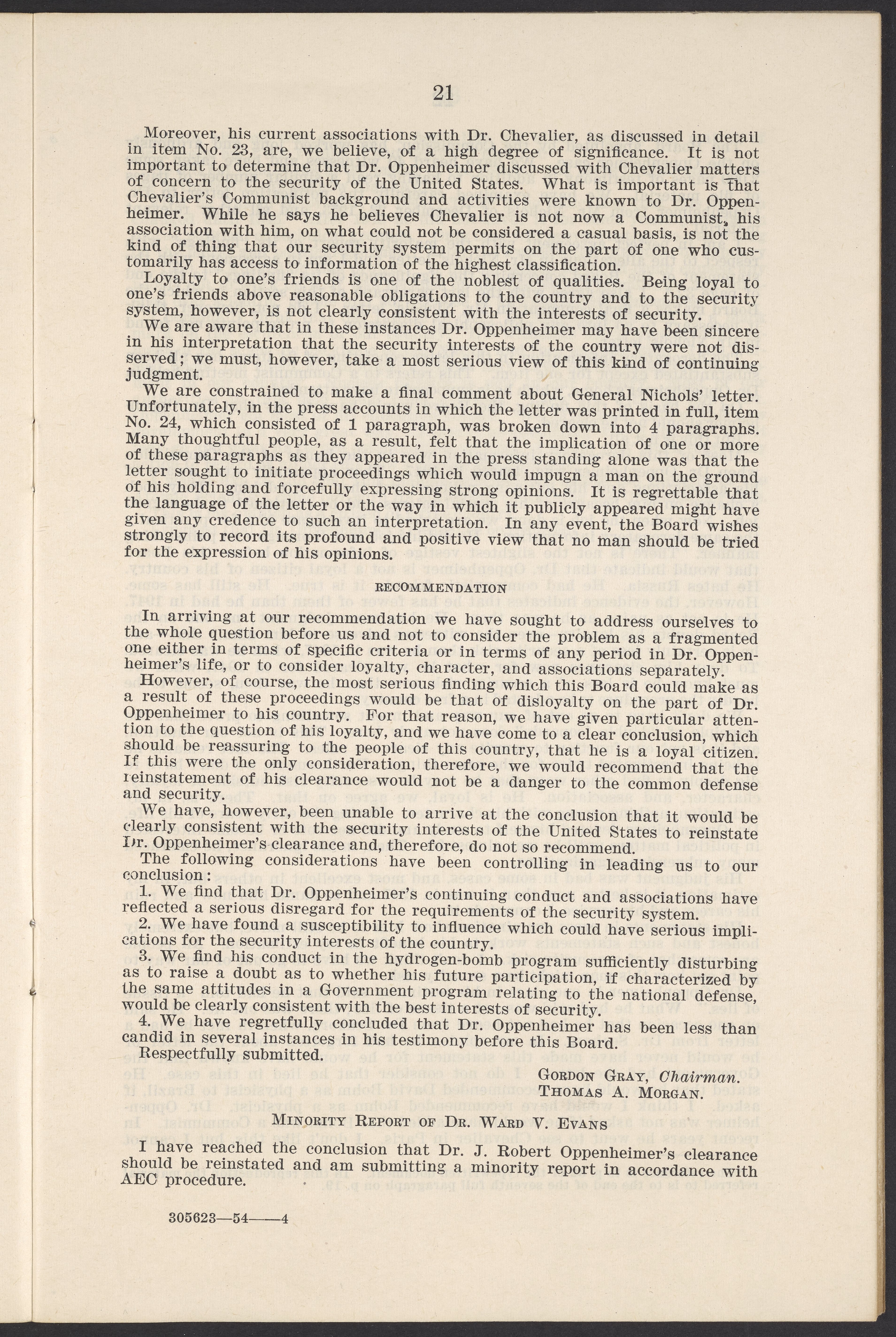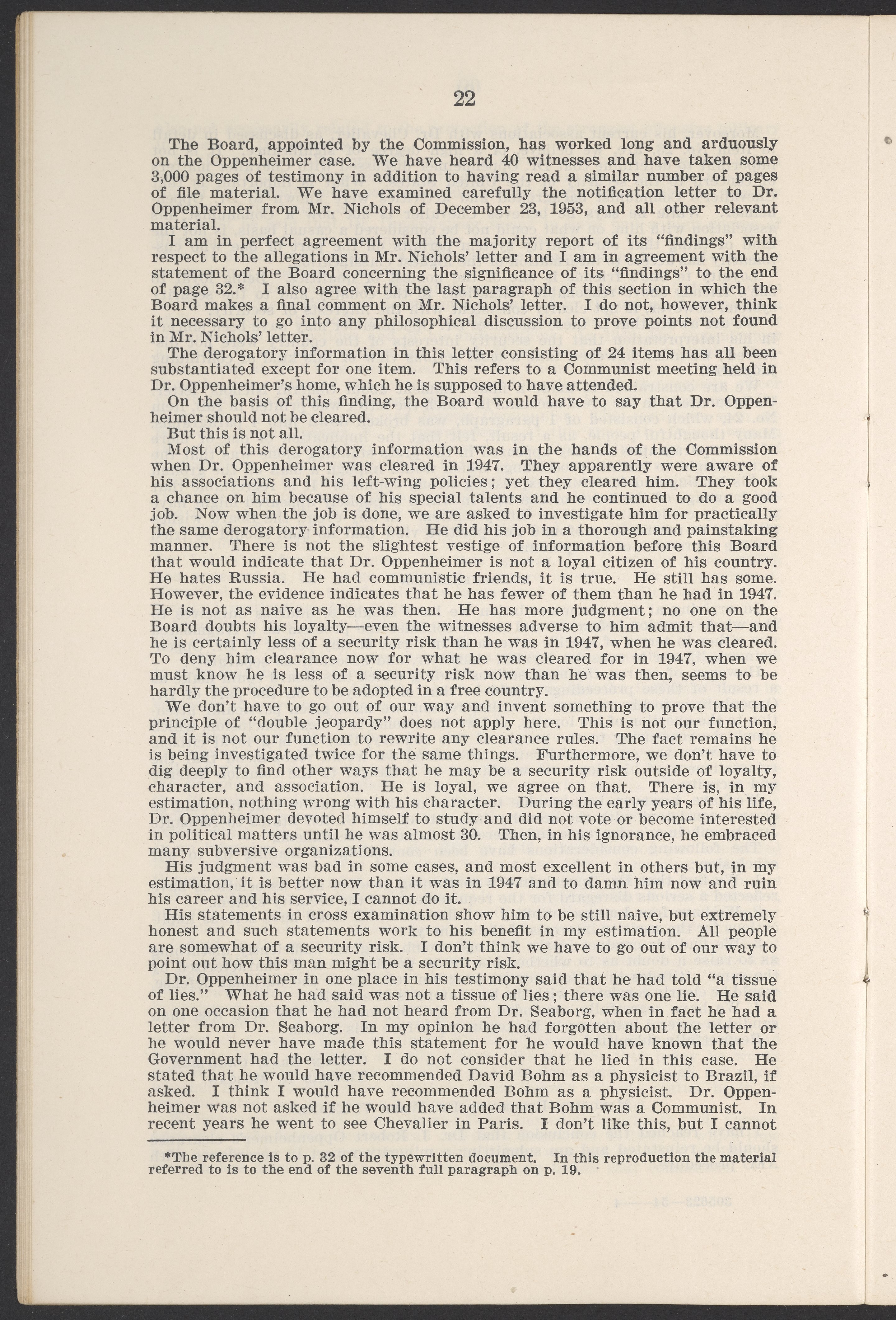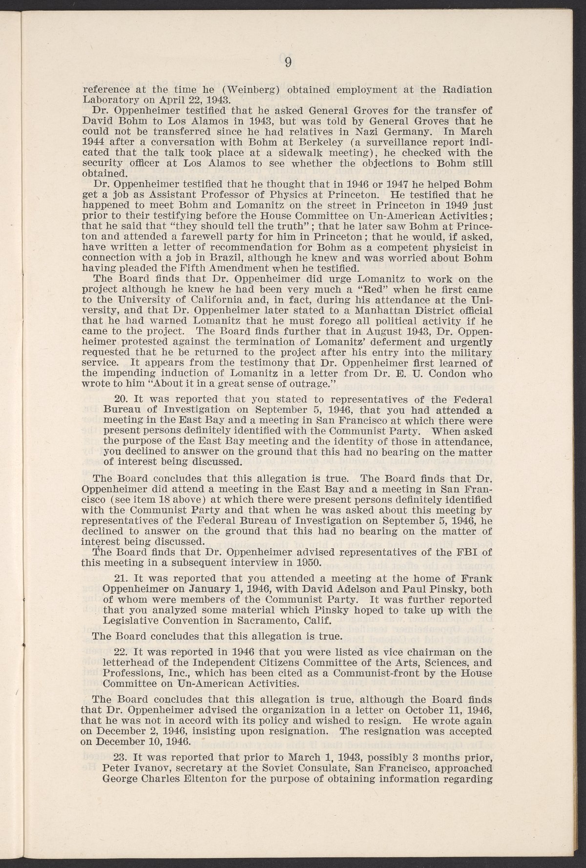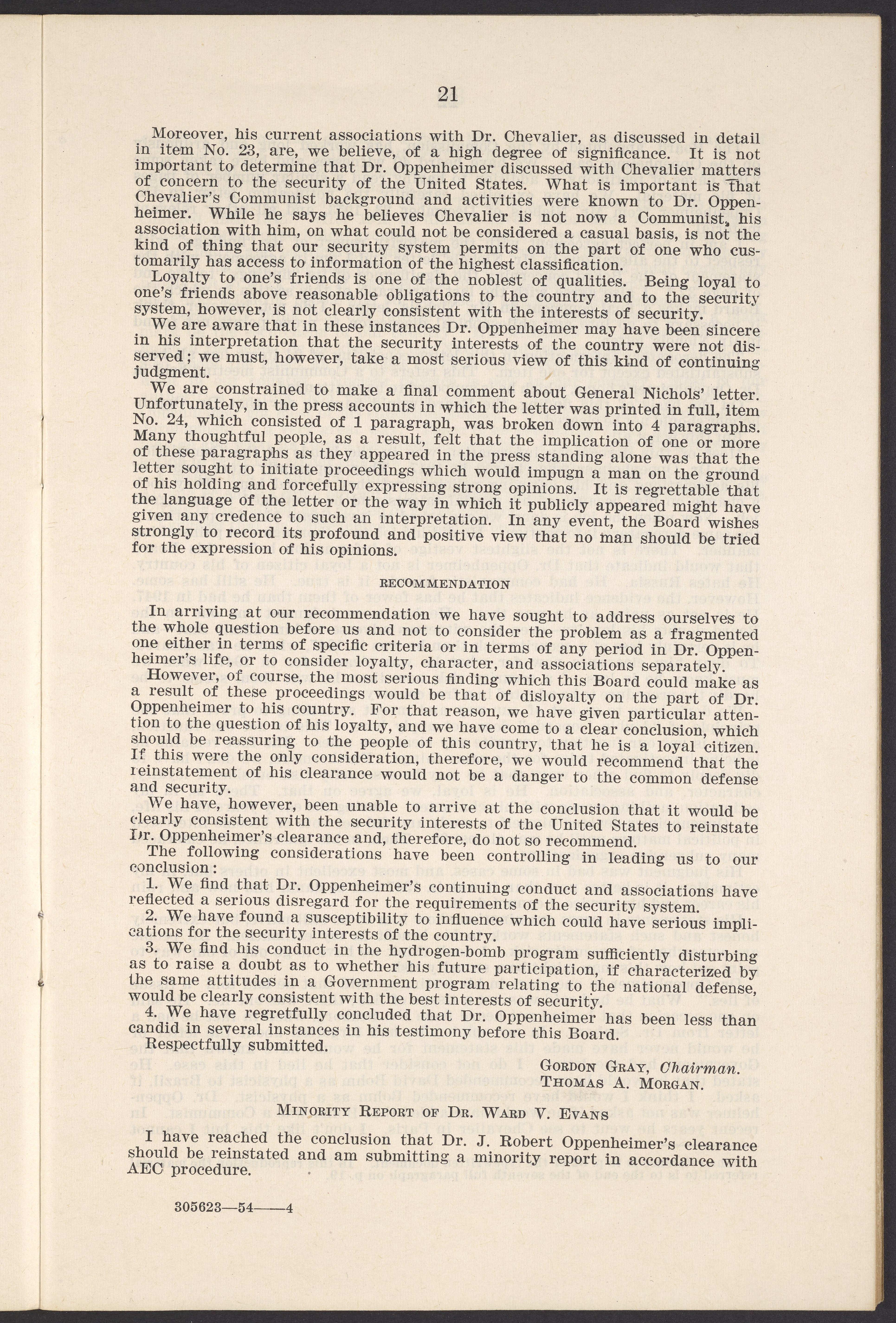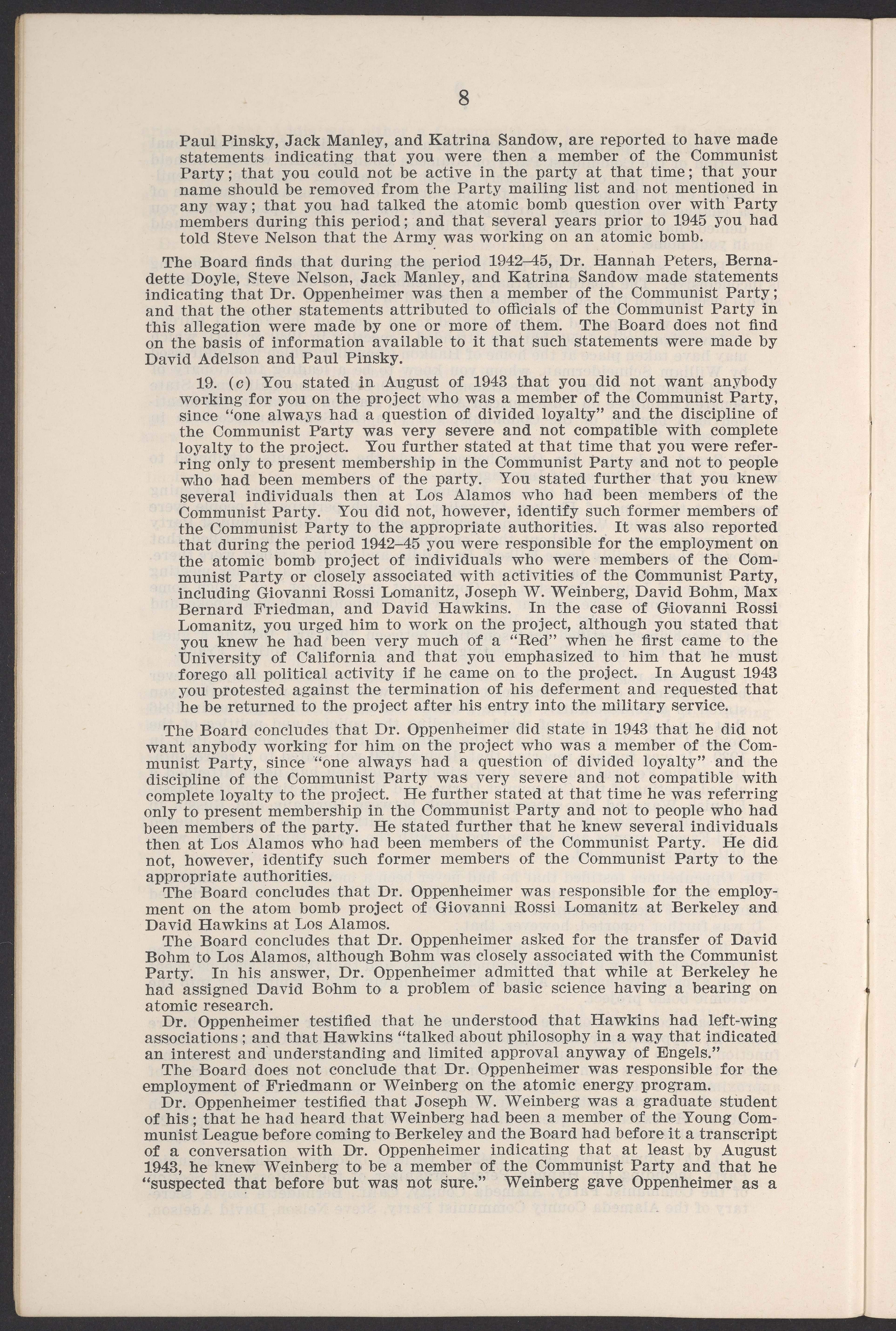 U.S. Atomic Energy Commission. “In the Matter of J. Robert Oppenheimer: Texts of Principal Documents and Letters of Personnel Security Board General Manager Commissioners.” Washington (D.C.): United States. Government Printing Office, 1954. Papers of Max Bredig, Box 8, Folder 42. Science History Institute. Philadelphia. https://digital.sciencehistory.org/works/uxuymyg.