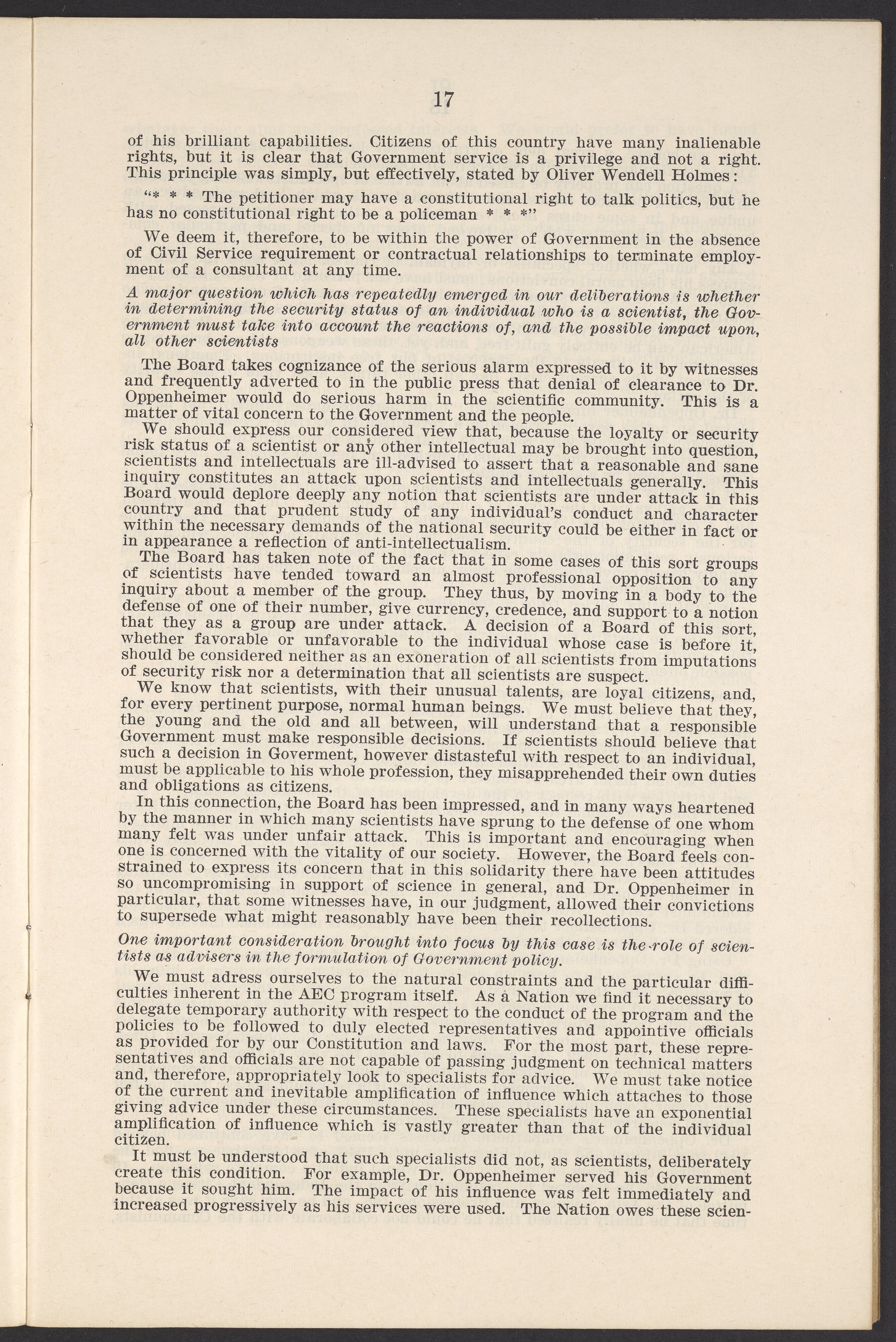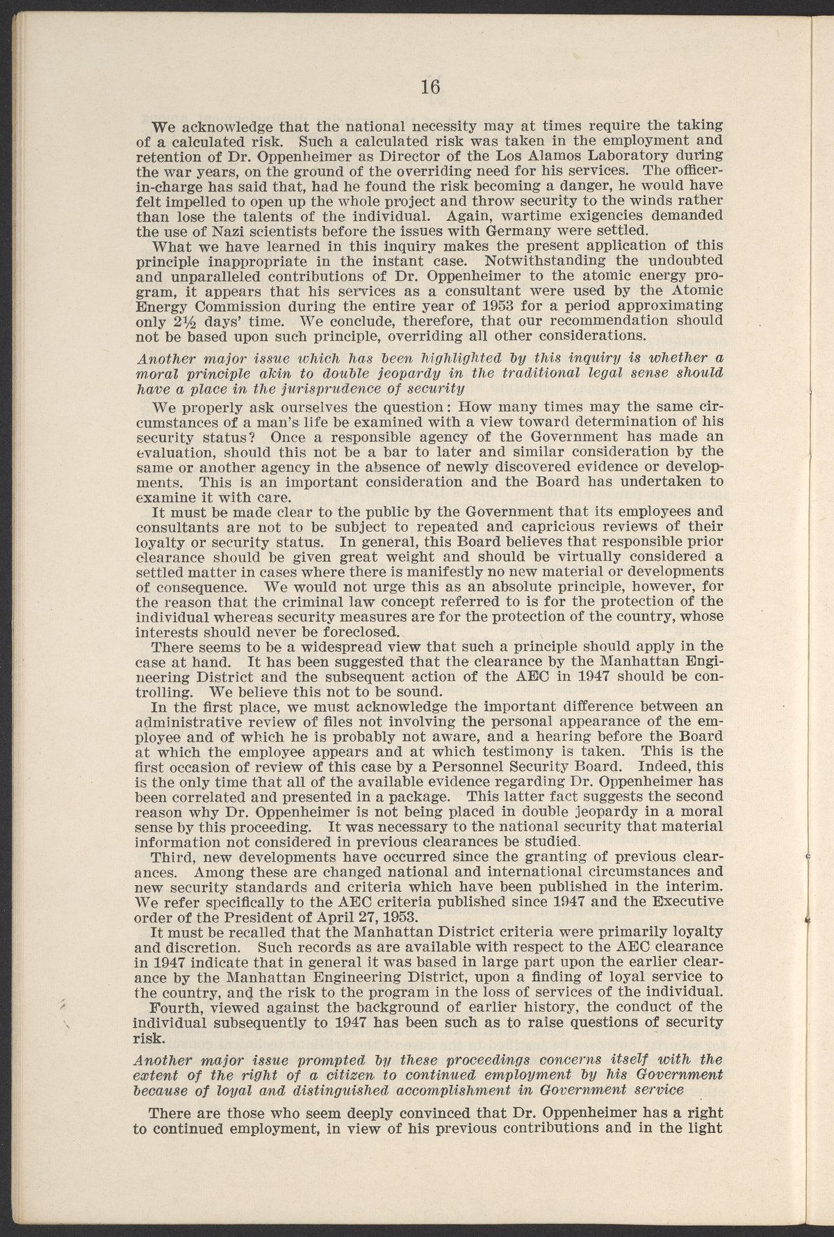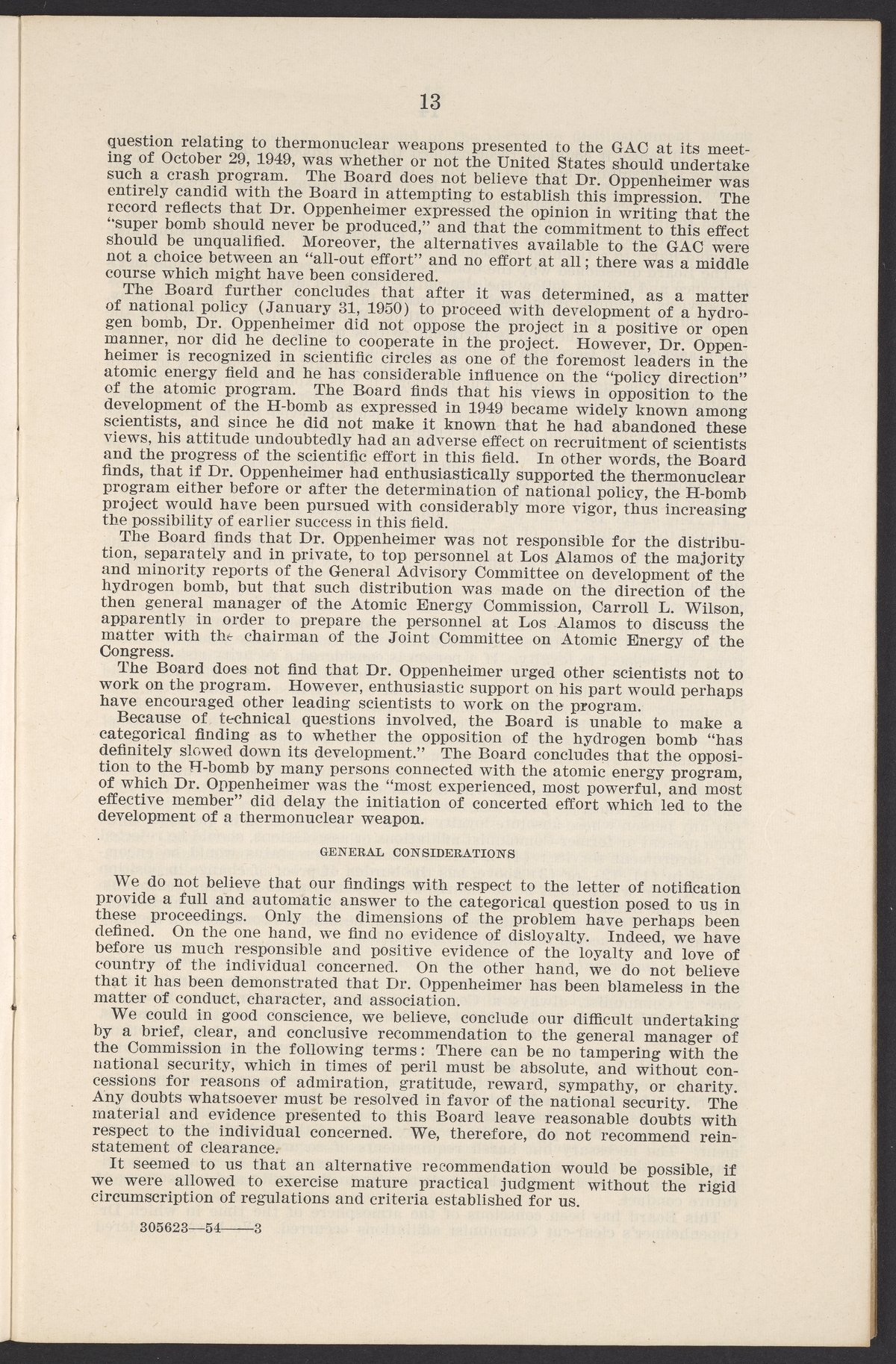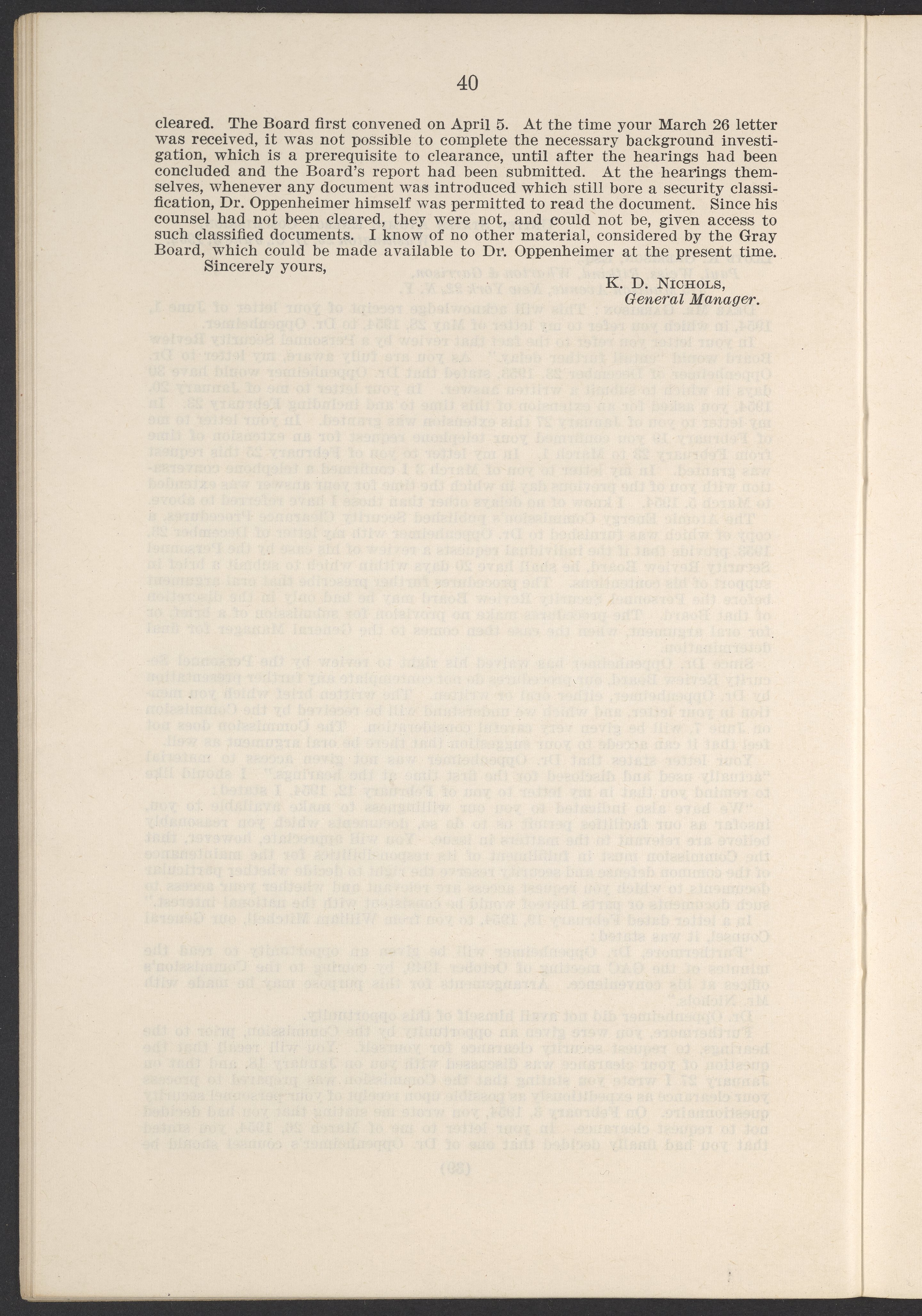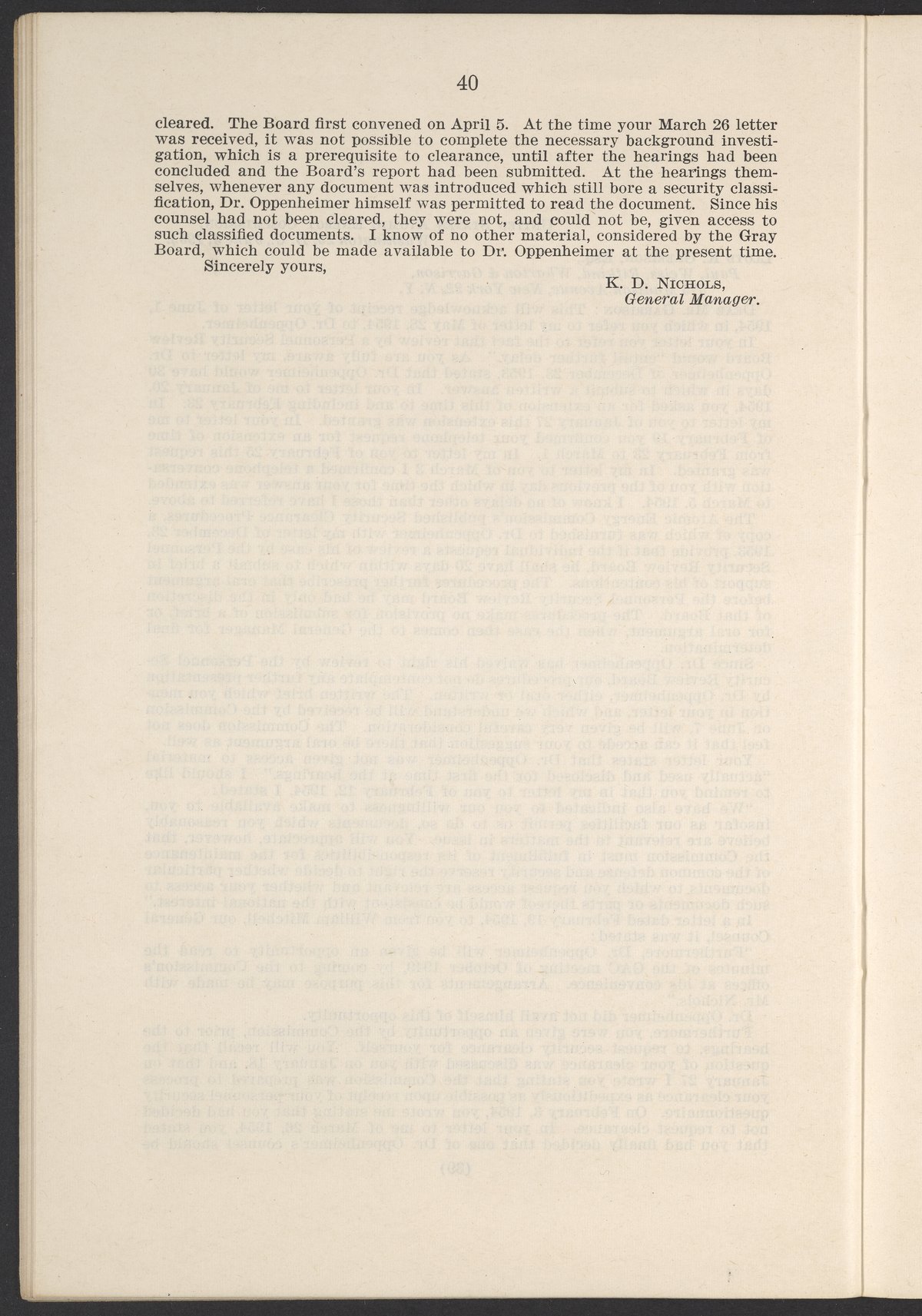In the Matter of J. Robert Oppenheimer: Texts of Principal Documents and Letters of Personnel Security Board General Manager Commissioners