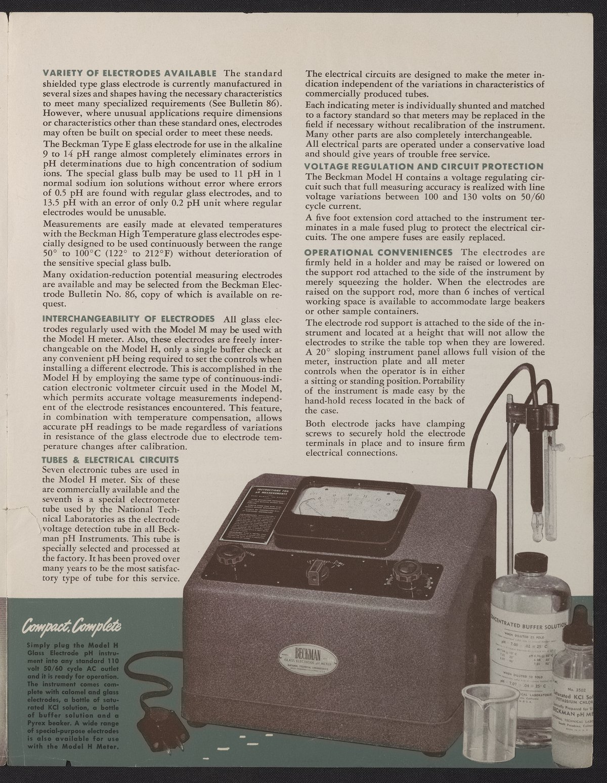Beckman Instruments, Inc. “Beckman Model H Glass Electrode PH Meter,” circa 1950. Beckman Historical Collection, Box 19, Folder 20. Science History Institute. Philadelphia. https://digital.sciencehistory.org/works/v118rf01w.