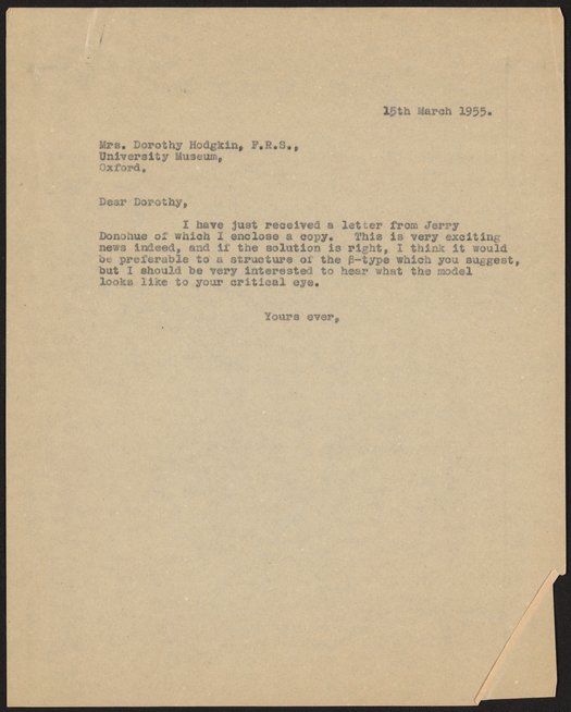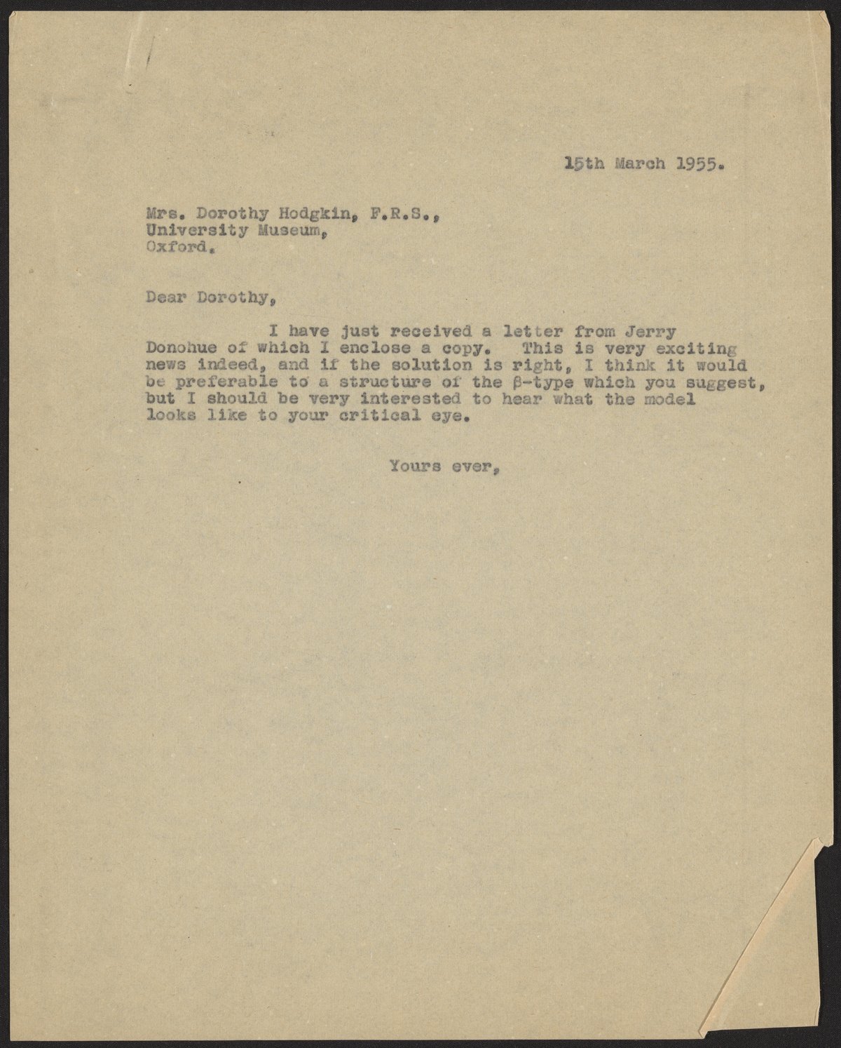 Letter from Max Perutz to Dorothy Hodgkin, March 15, 1955