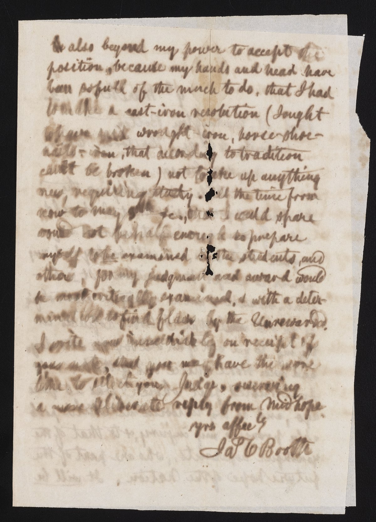 Small JPG1200 x 1679px — 319 KBLarge JPG2880 x 4031px — 1.7 MBFull-sized JPG3364 x 4708px — 2.3 MBOriginal fileTIFF — 3364 x 4708px — 45.4 MBJames Curtis Booth (1810-1888) writes to Henry Carrington Bolton (1843-1903) an American chemist, professor of science at Trinity College, and Booth's relative. Booth declines Bolton's invitation to serve as a judge in a student essay contest.