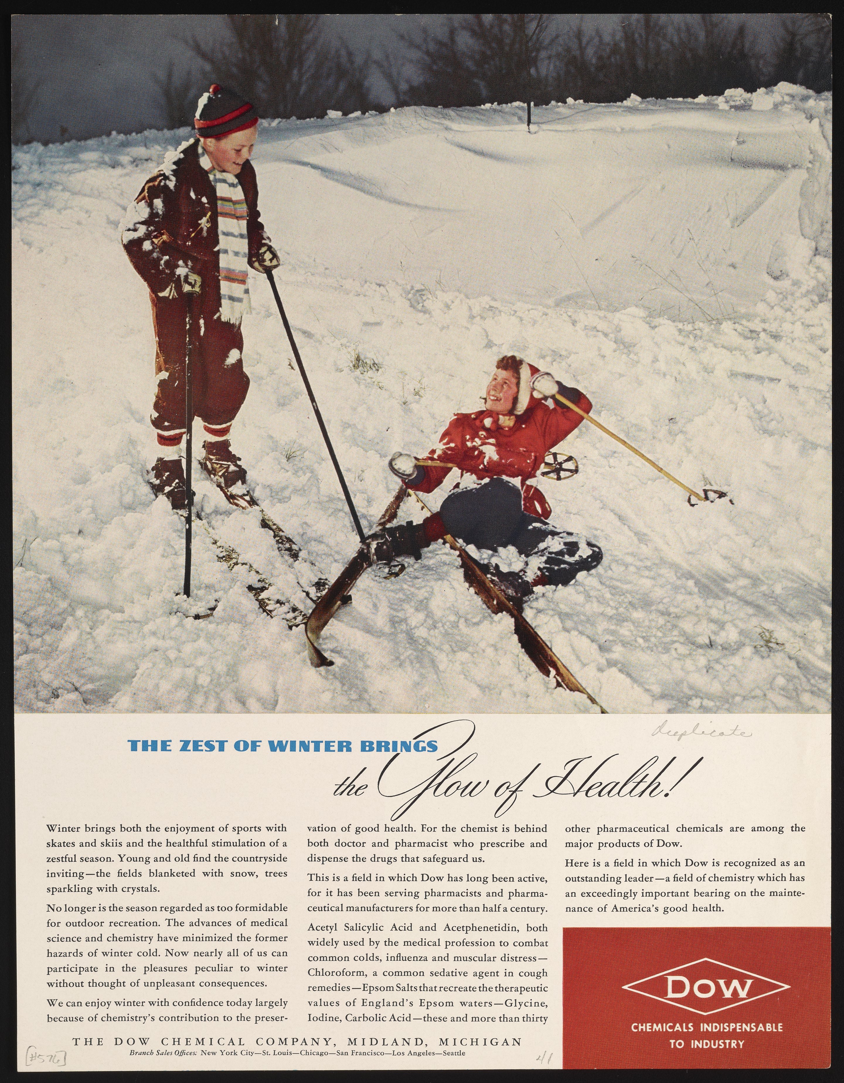 Dow Chemical Company. “The Zest of Winter Brings the Glow of Health!,” 1941. Advertisements from the Dow Chemical Historical Collection, Box 9. Science History Institute. Philadelphia. https://digital.sciencehistory.org/works/v3yky77.