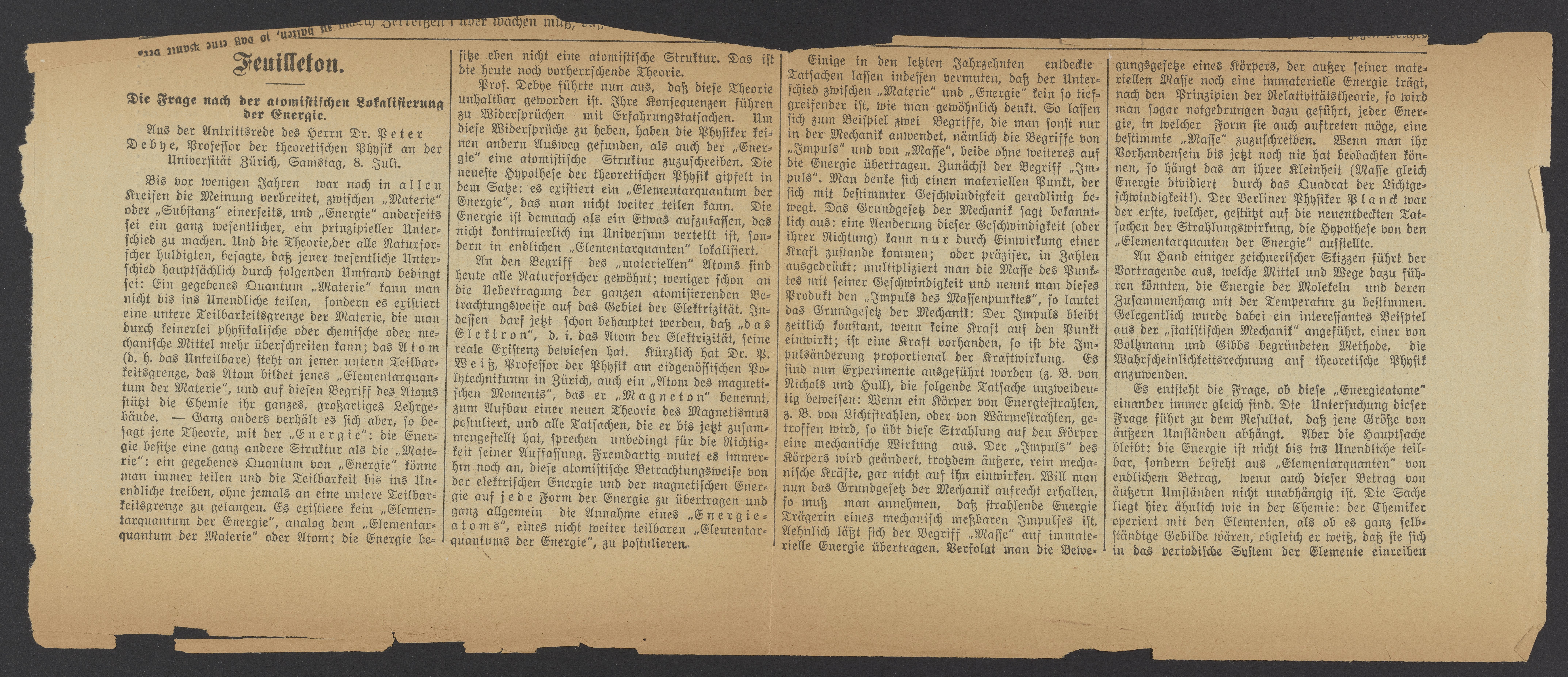 Die Frage der atomistischen Lokalisierung der Energie