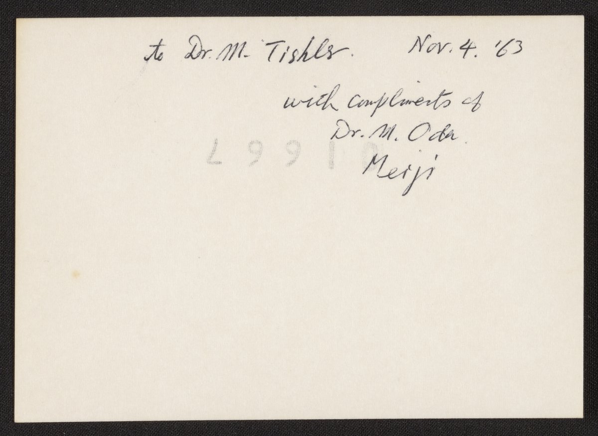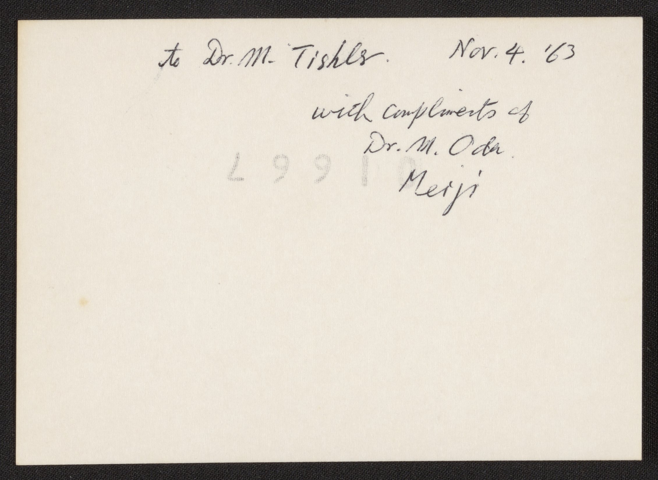 “Max Tishler and Dr. M. Oda,” November 4, 1963. Max Tishler Papers, Box 7, Folder 36. Science History Institute. Philadelphia. https://digital.sciencehistory.org/works/vasp75d.