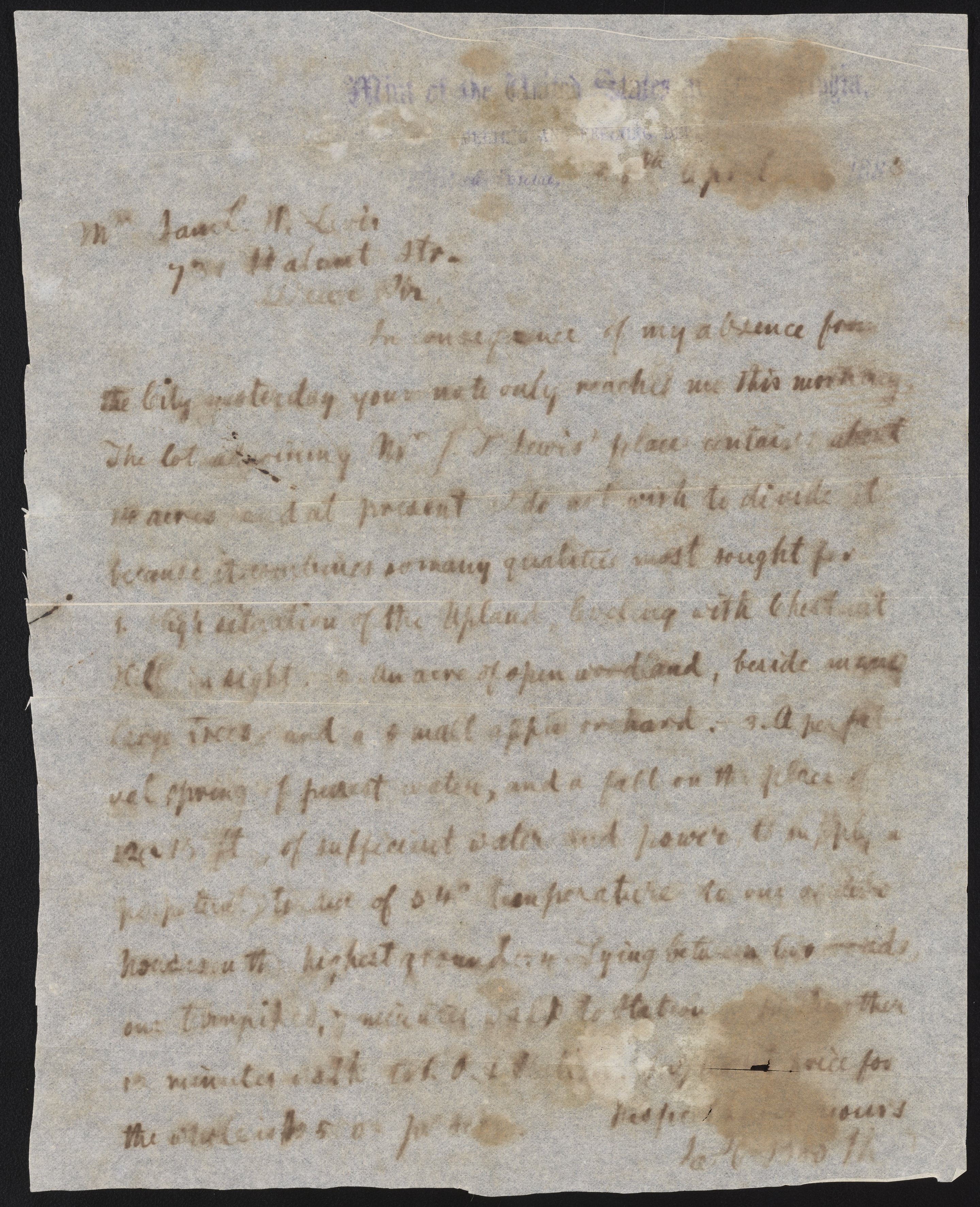 Letter from James Curtis Booth to Samuel W. Levis, April 8, 1883