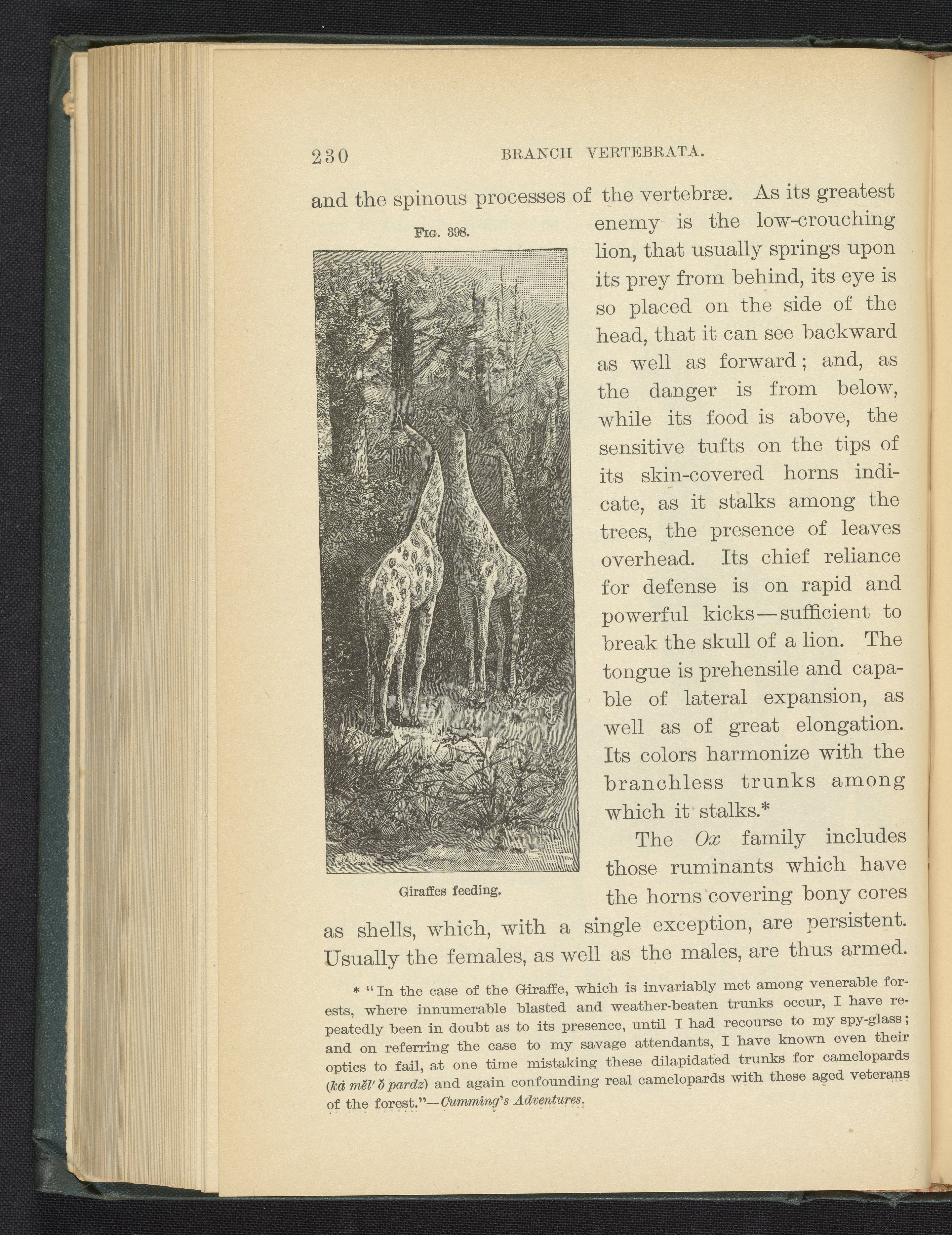 Figure 398 of the 1887 volume Popular Zoology depicting giraffes feeding.