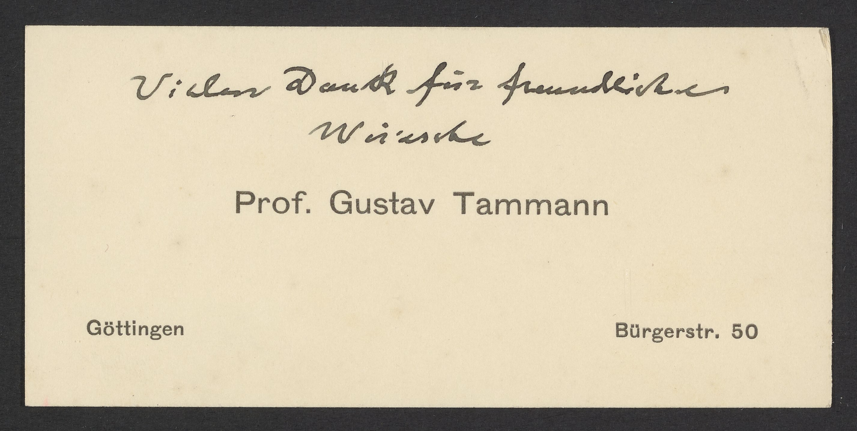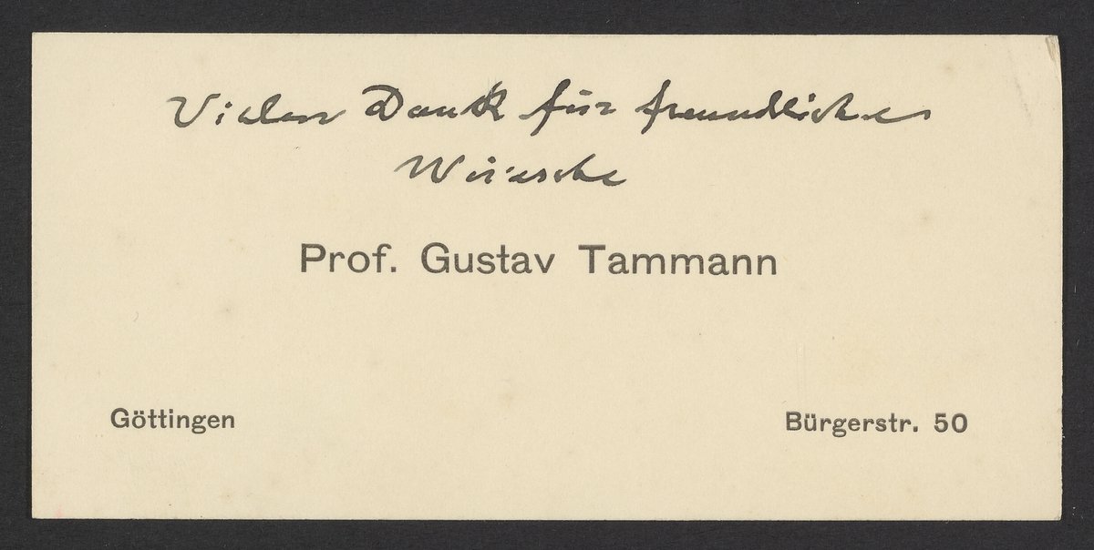 Gustav Tammann's personal calling card