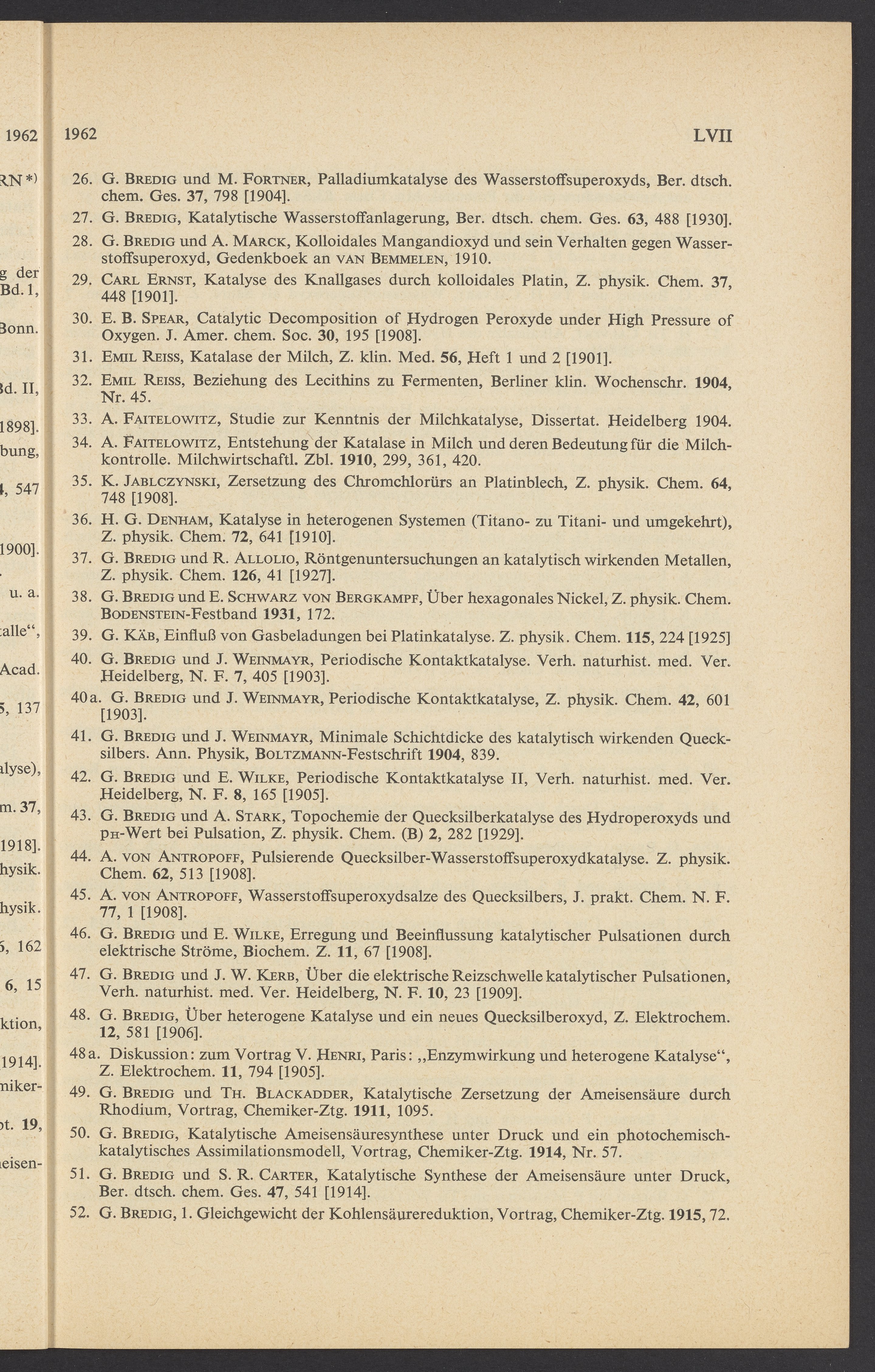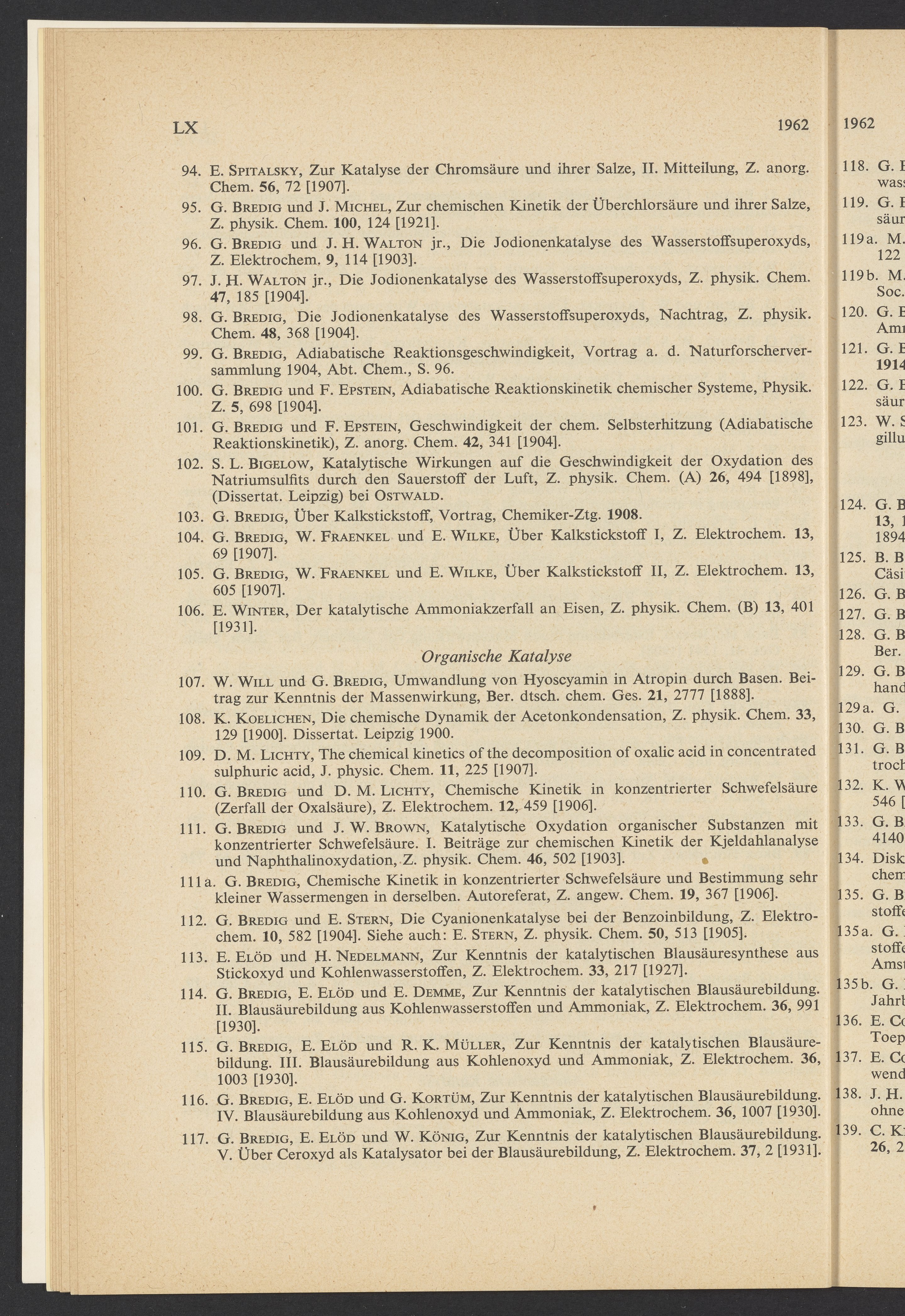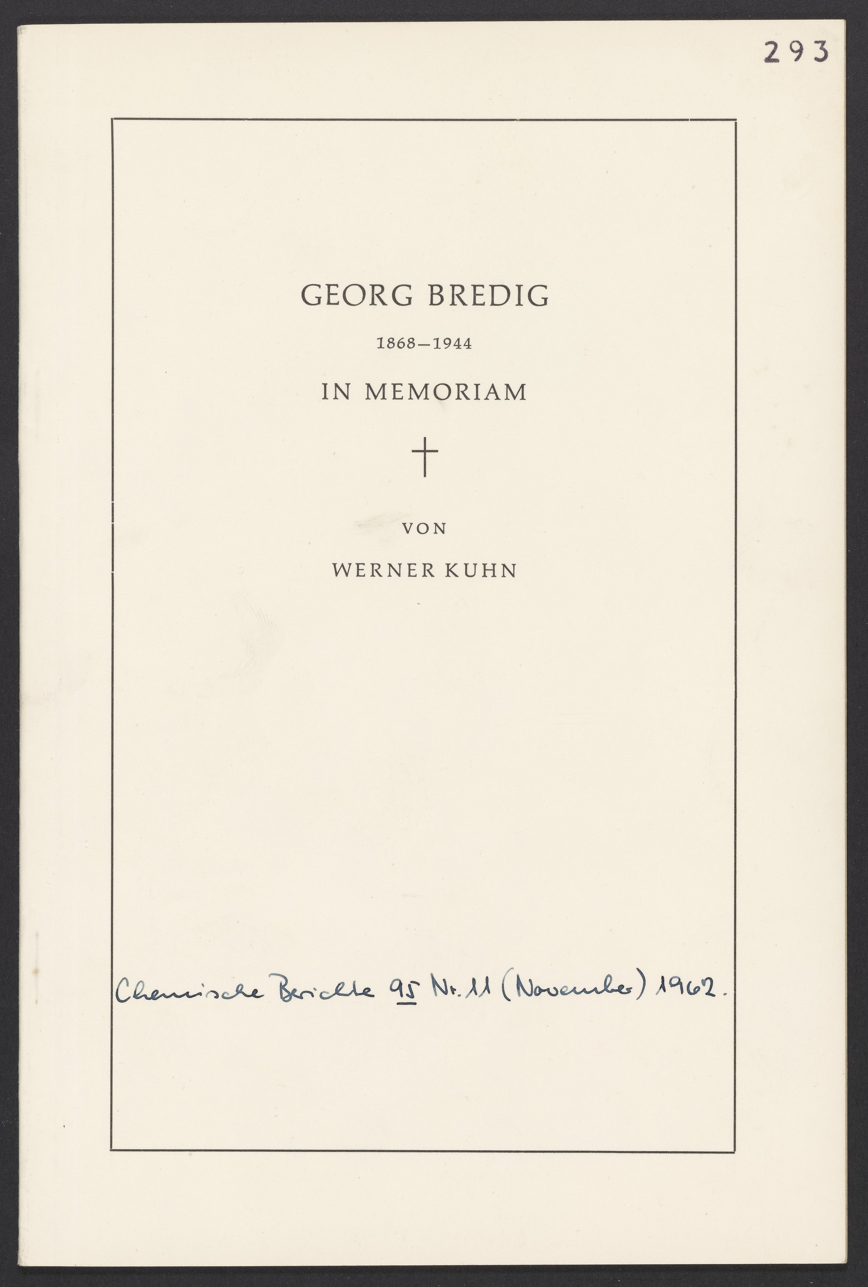 Kuhn, Werner. “Georg Bredig: In Memoriam,” November 1, 1962. Papers of Georg and Max Bredig, Box 4, Folder 10. Science History Institute. Philadelphia. https://digital.sciencehistory.org/works/vlqqkk0.