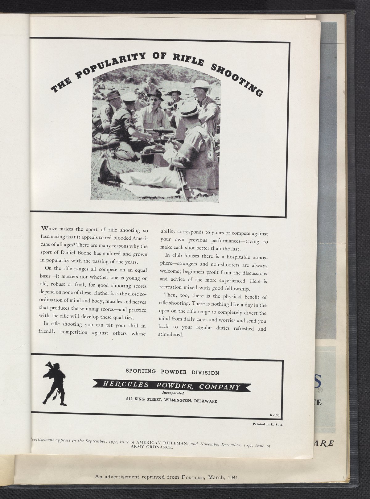 Hercules Incorporated. “The Popularity of Rifle Shooting.” 1941 Hercules Advertisements, 1941. Records of Hercules Incorporated, Volume 1941. Science History Institute. Philadelphia. https://digital.sciencehistory.org/works/vm40xs440.