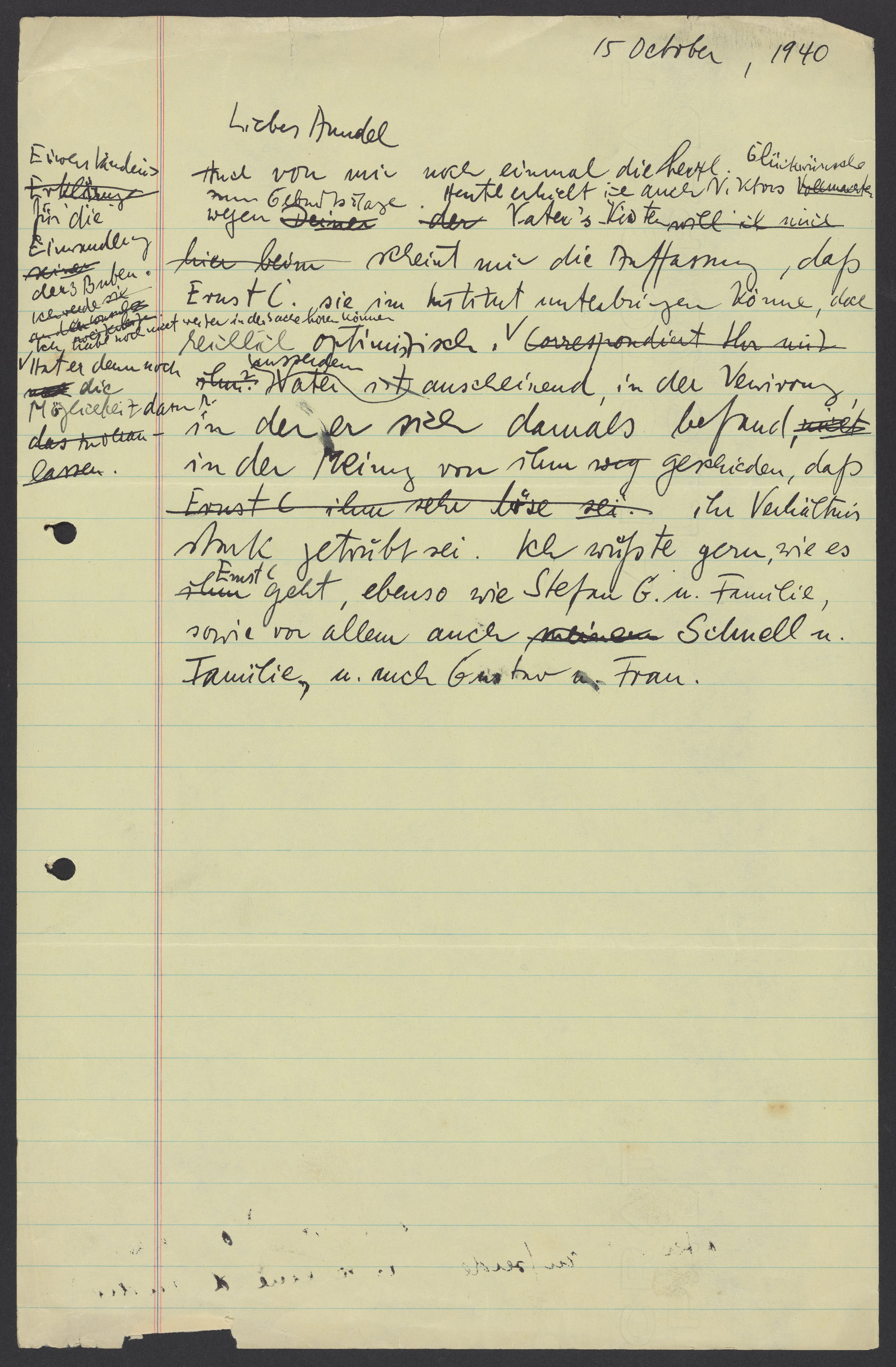 Letter from Max Bredig to Marianne Homburger, October 15, 1940