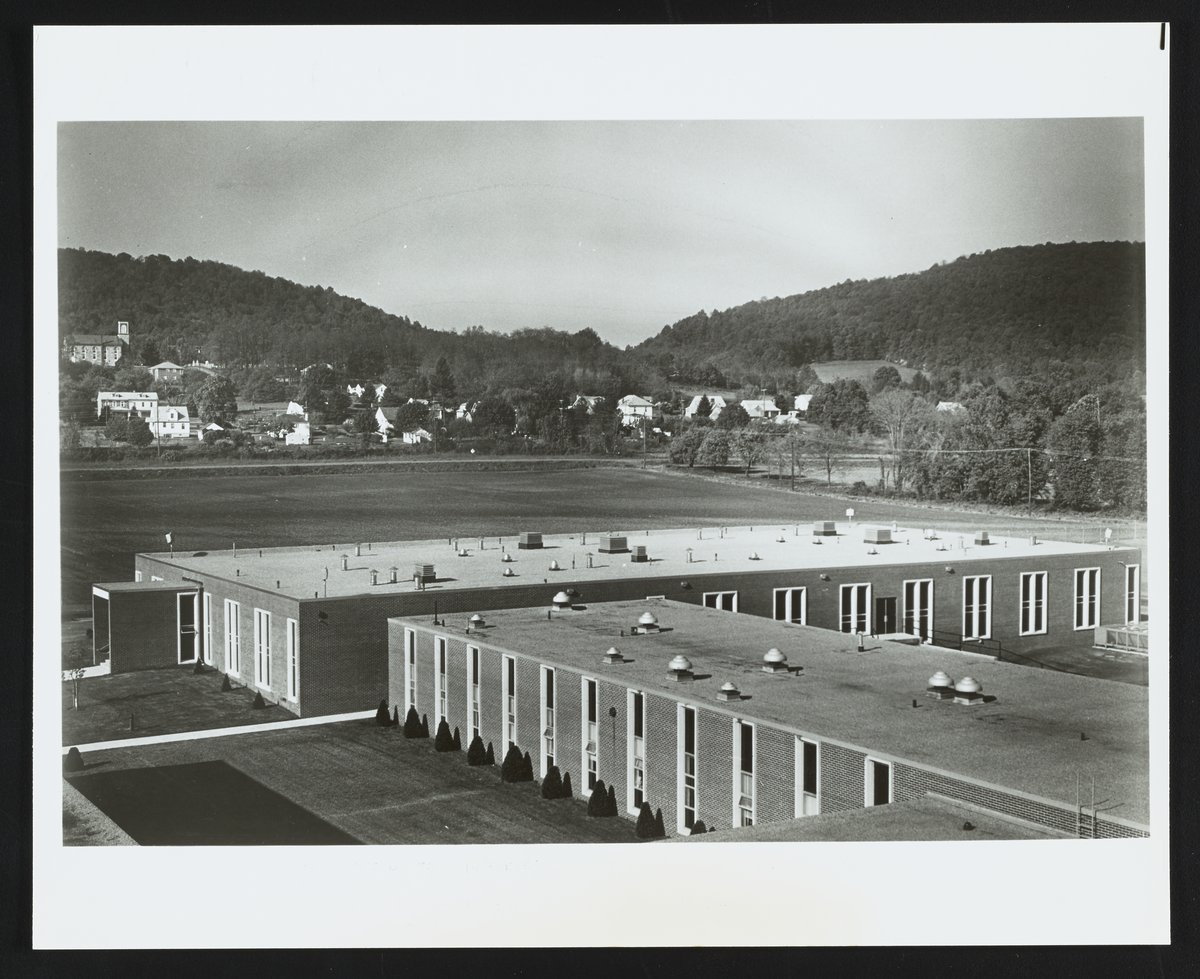 “Exterior of New Crompton & Knowles Research Center,” 1974. Photographs from the Records of the Althouse, Bates, and Crompton Chemical Companies, Box 1. Science History Institute. Philadelphia. https://digital.sciencehistory.org/works/vq27zn431.