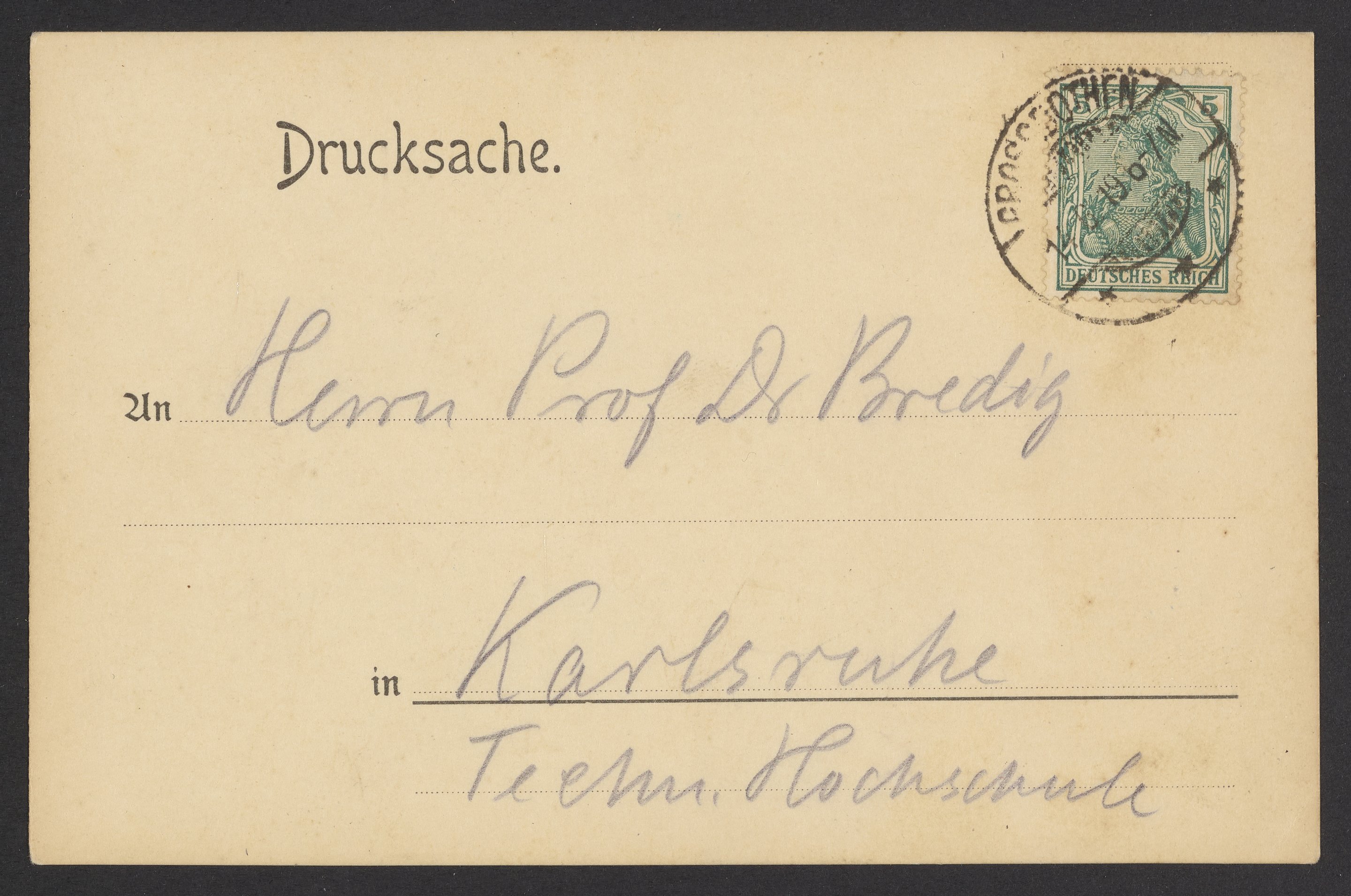 An Herrn Prof Dr Bredig
