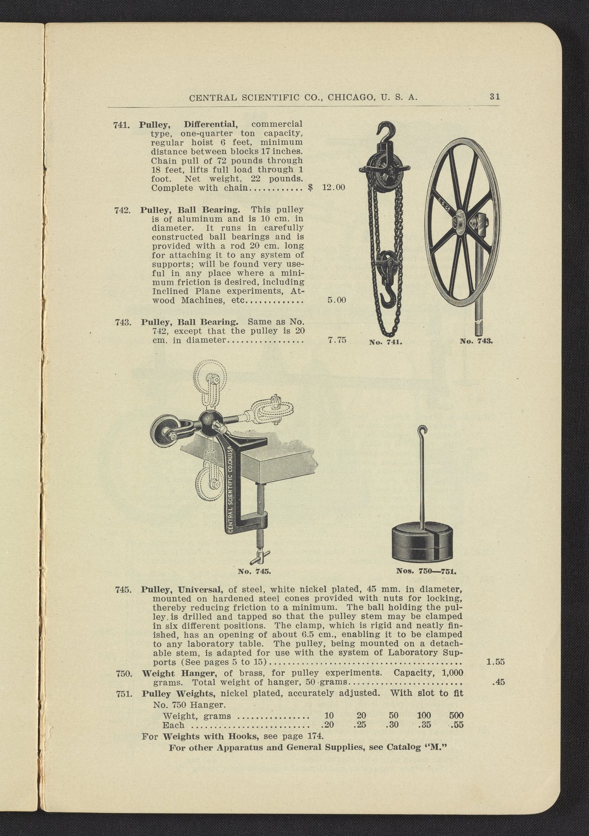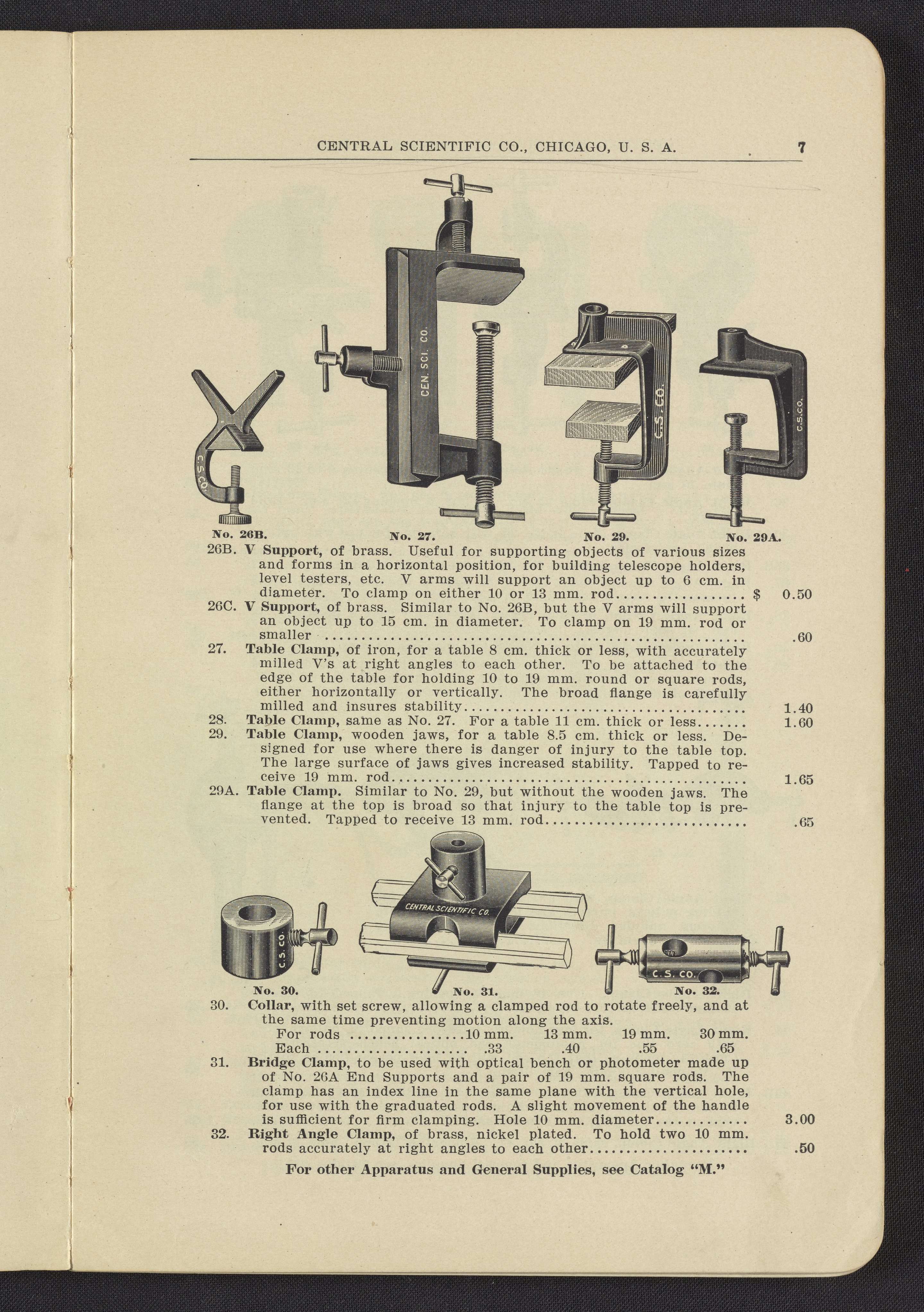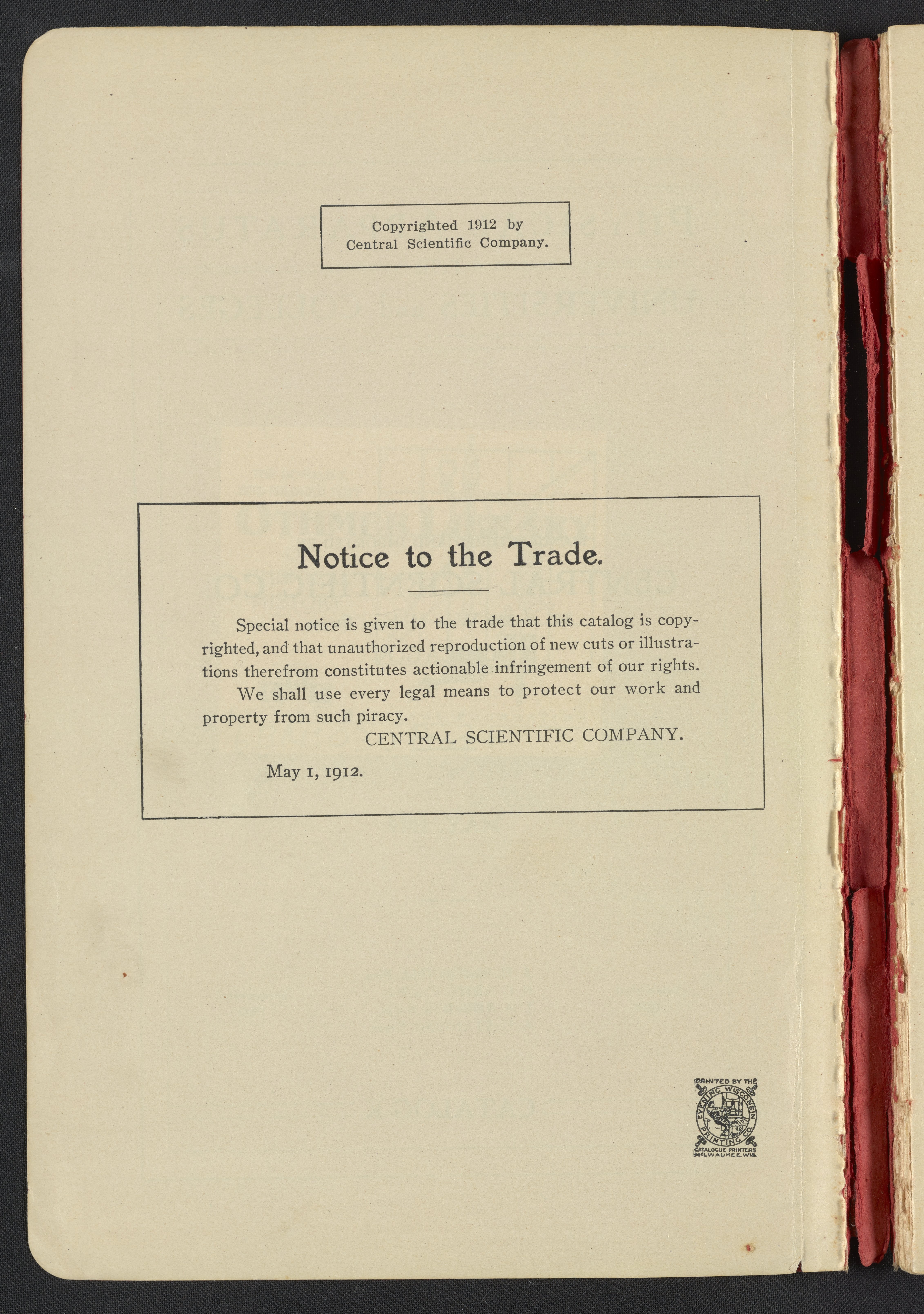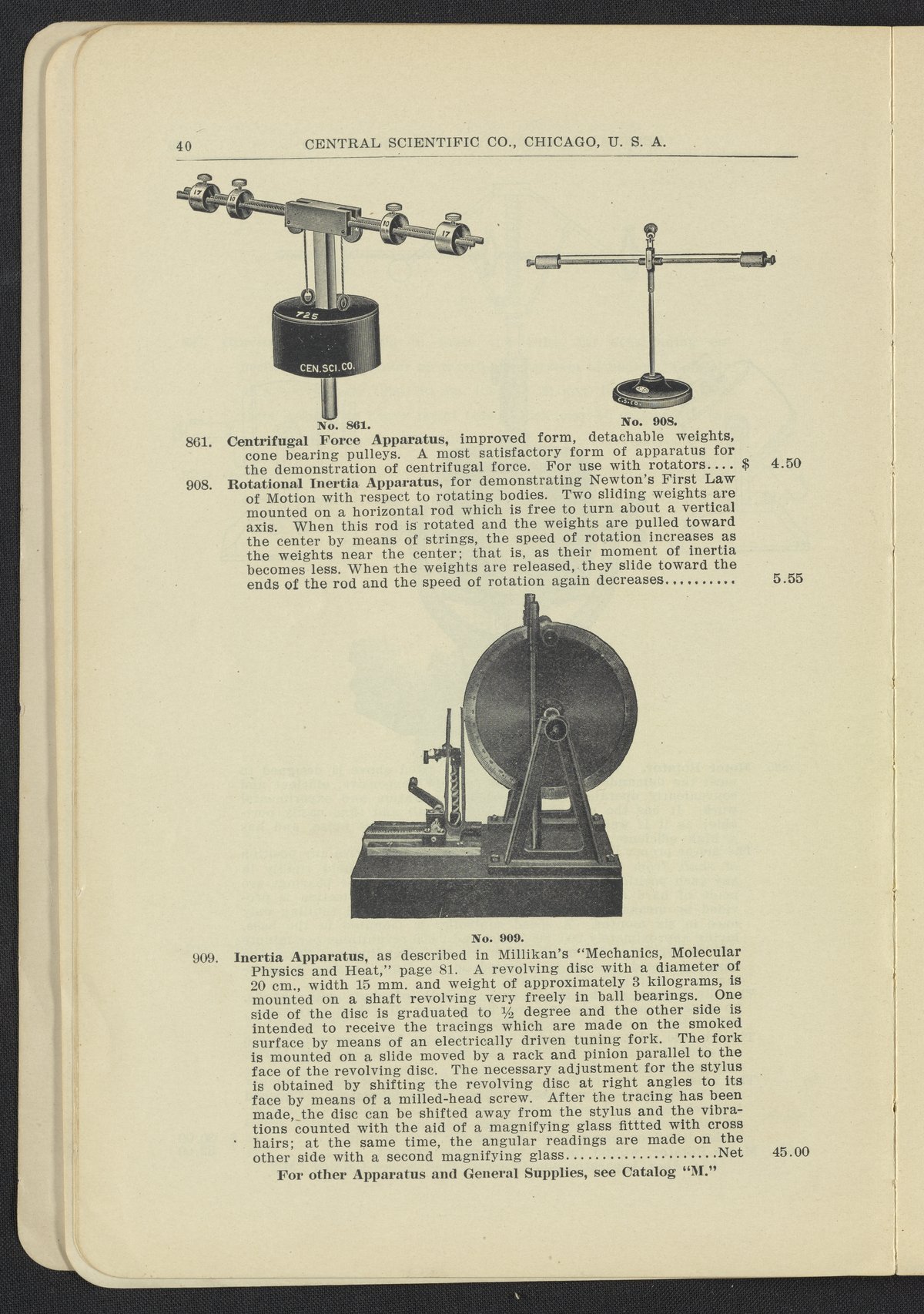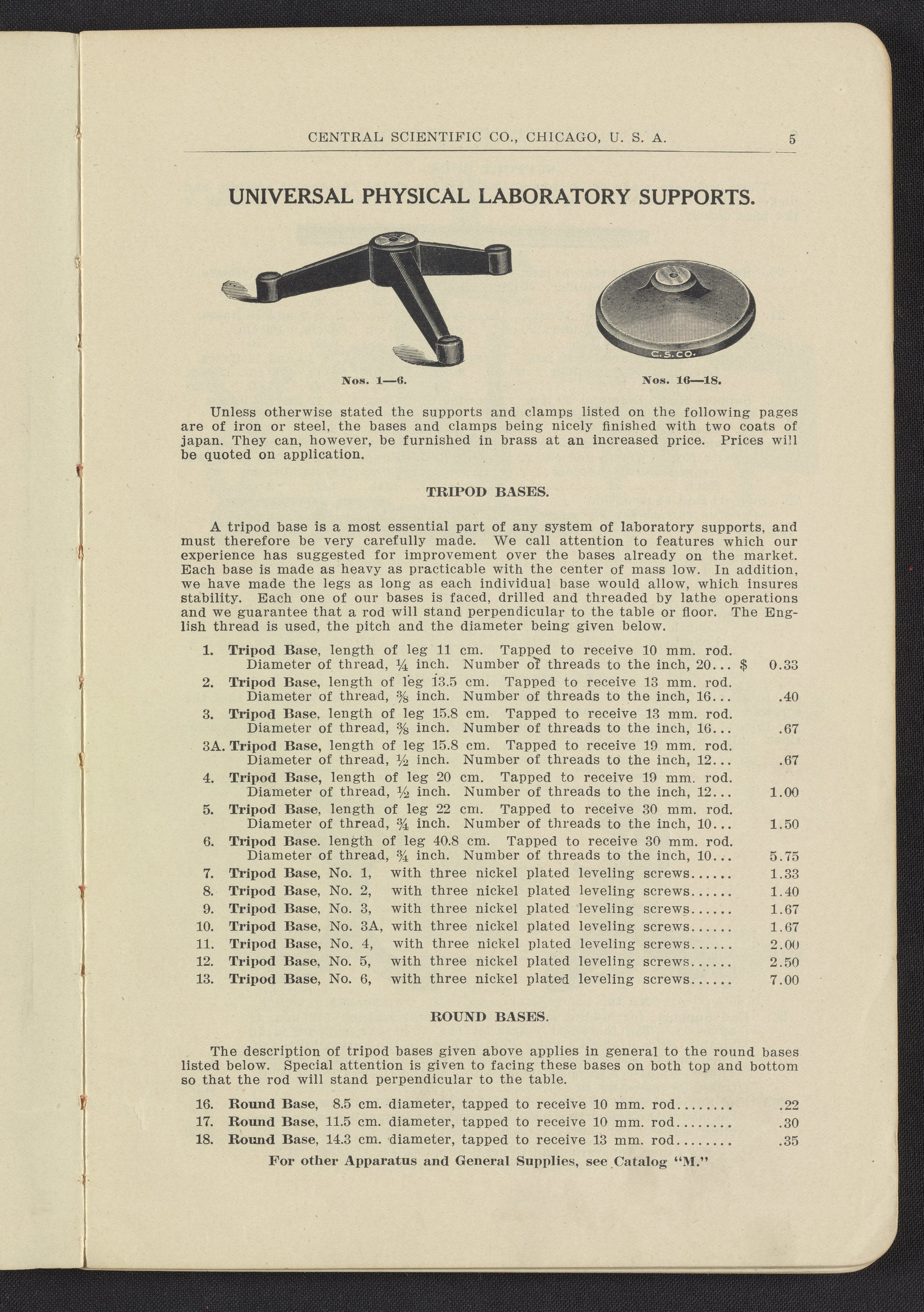 Central Scientific Company. “Physical Apparatus for Universities and Colleges Manufactured and Imported by Central Scientific Co.” Chicago, Illinois: Central Scientific Company, 1912. Q185.7 .C46 1912. Science History Institute. Philadelphia. https://digital.sciencehistory.org/works/vt150k323.