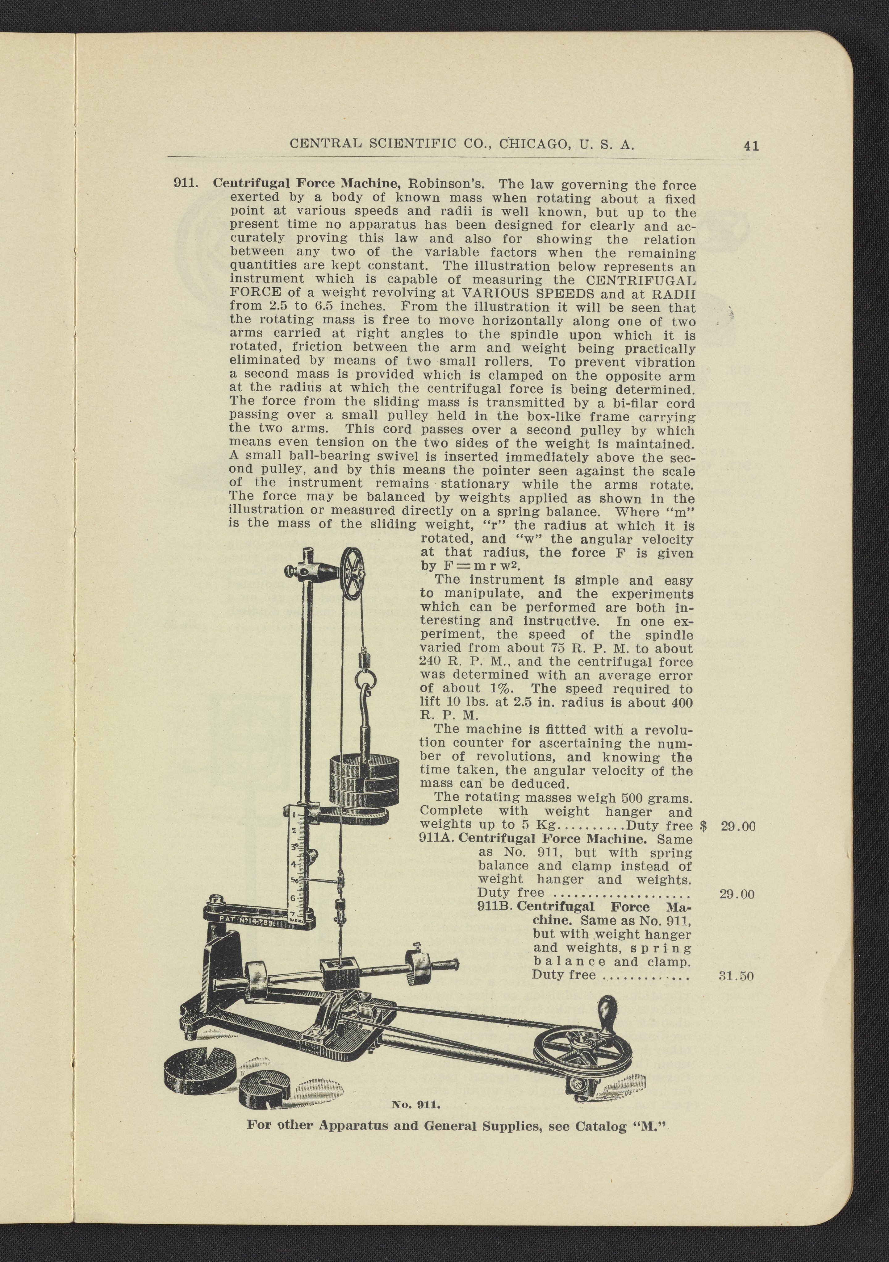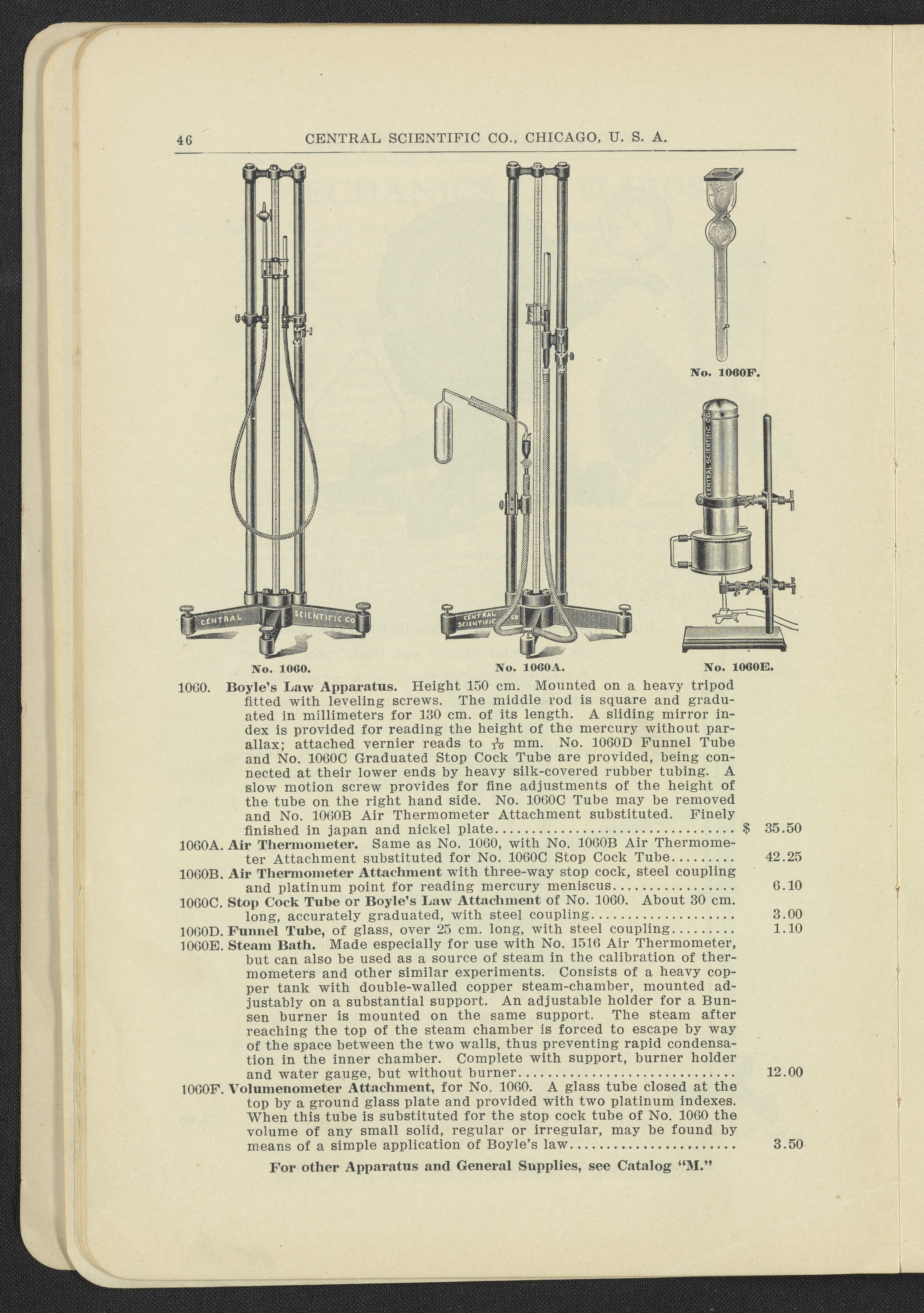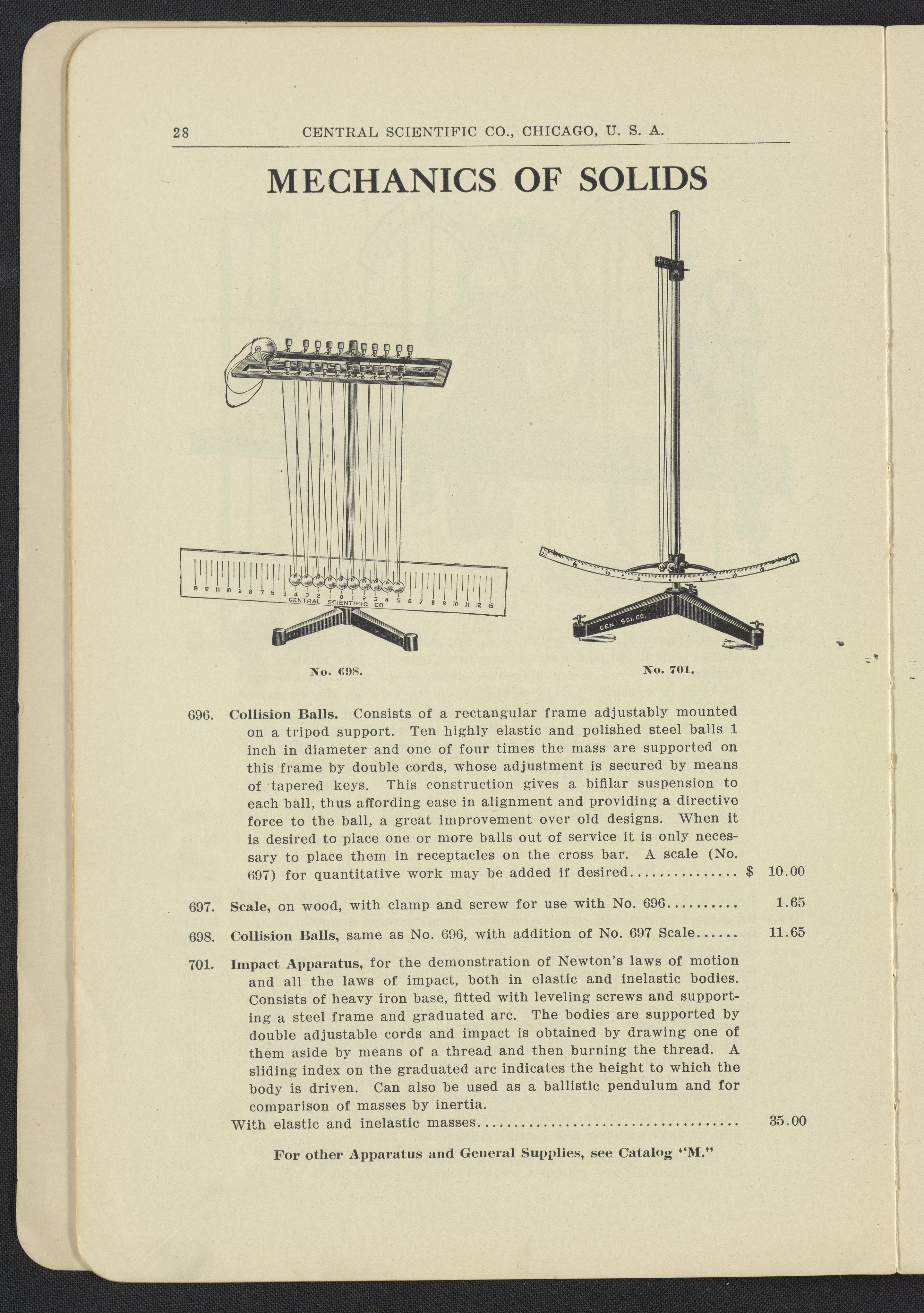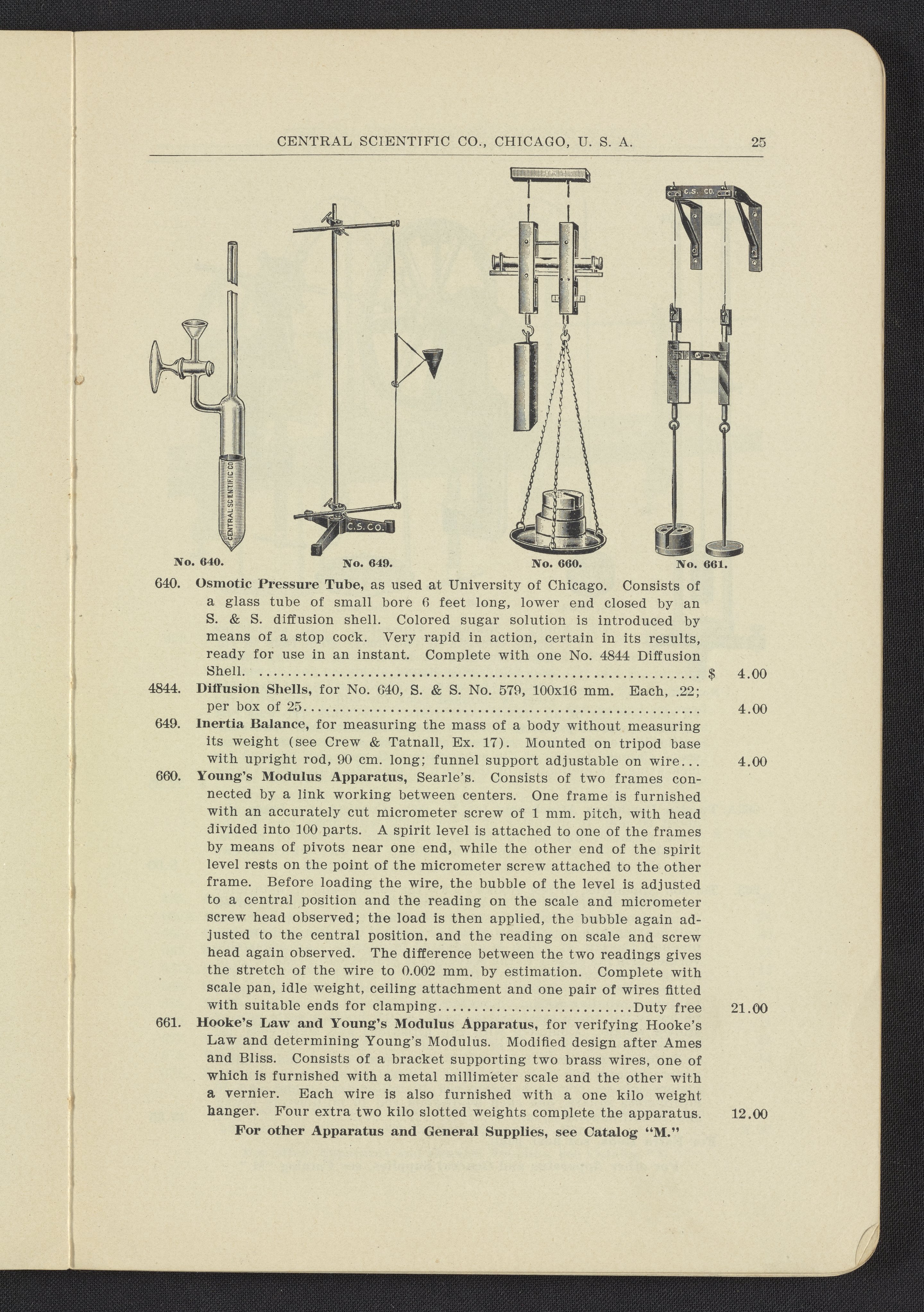 Central Scientific Company. “Physical Apparatus for Universities and Colleges Manufactured and Imported by Central Scientific Co.” Chicago, Illinois: Central Scientific Company, 1912. Q185.7 .C46 1912. Science History Institute. Philadelphia. https://digital.sciencehistory.org/works/vt150k323.