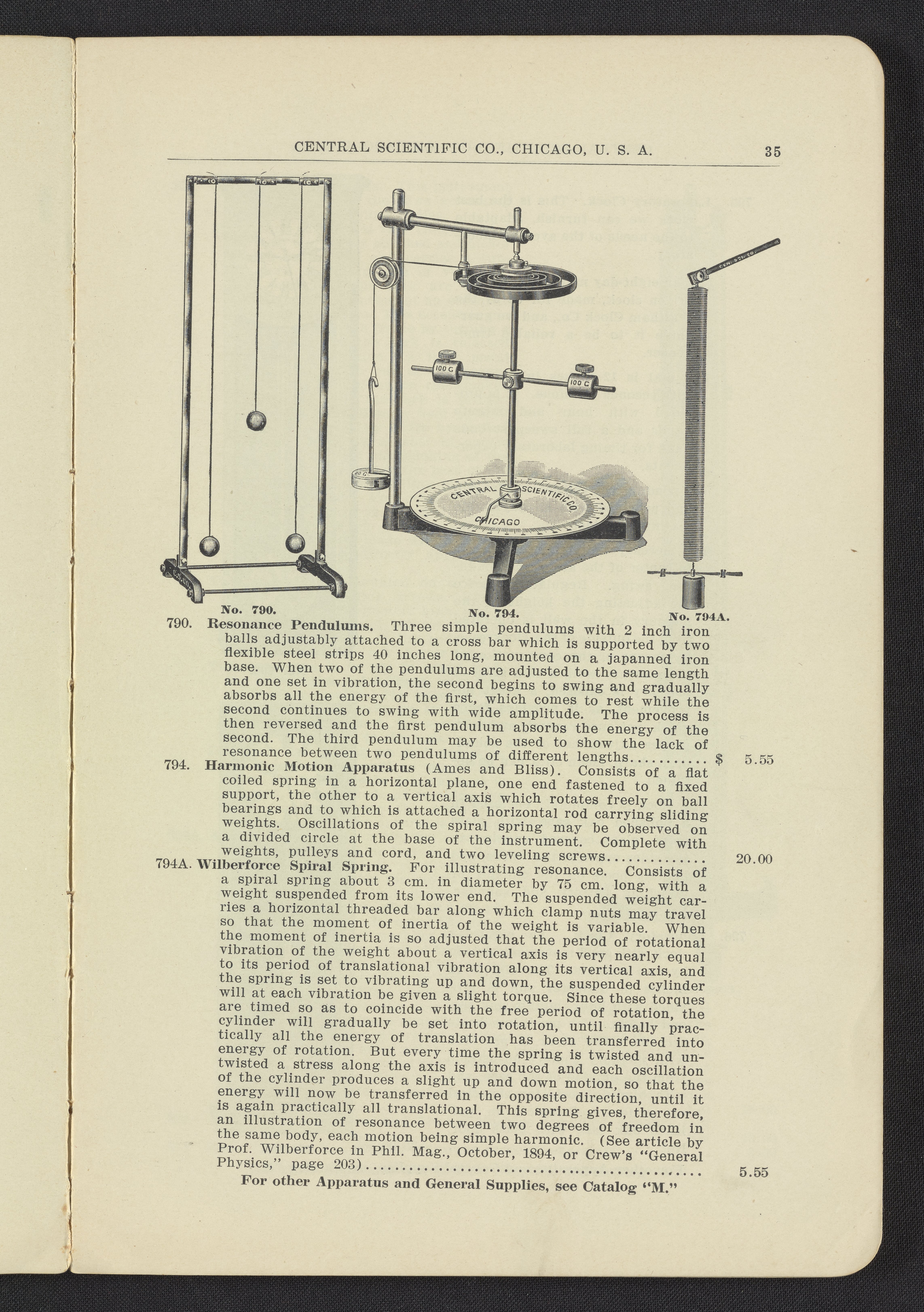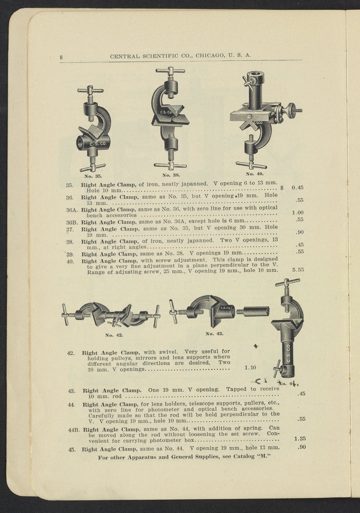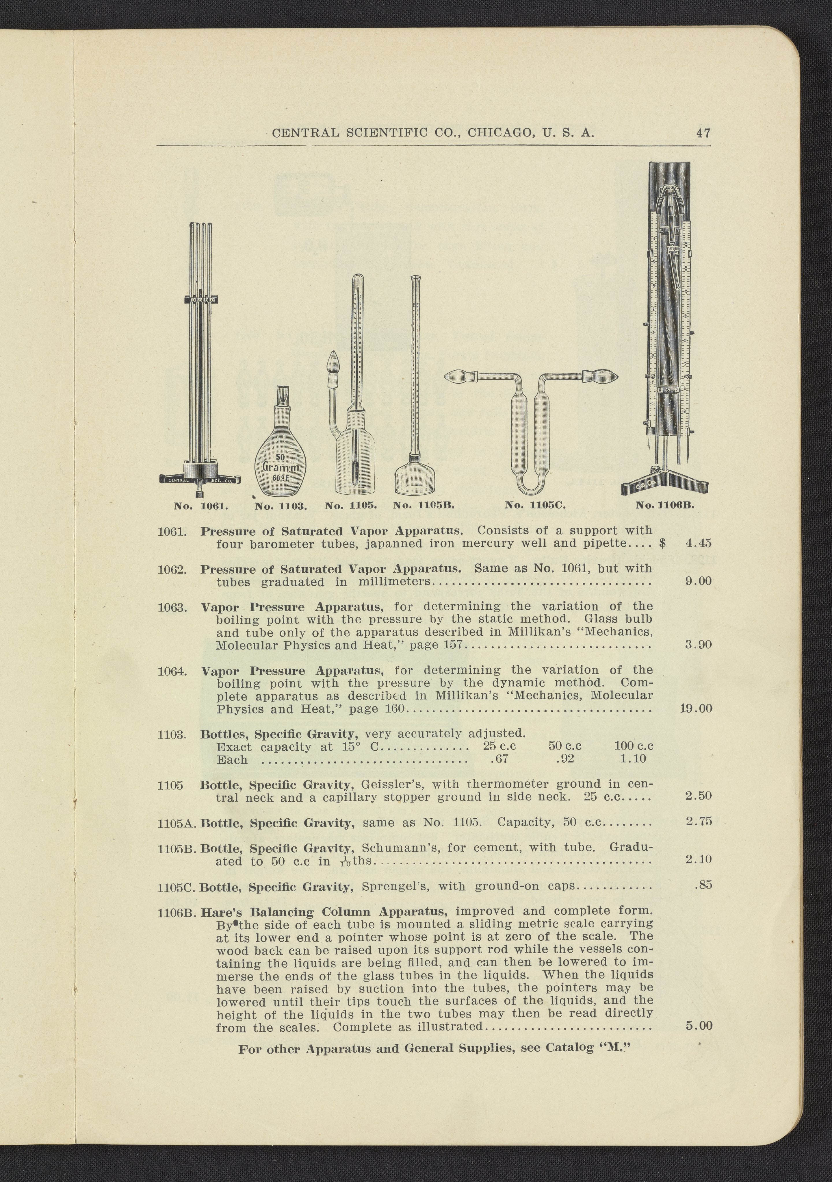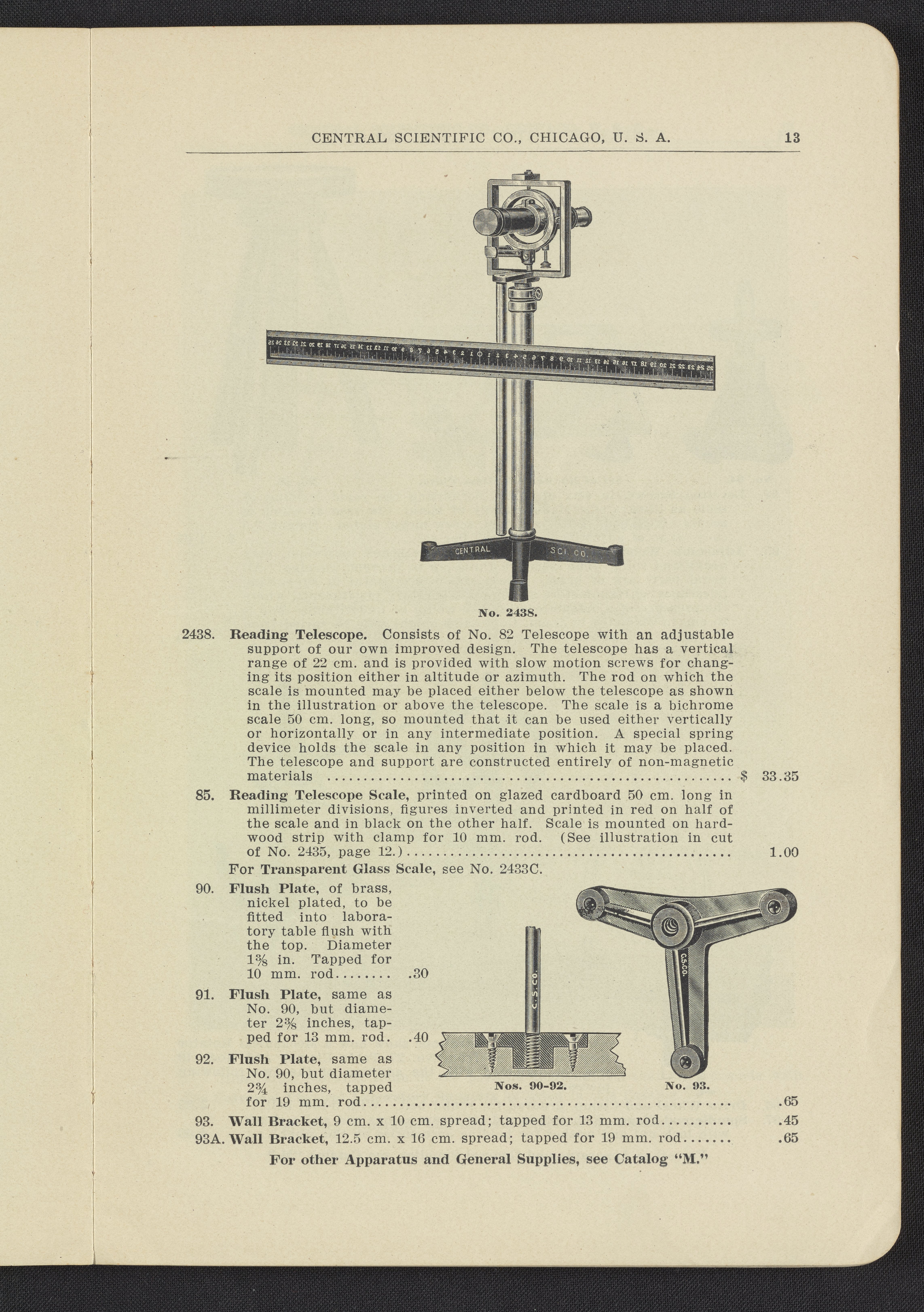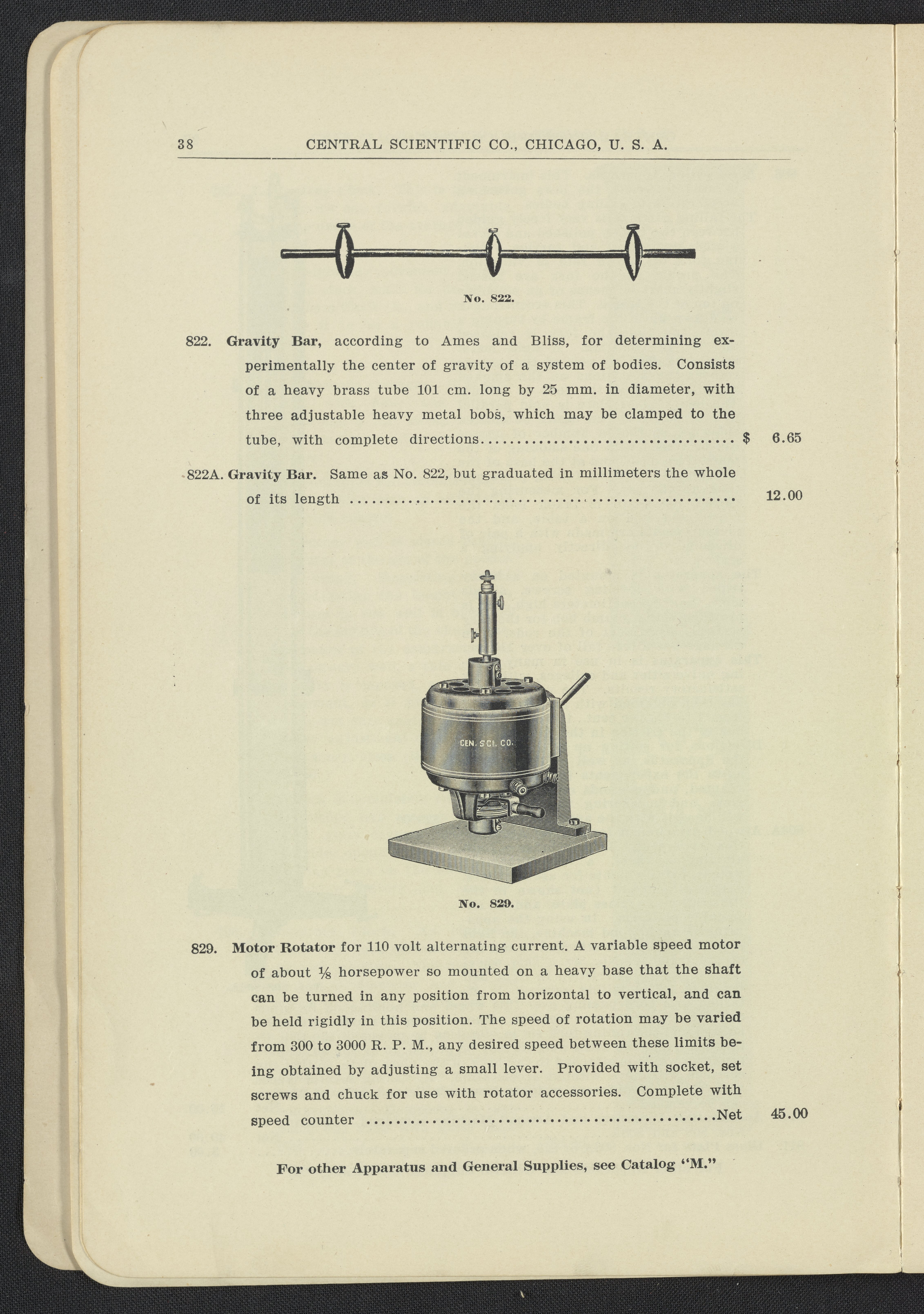 Central Scientific Company. “Physical Apparatus for Universities and Colleges Manufactured and Imported by Central Scientific Co.” Chicago, Illinois: Central Scientific Company, 1912. Q185.7 .C46 1912. Science History Institute. Philadelphia. https://digital.sciencehistory.org/works/vt150k323.
